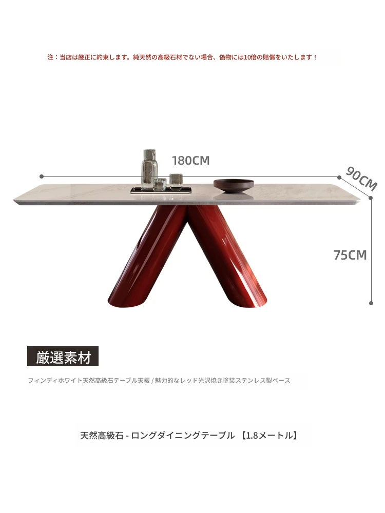 天然ラグジュアリーストーンダイニングテーブル/1.8メートル/魅力的な赤 【偽物は10倍の罰】