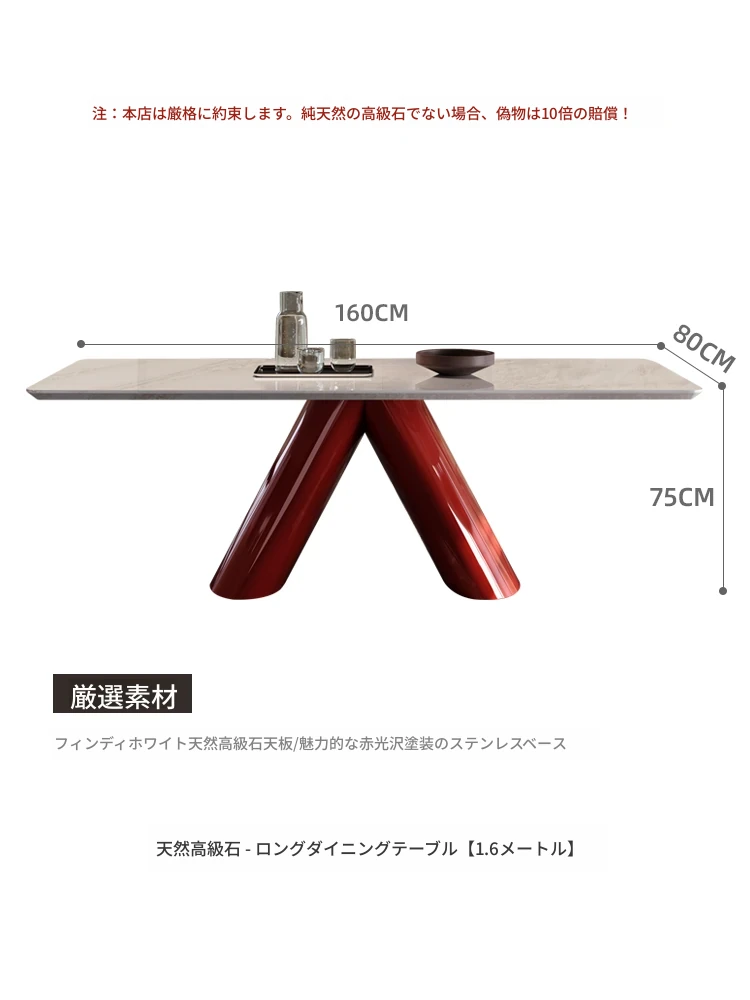 天然ラグジュアリーストーンダイニングテーブル/1.6メートル/魅力的な赤 【偽物は10倍の罰】