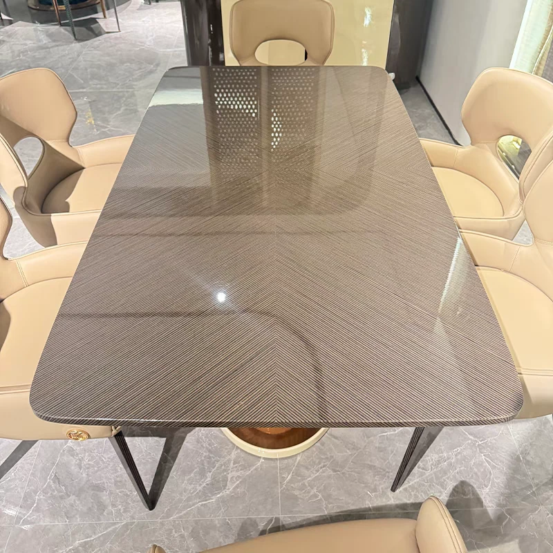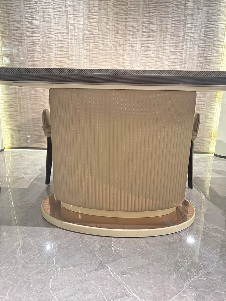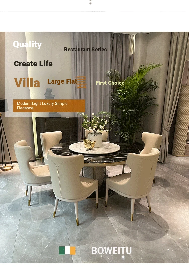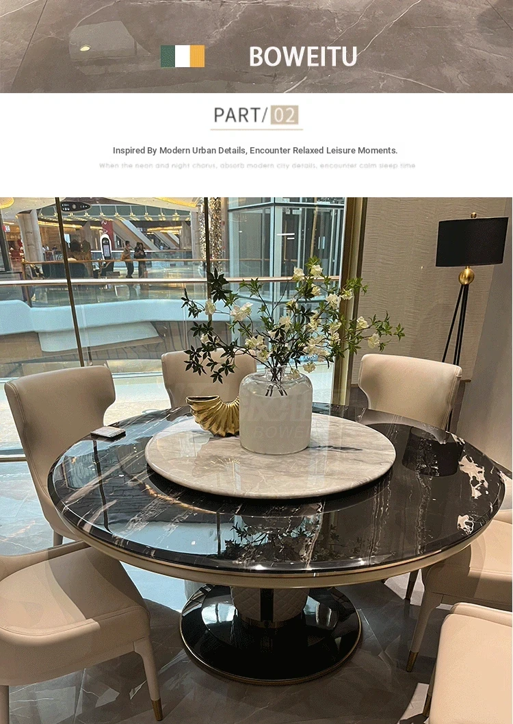 Elegant Italian Marble Dining Table Set - High-End Villa Showcase with Black and White Round Dining Table and Six Chairs - Perfect for Luxury Living
