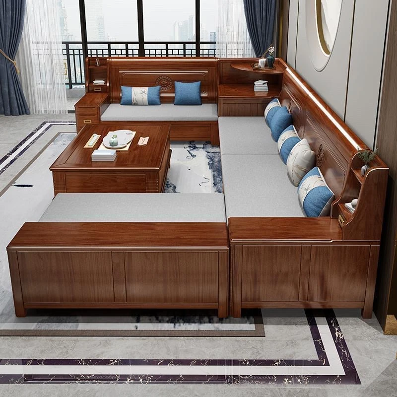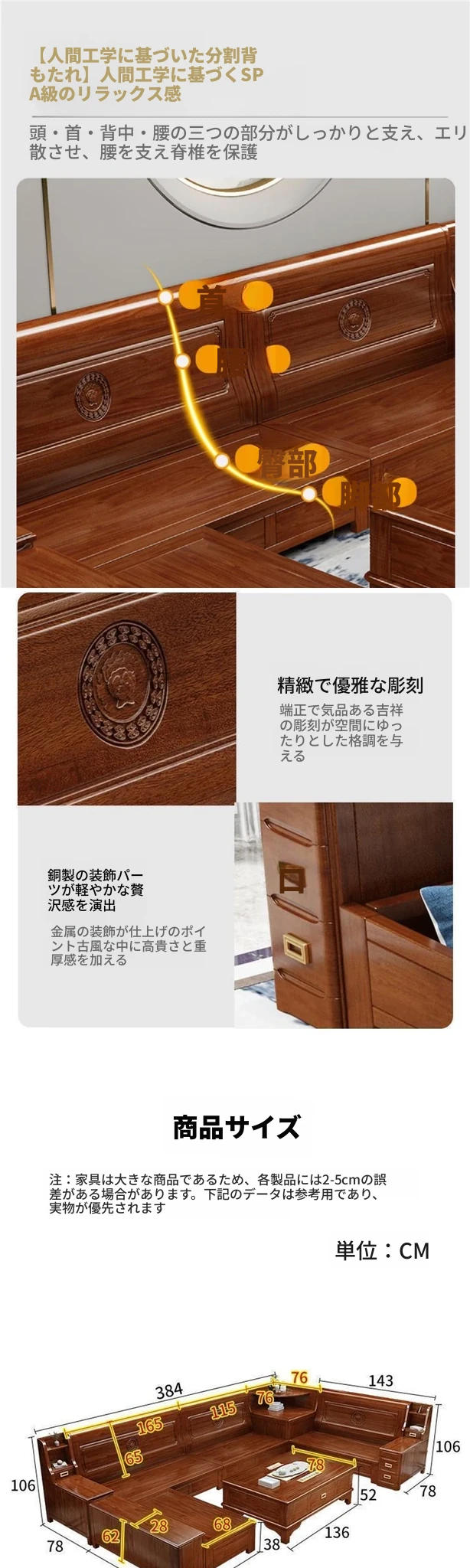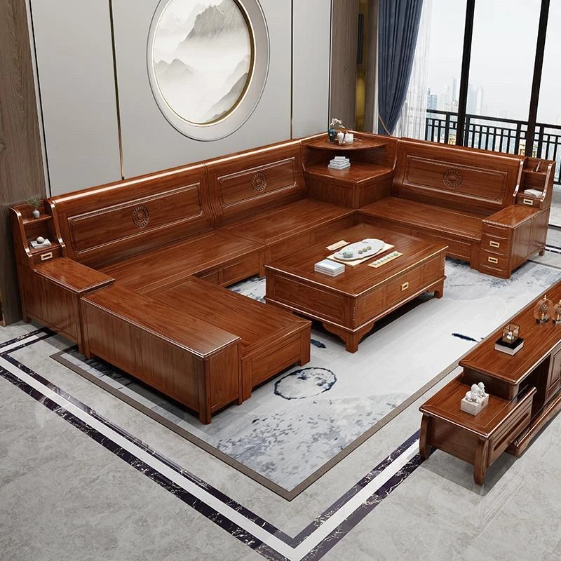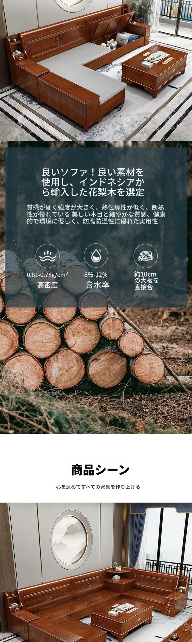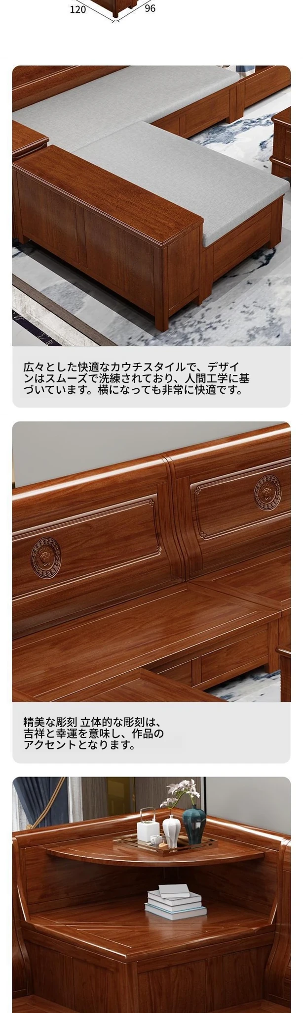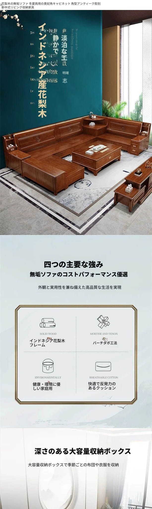 冬夏兼用の花梨木製ソファ|小型リビングに最適なコーナー・フェイスタイプ|収納付きの新中式全実木家具で、快適な空間を実現!