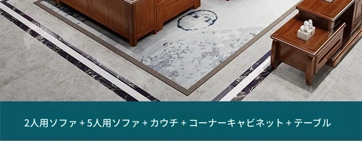 六人掛け+コーナーキャビネット+二人掛け+貴妃ソファ+コーヒーテーブル