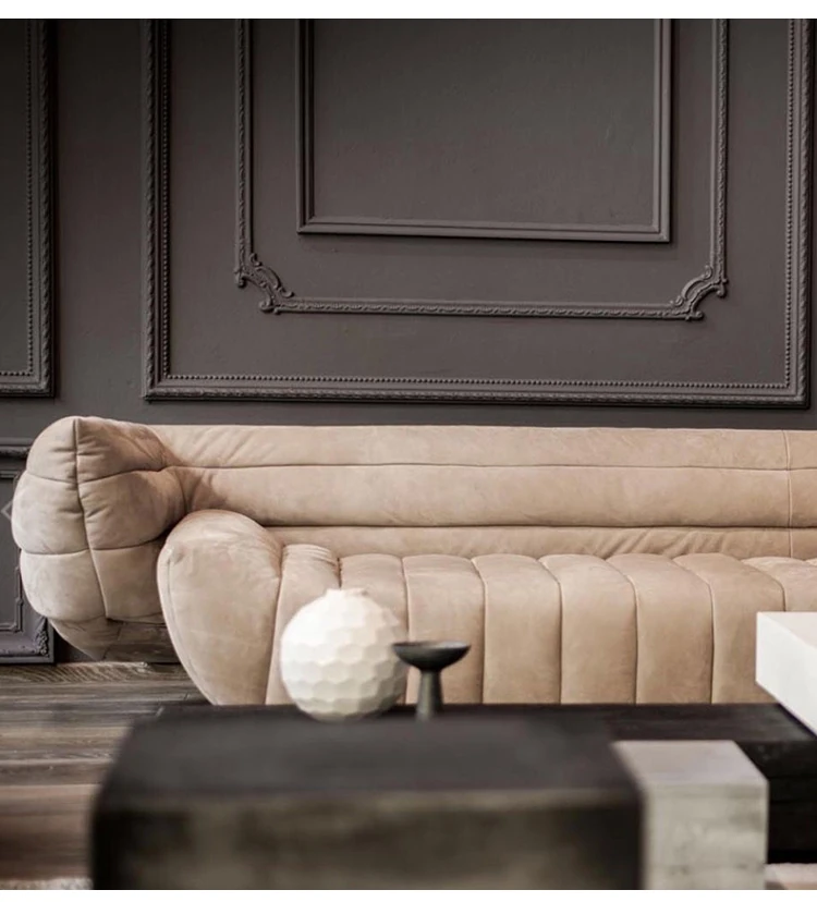 Fuwos イタリアンラグジュアリー 大型ヴィラクラブハウス 輸入トップレザー スエード仕上げ リビング用 タクタイルソファ - 贅沢な触り心地と洗練されたデザインで、あなたの空間を特別なものに!
