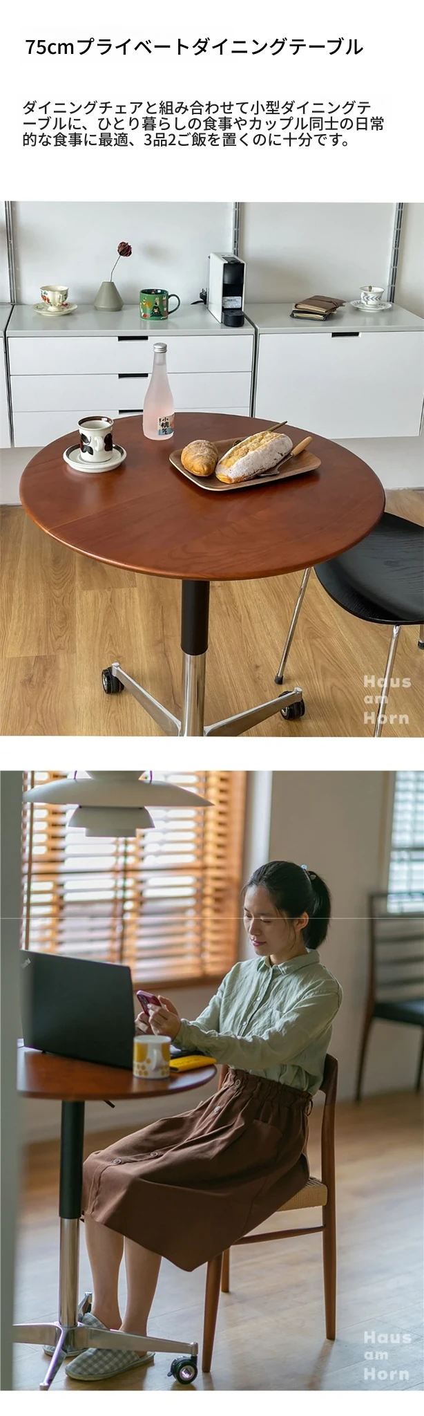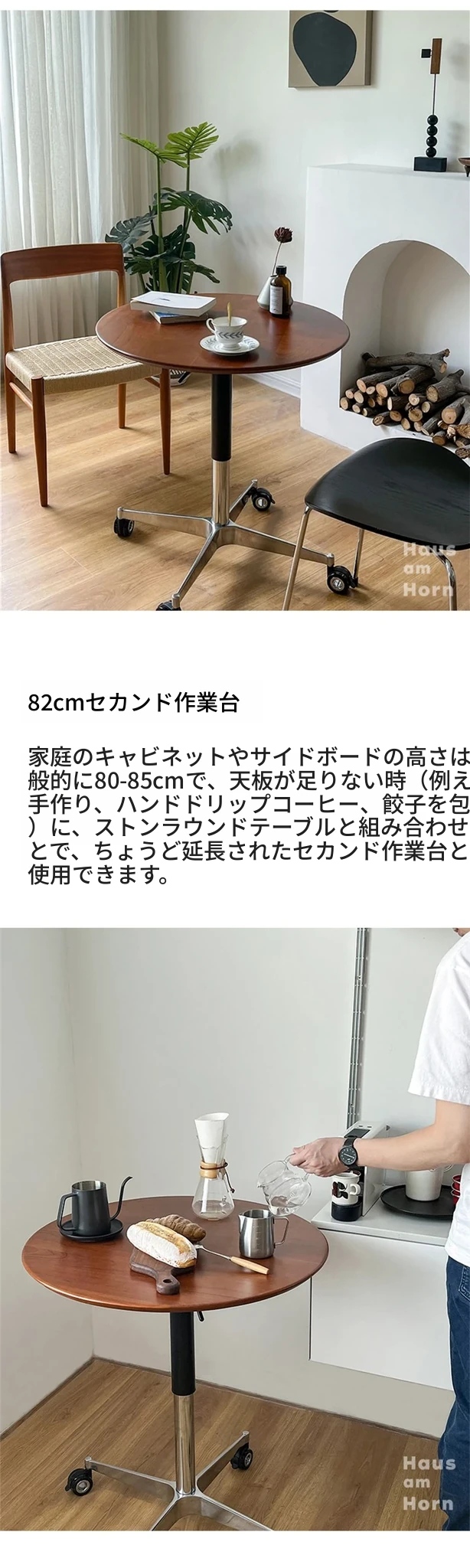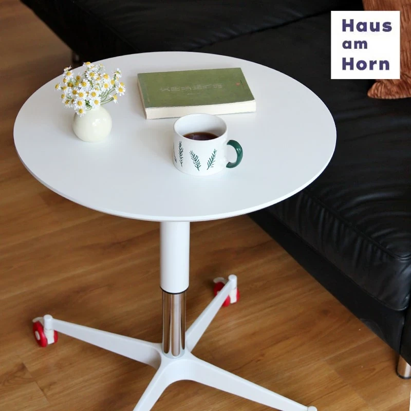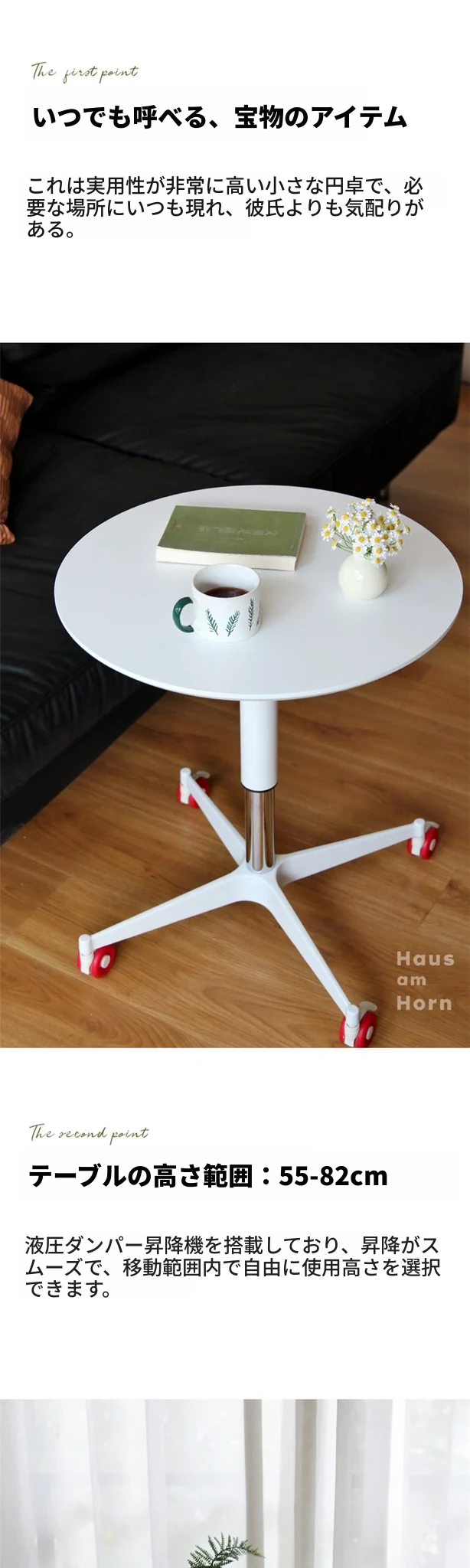 ホルンハウス 奥白の小さな円形テーブル - クリーミーな風合いの移動式昇降ダイニングテーブル、家庭用リラックスサイドテーブルに最適!