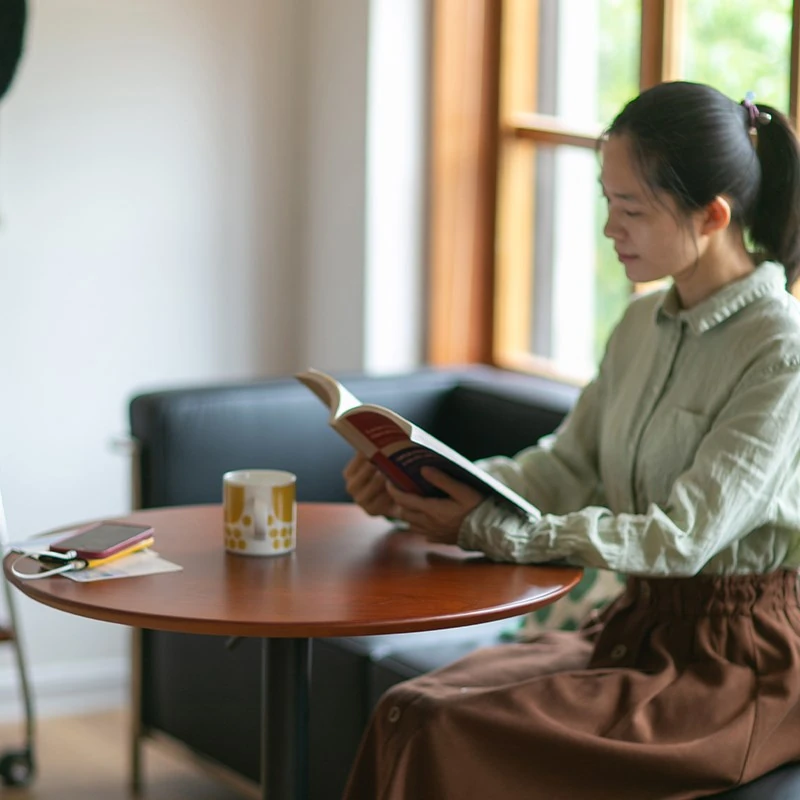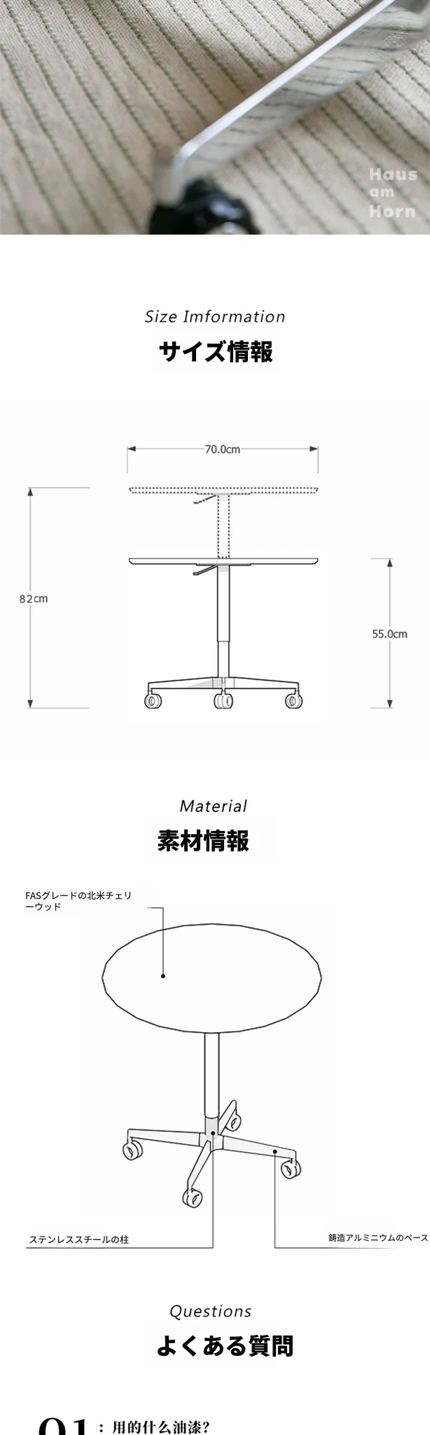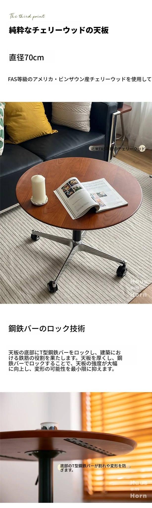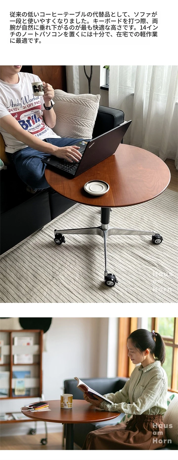 ホルンハウス 奥白の小さな円形テーブル - クリーミーな風合いの移動式昇降ダイニングテーブル、家庭用リラックスサイドテーブルに最適!