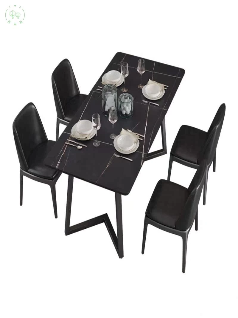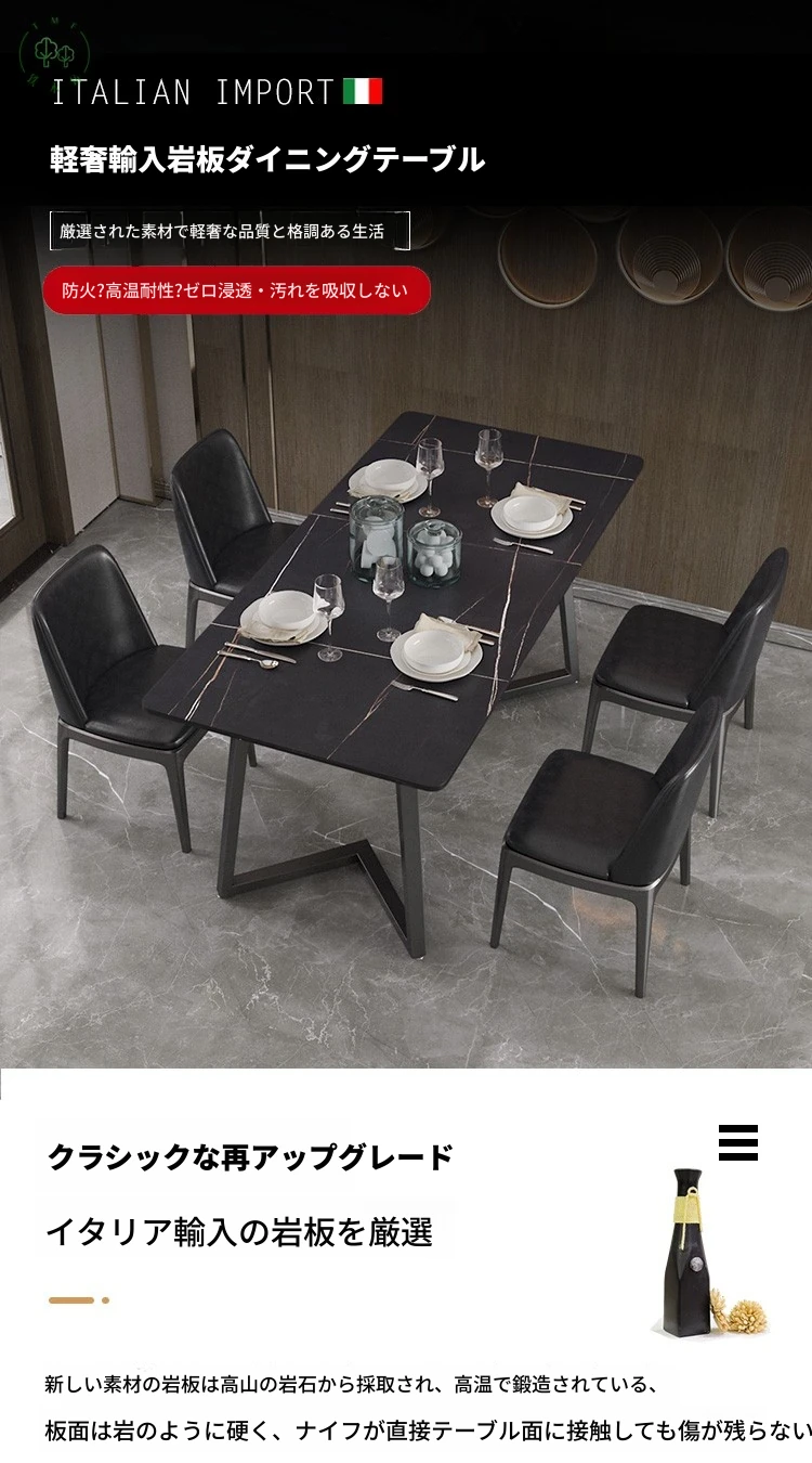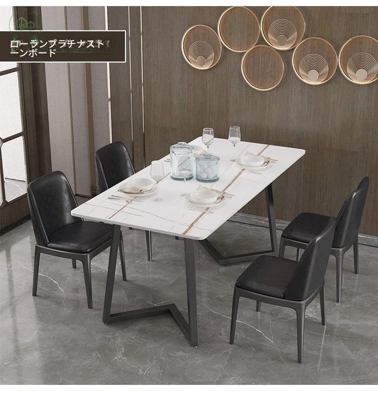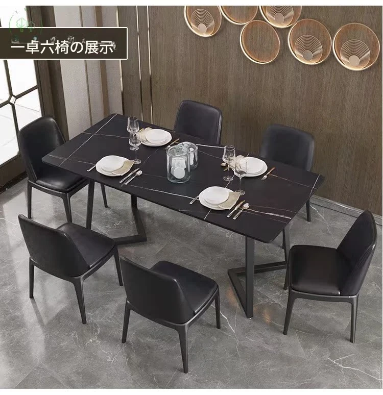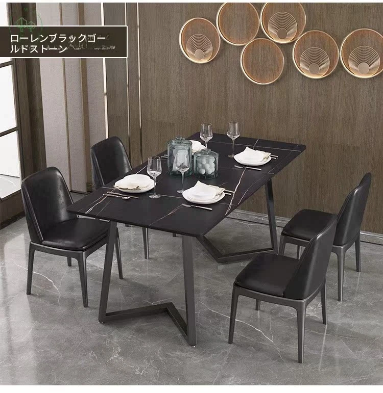 イタリア輸入のラグジュアリーでシンプルな岩板ダイニングテーブル&チェアセット - 背もたれ付きの快適な食事椅子、コンパクトな長方形テーブルで小さなスペースにも最適!