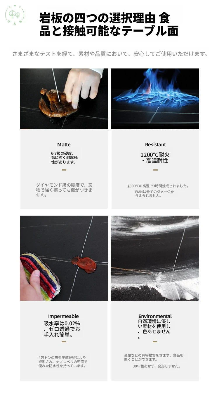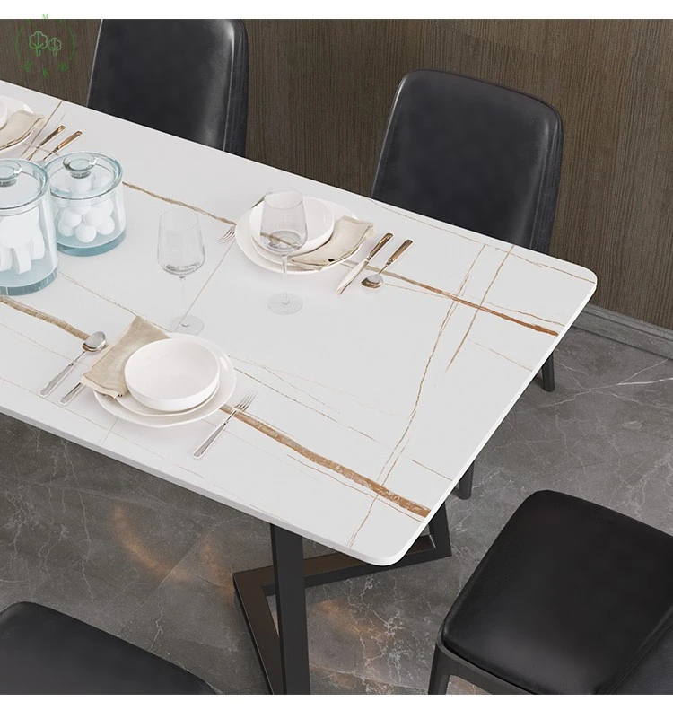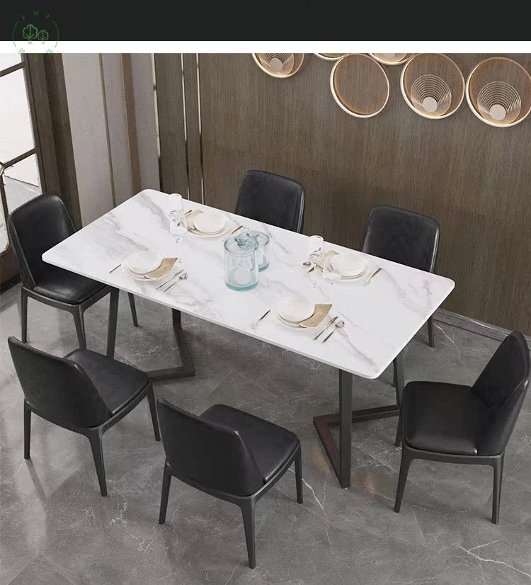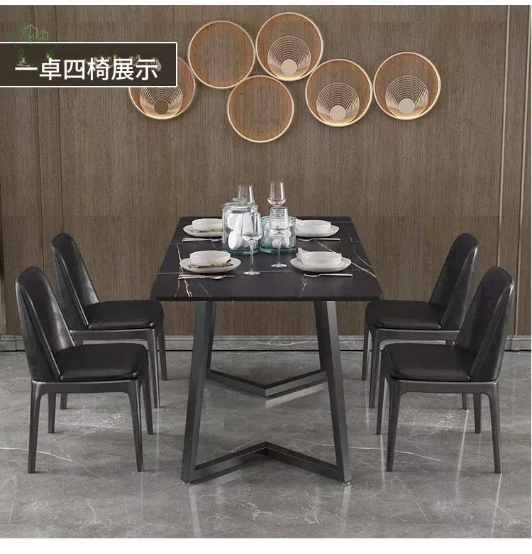 イタリア輸入のラグジュアリーでシンプルな岩板ダイニングテーブル&チェアセット - 背もたれ付きの快適な食事椅子、コンパクトな長方形テーブルで小さなスペースにも最適!
