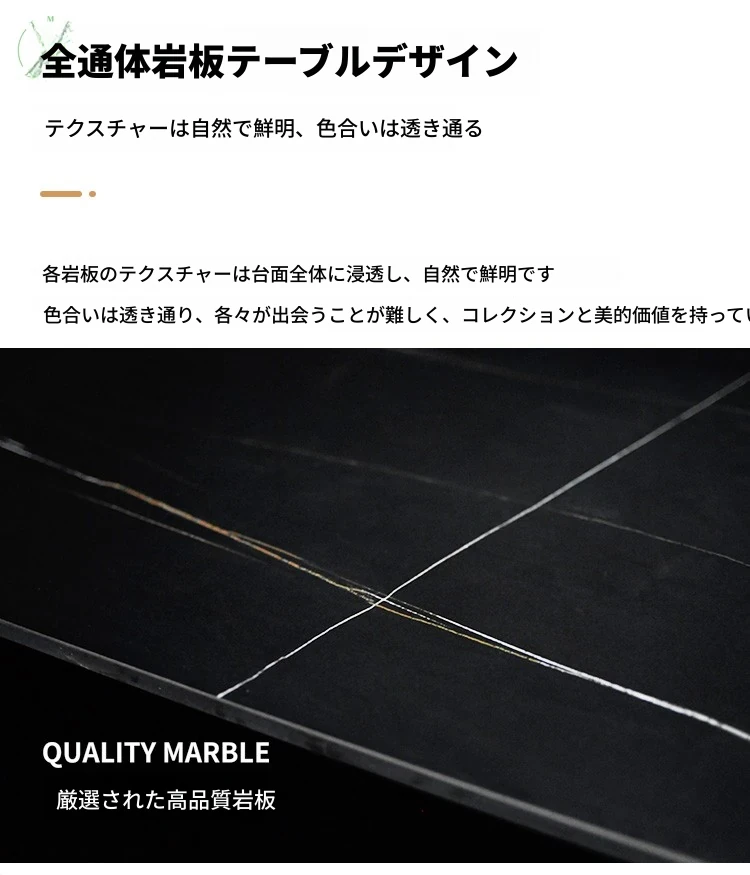ローランブラックゴールドダイニングテーブル:180*80*75cm