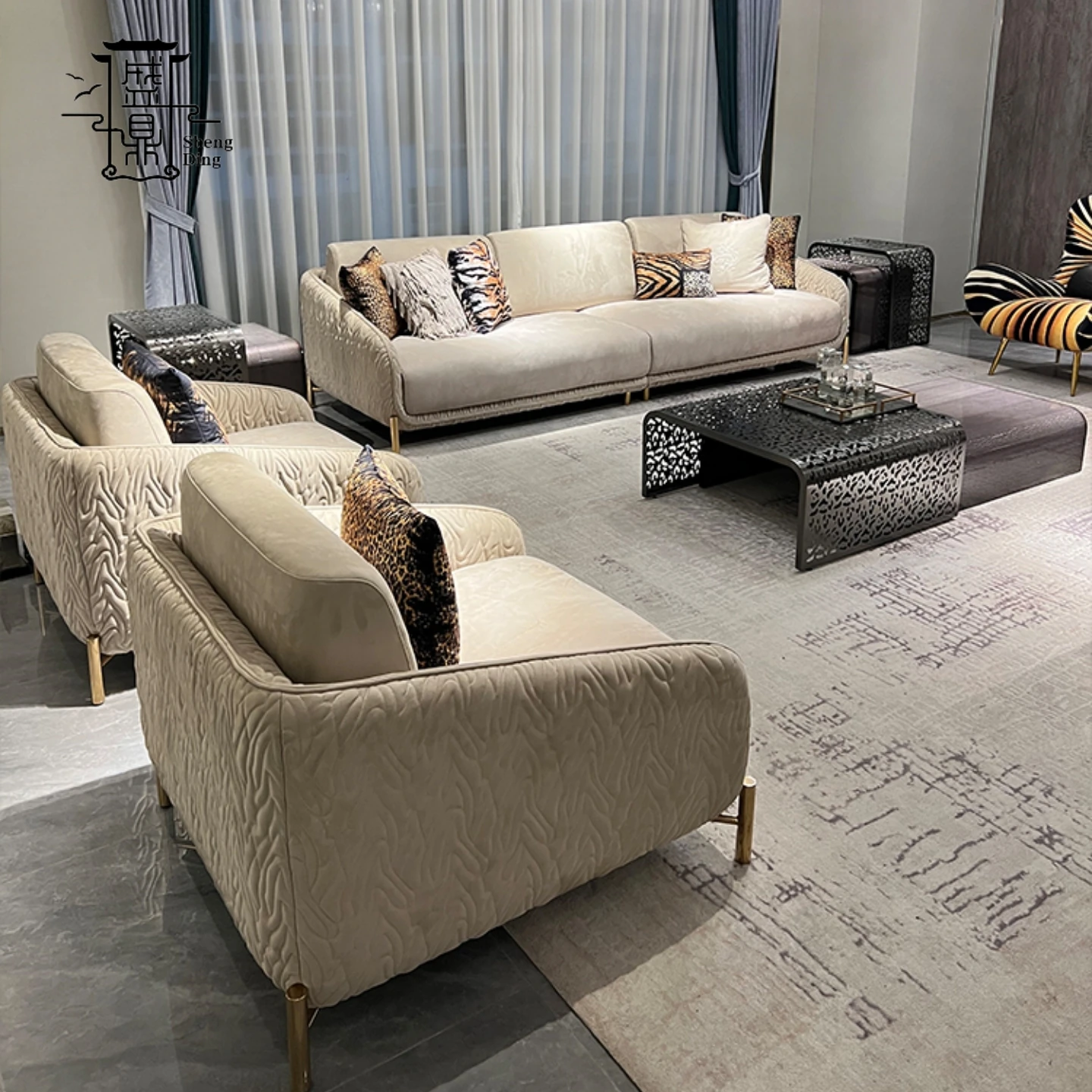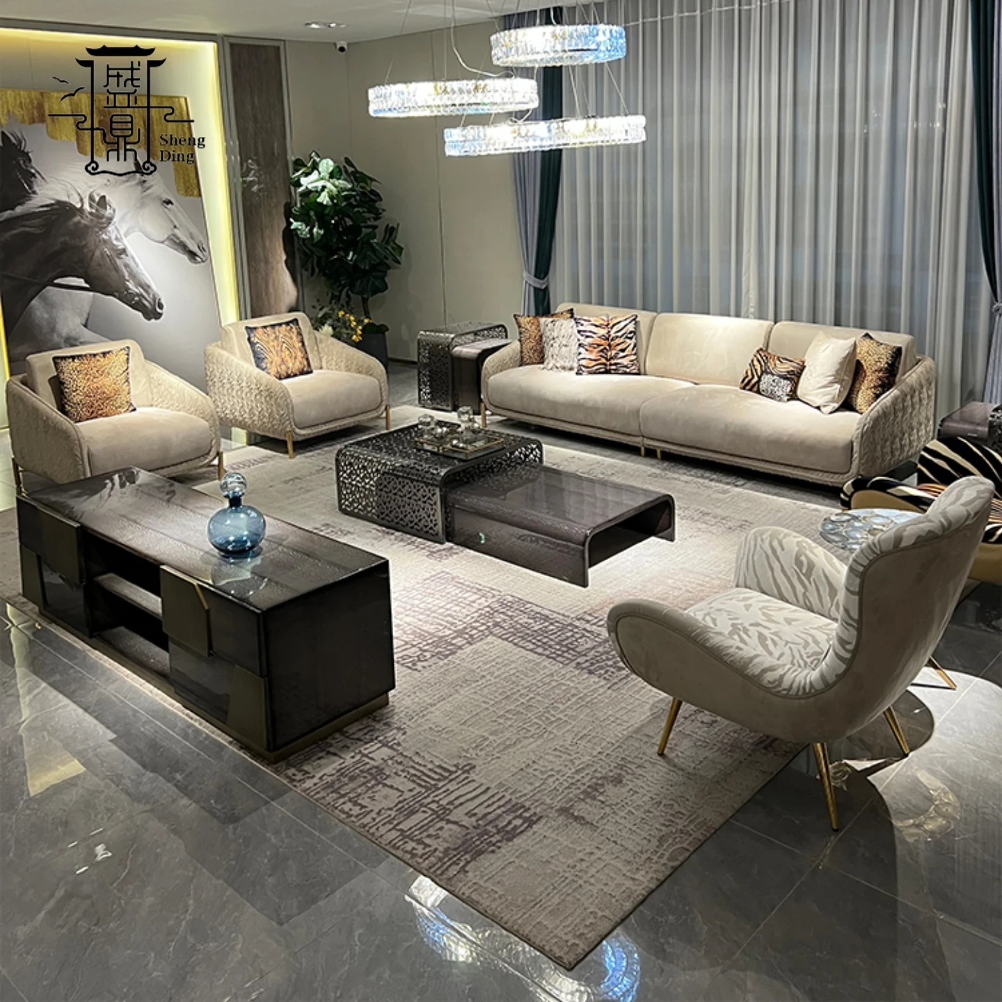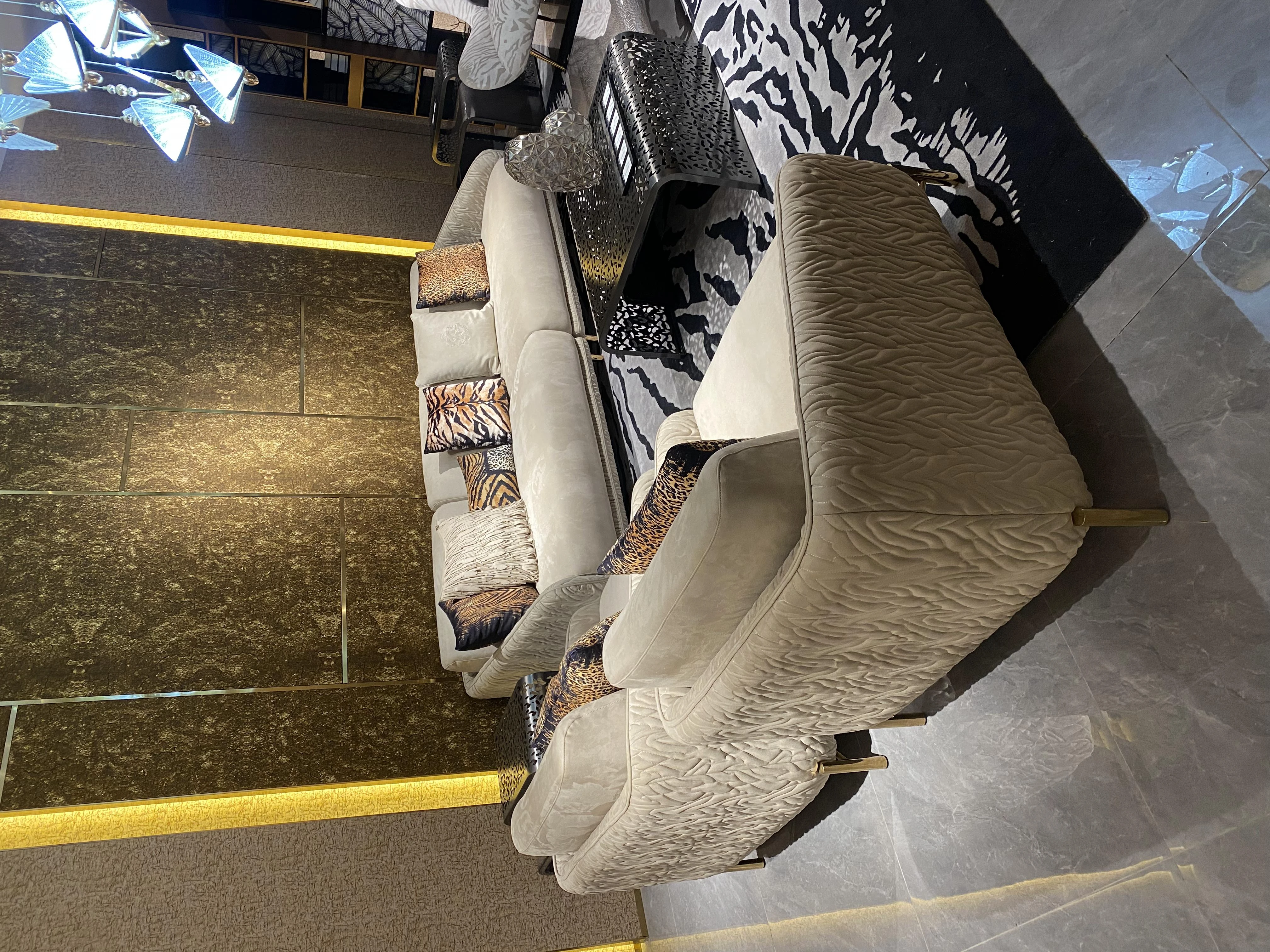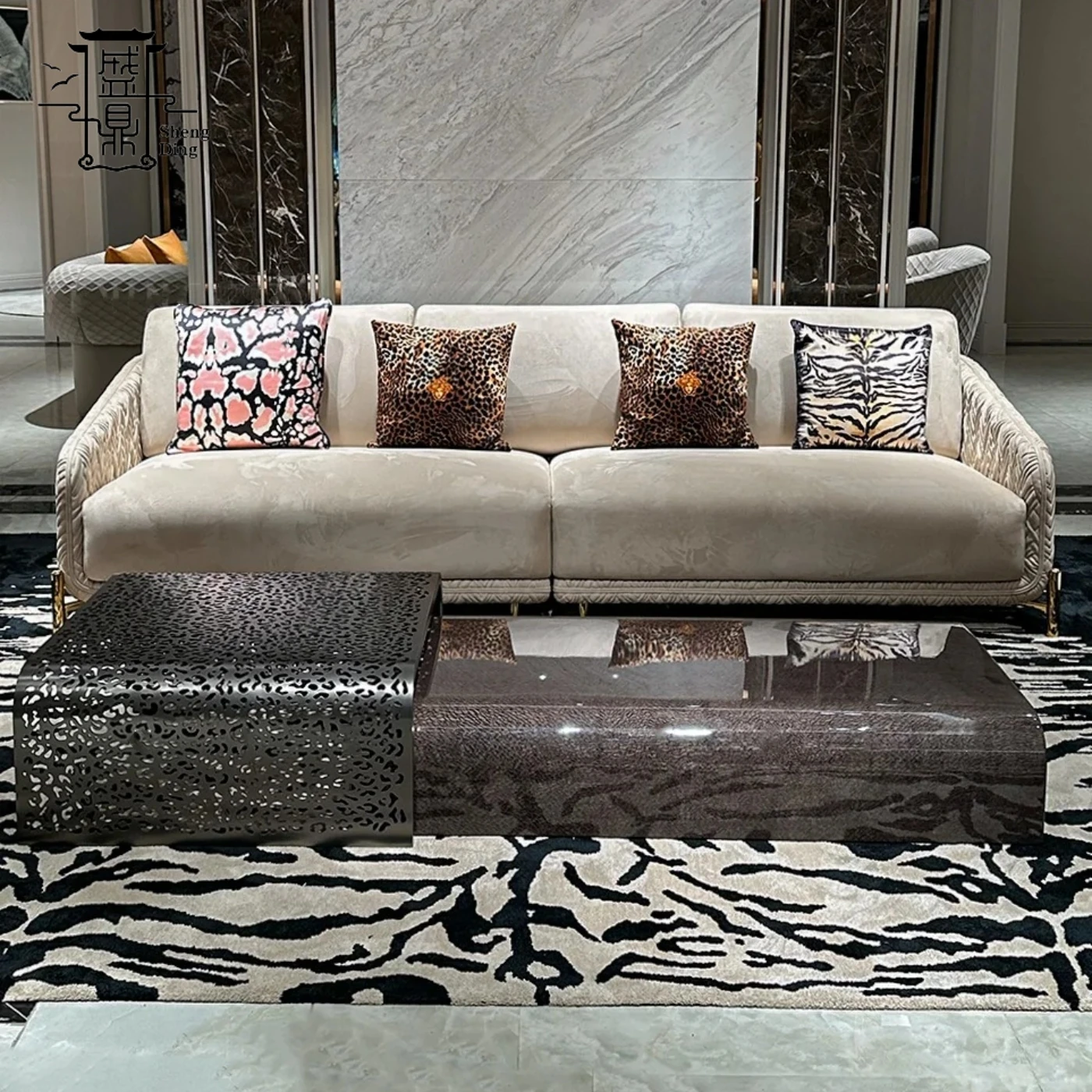 イタリアンラグジュアリー2025マットレザーソファー - グレータイガーストライプ、ラグジュアリーなリビングルームにぴったり、ハイエンドなヴィラや広々としたフラットに最適です!