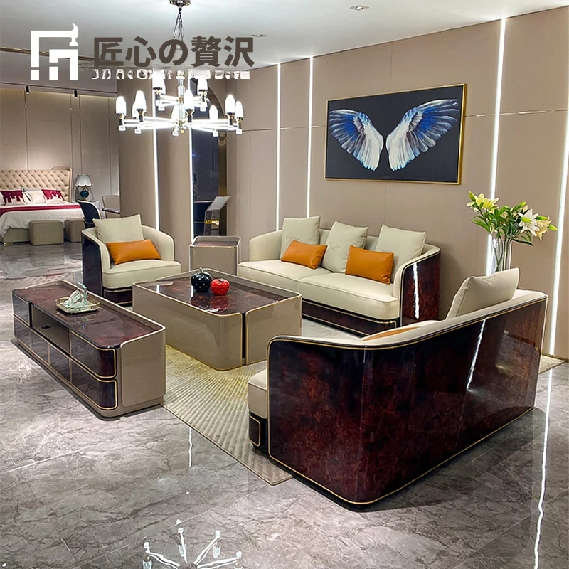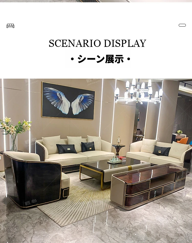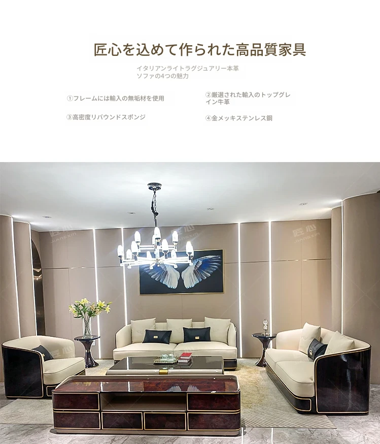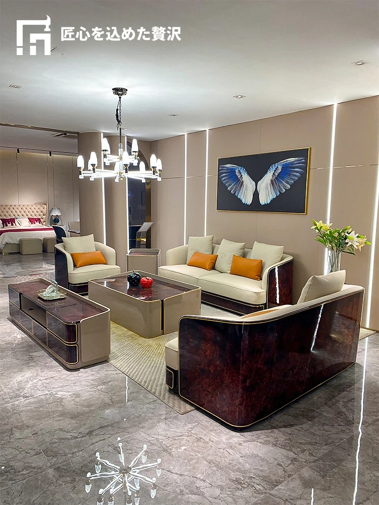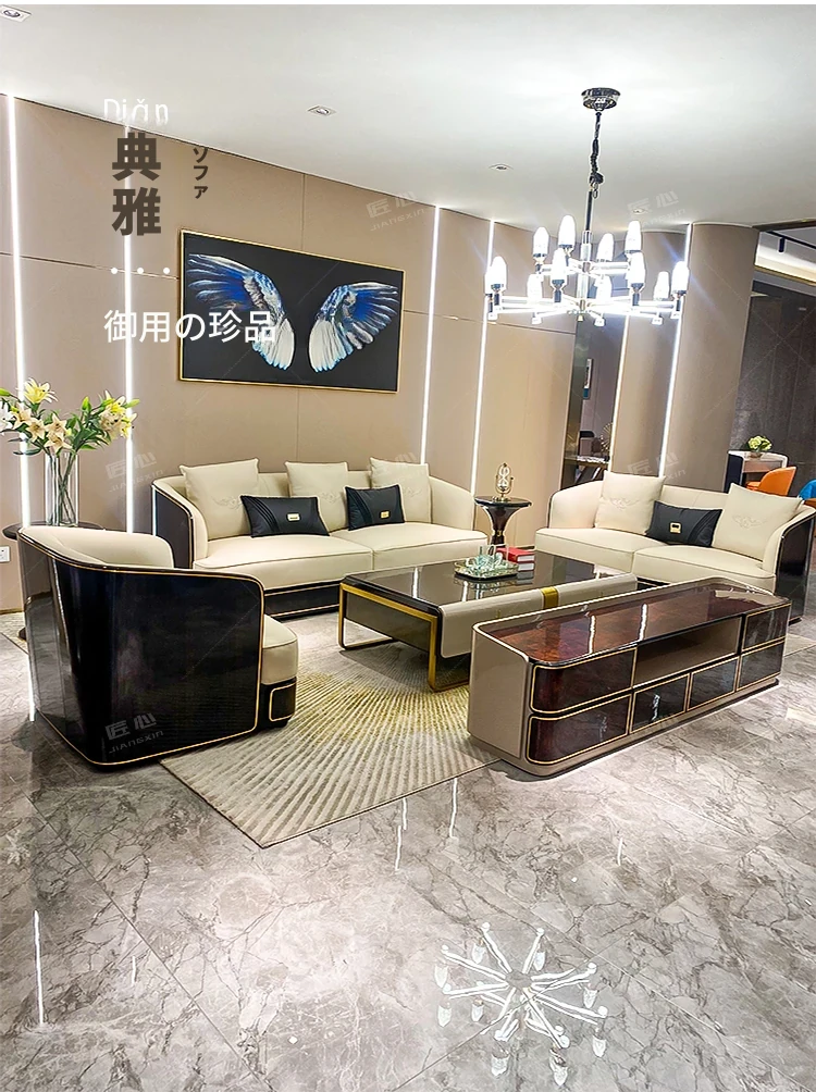 イタリアンラグジュアリー ベントレー後現代真皮ソファ AX シンプルで高級感あふれる香港スタイルの豪邸・別荘用1234コンビネーションセット