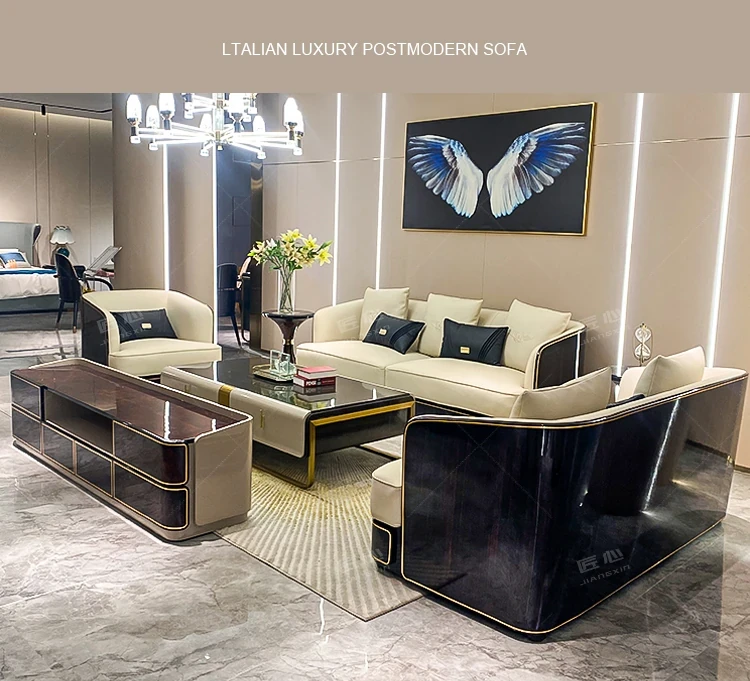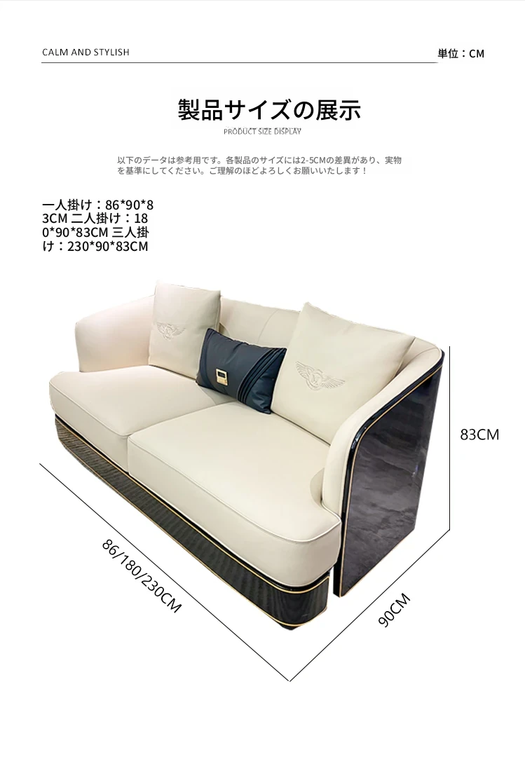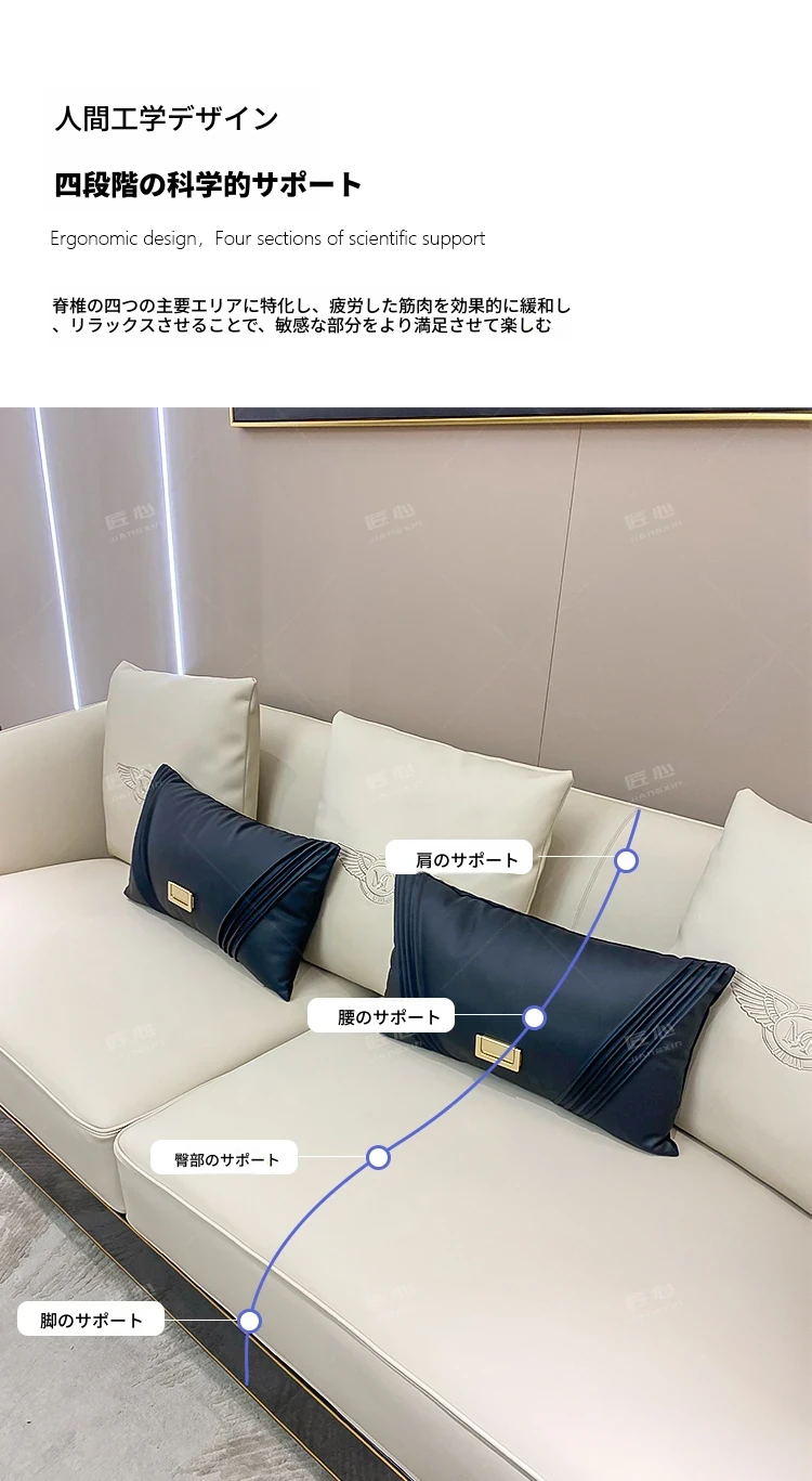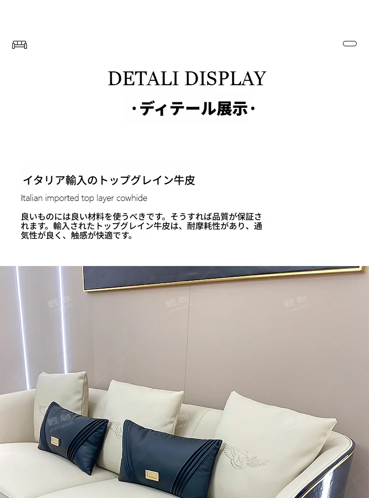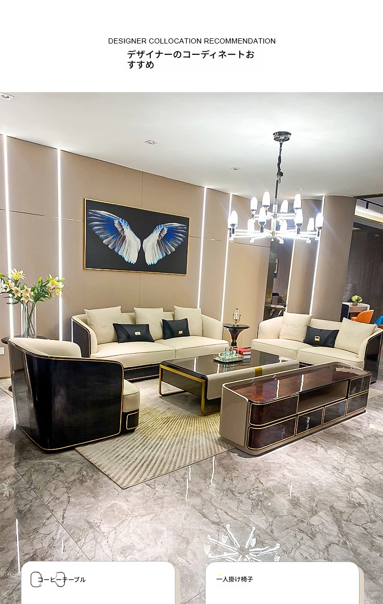 イタリアンラグジュアリー ベントレー後現代真皮ソファ AX シンプルで高級感あふれる香港スタイルの豪邸・別荘用1234コンビネーションセット