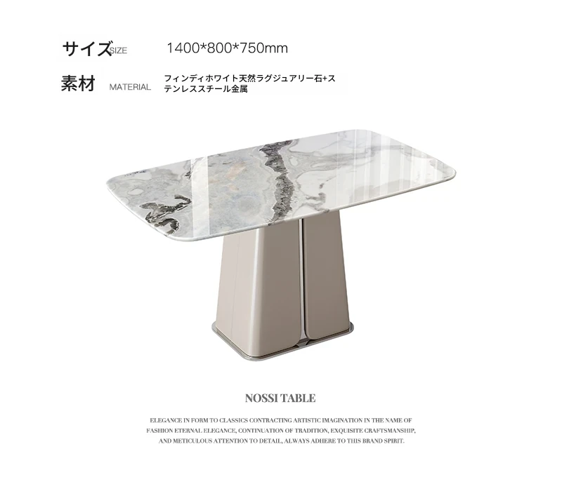 1.4メートルのダイニングテーブル フェンディホワイト天然ラグジュアリー石