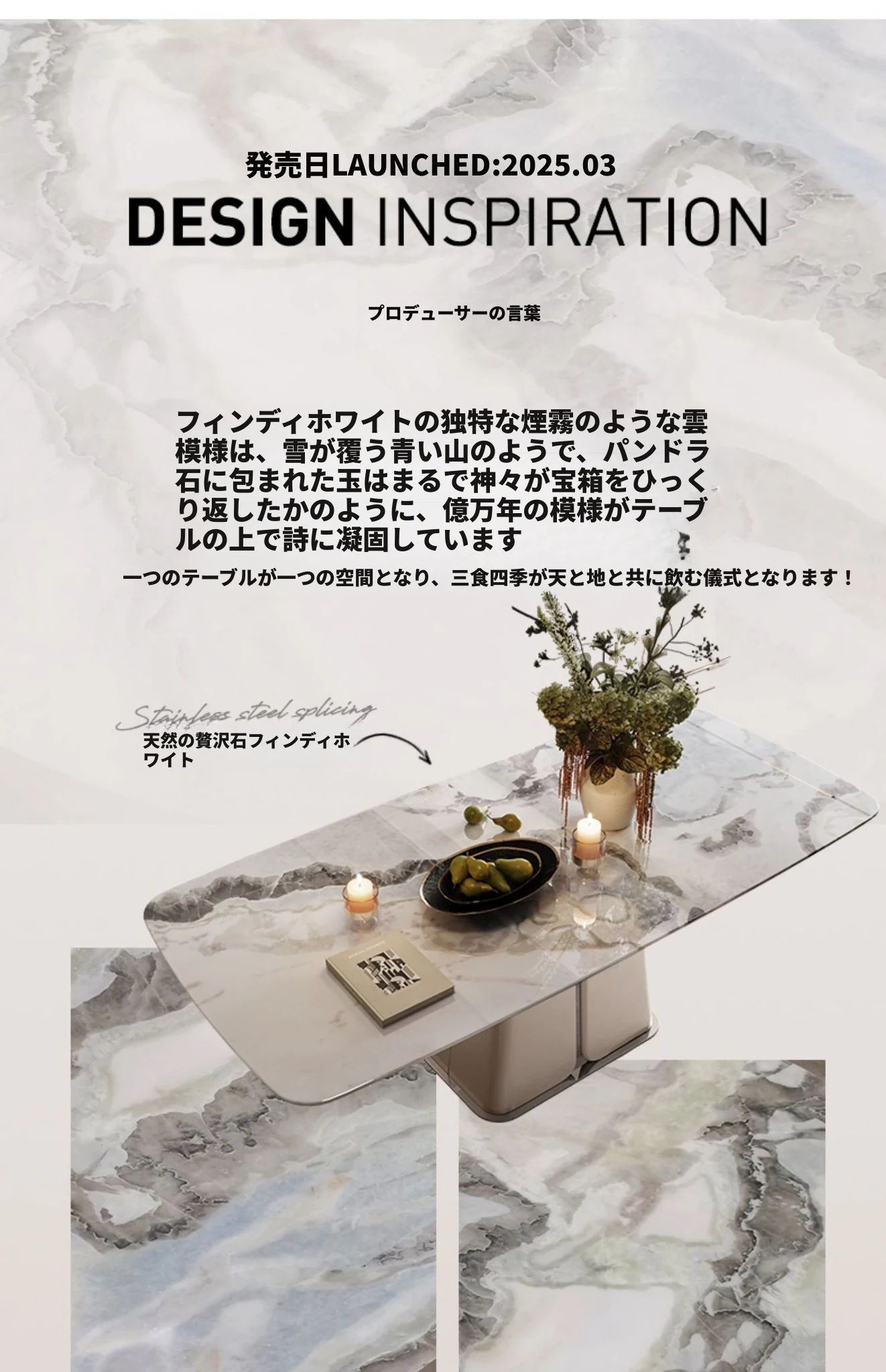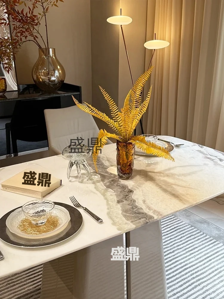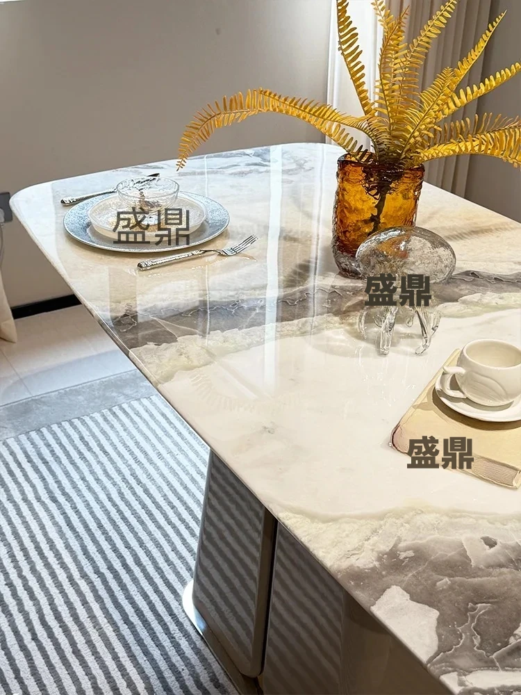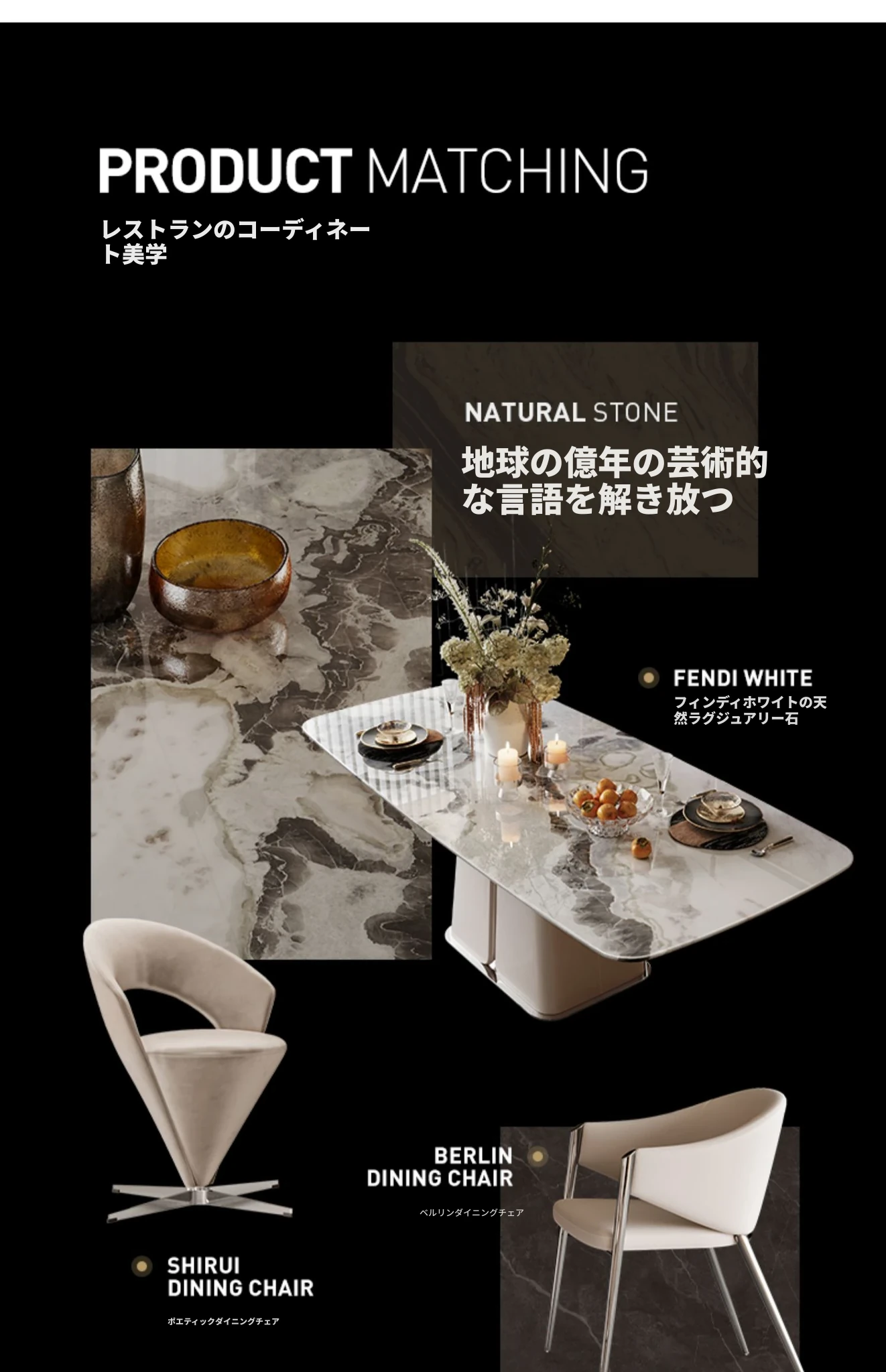 イタリアンラグジュアリー・フェンディのホワイトナチュラルストーンダイニングテーブル - ヴィラや大規模住宅に最適な高級感あふれる長方形の食卓。上品で洗練されたデザインが、特別なひとときを演出します。