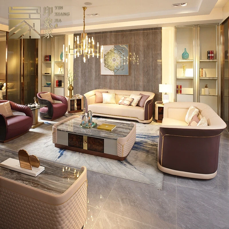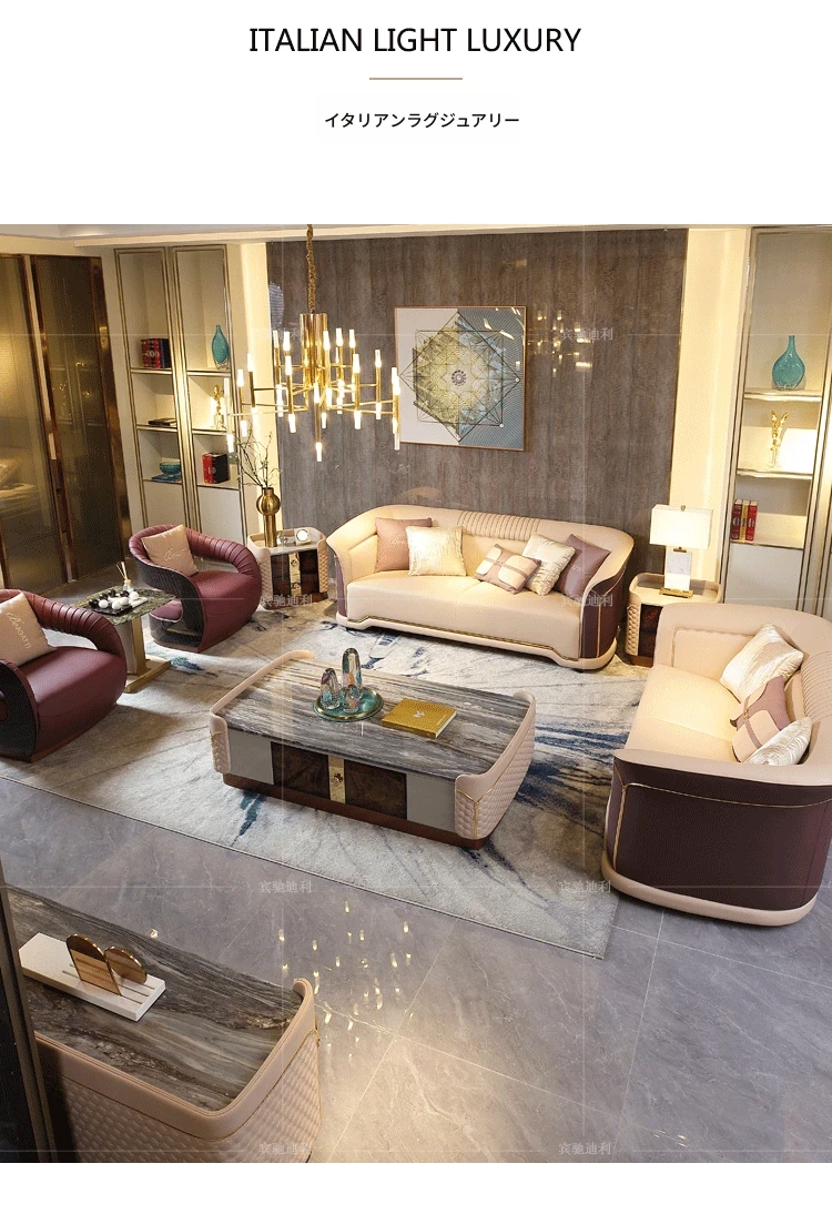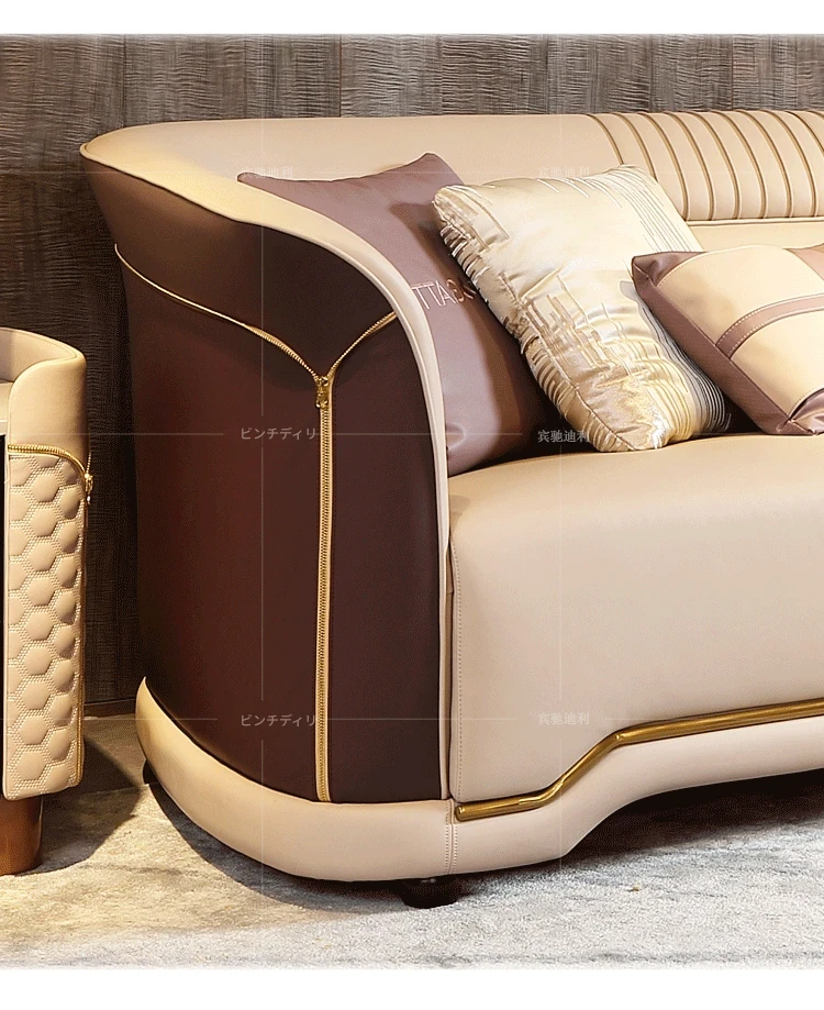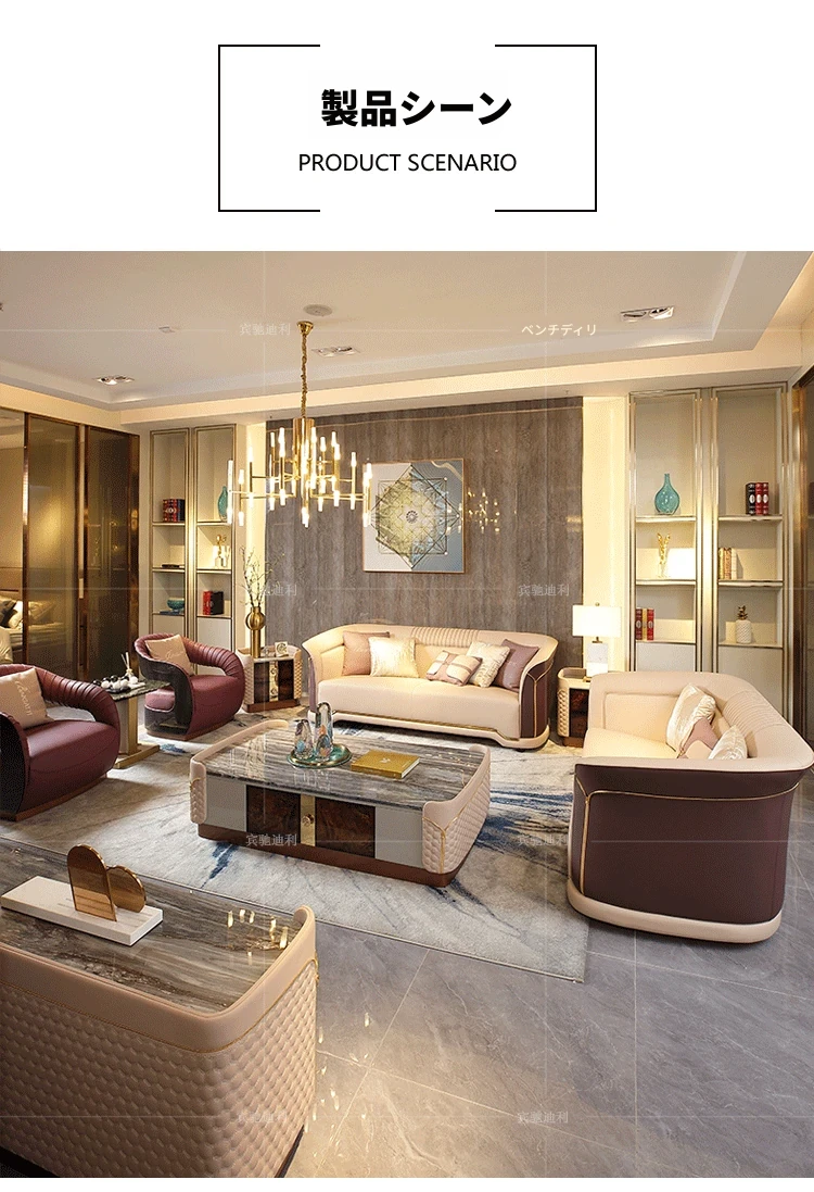 イタリアンラグジュアリー本革ソファー - ベントレー家具デザインの現代的なヴィラ向け高級リビングルーム用ソファセット。洗練されたスタイルと快適さを兼ね備えた、贅沢な空間を演出します。