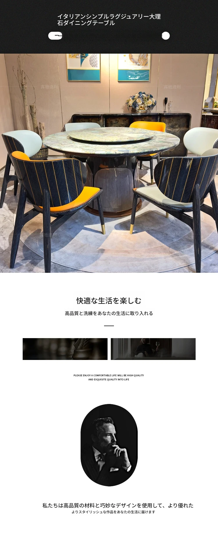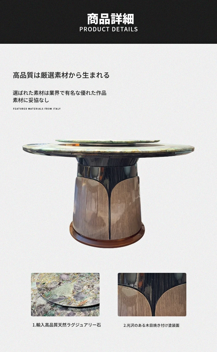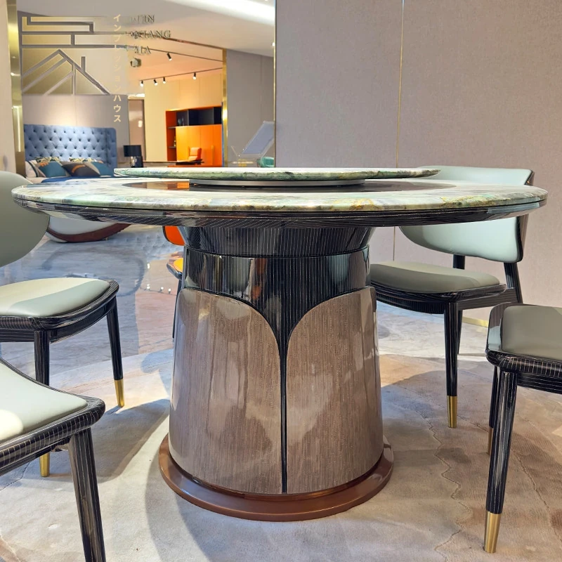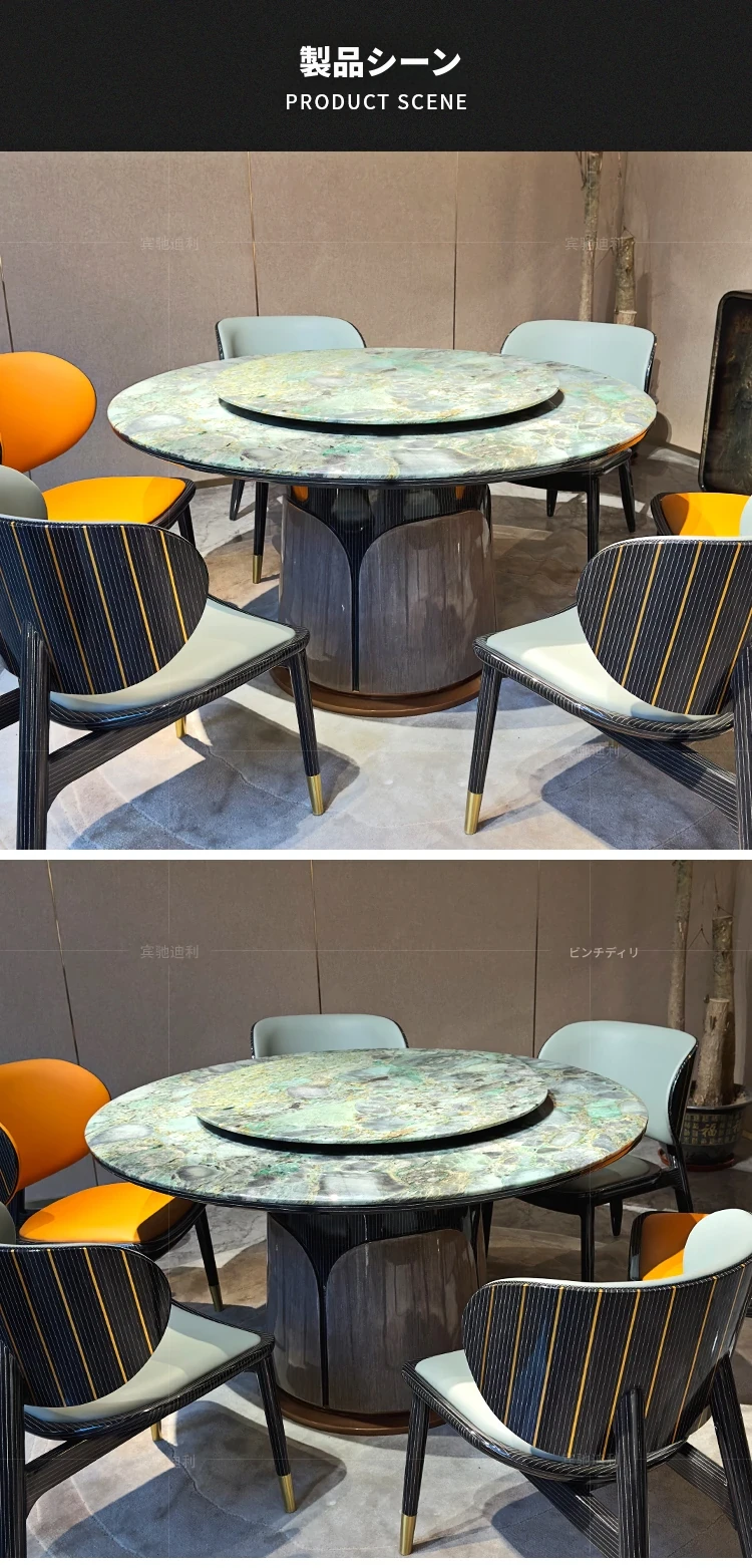 イタリアンラグジュアリー大理石ラウンドテーブル - 高級別荘向けの天然石デザインダイニングセット。洗練されたスタイルで、上質なひとときを演出する特別な家具。