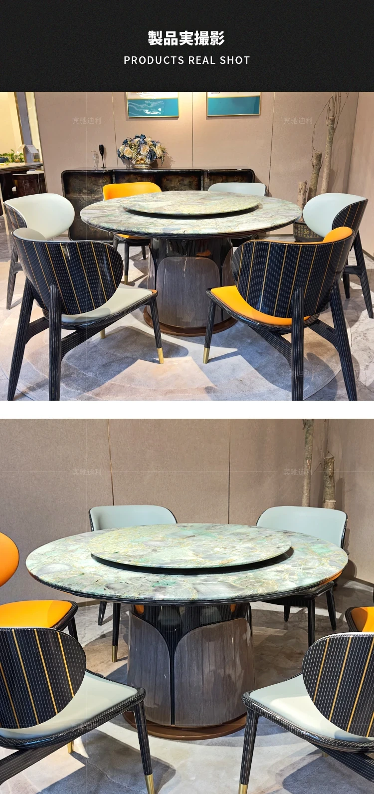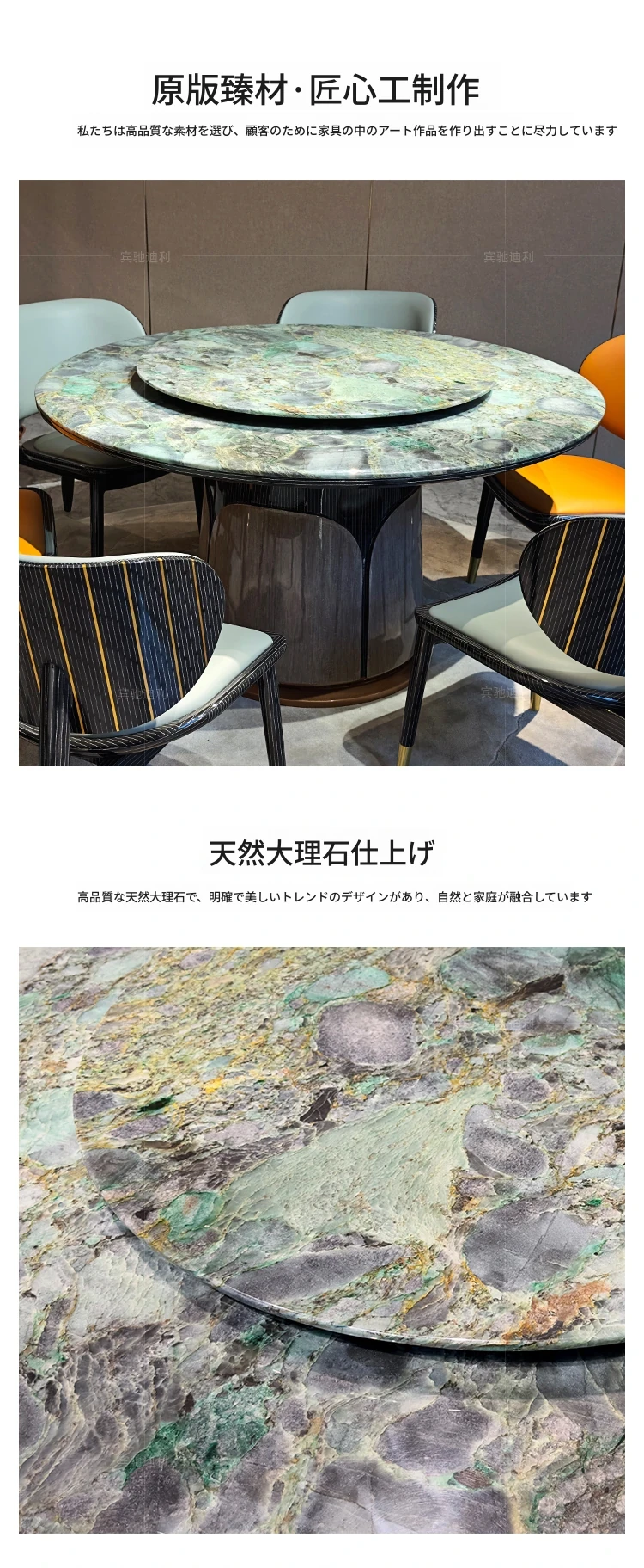 軽奢ダイニングテーブル(エメラルドグリーン豪華石)