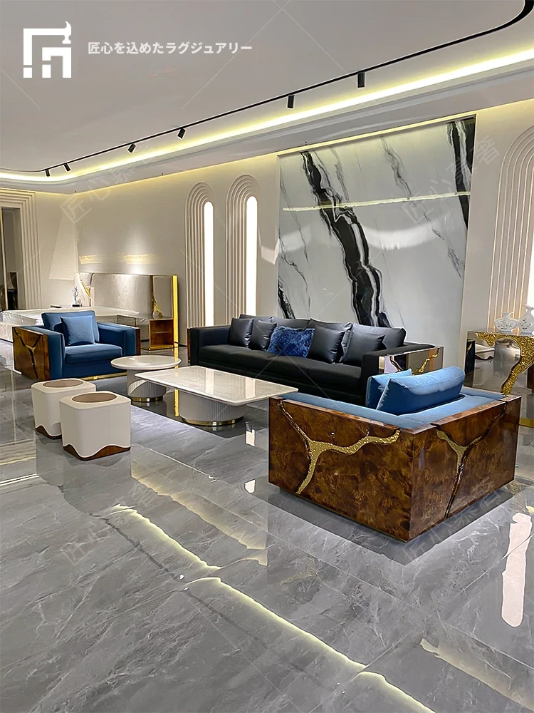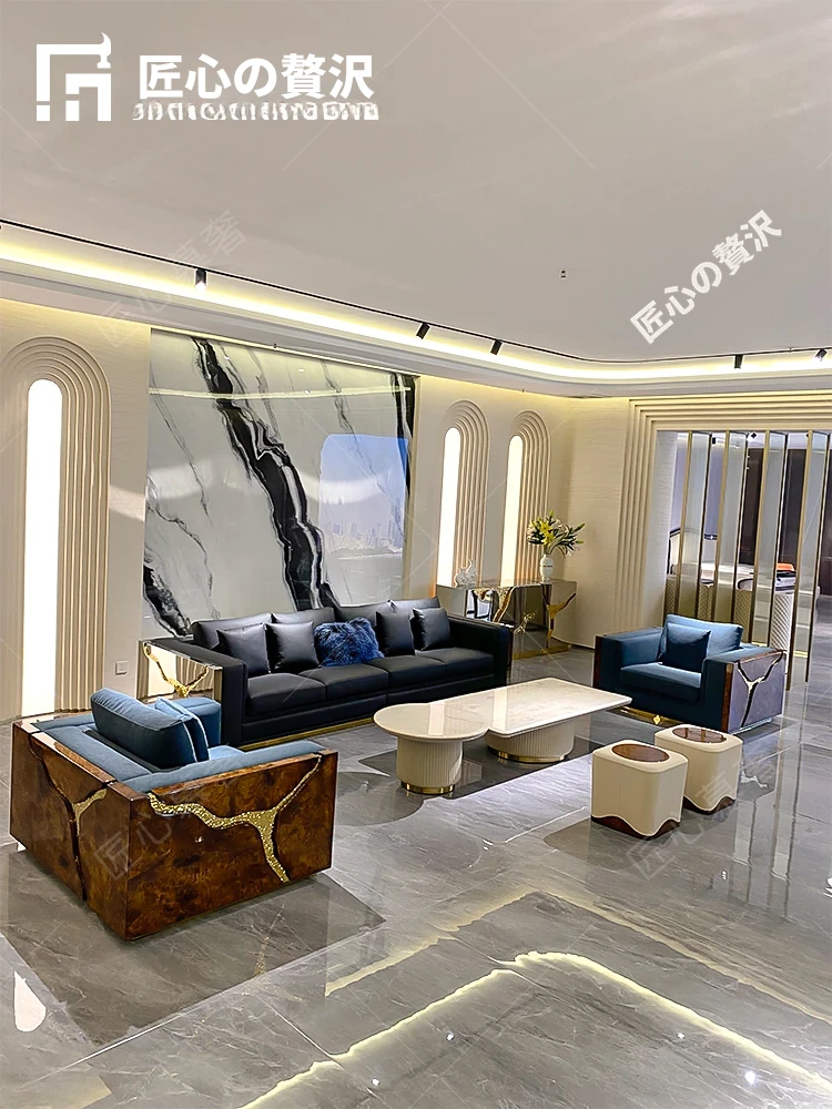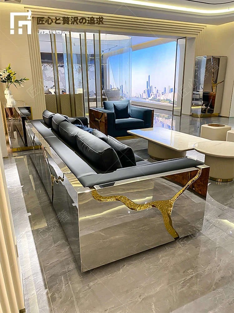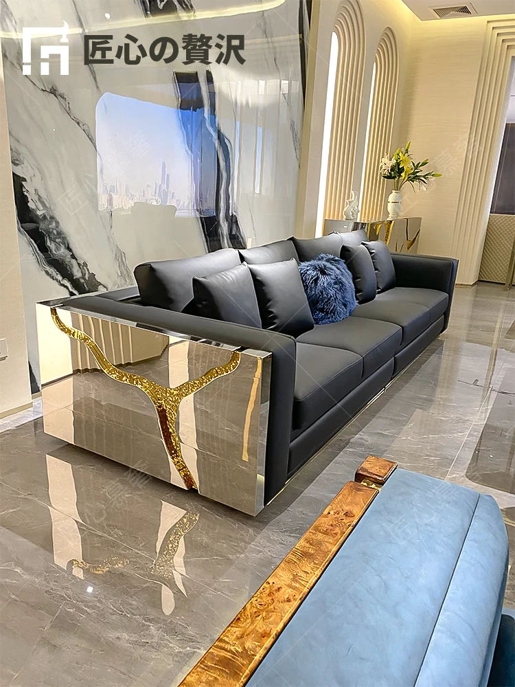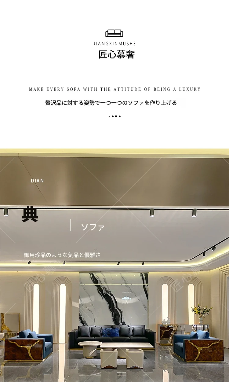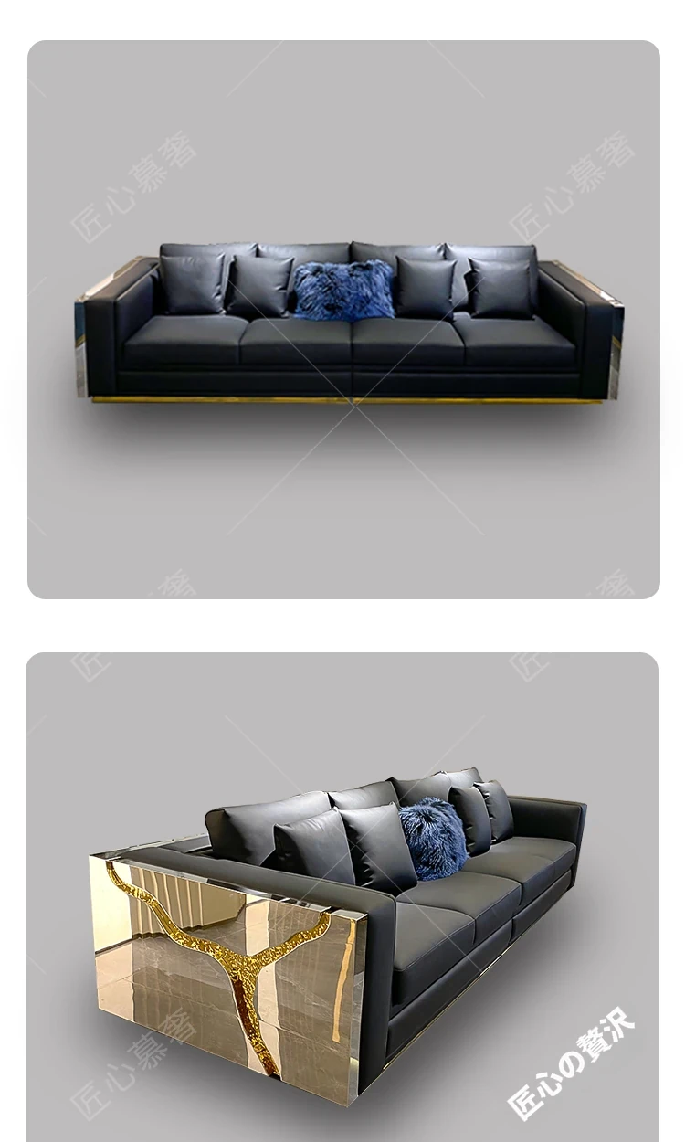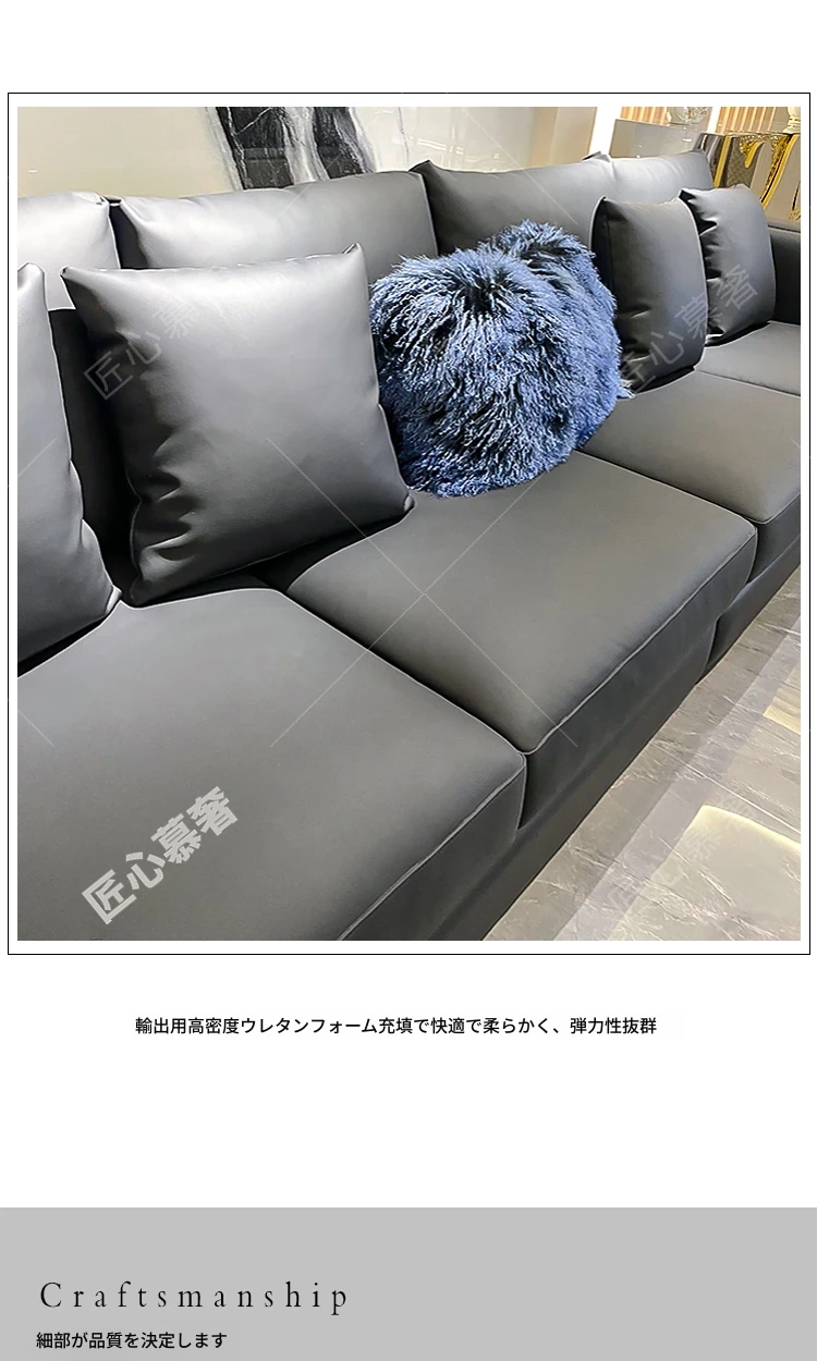 イタリアンラグジュアリー現代的ミニマルデザイン!最高級トップレザー使用のリビングルームコンビネーションソファ。広々とした高級マンションやビラに最適!快適さとスタイルを兼ね備えた逸品。