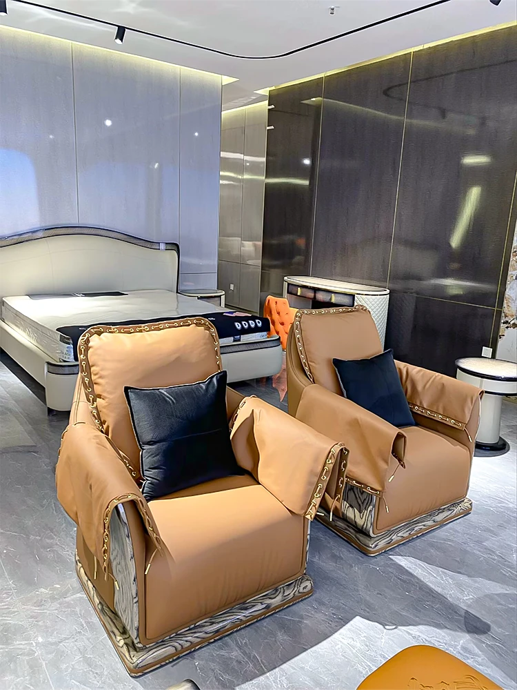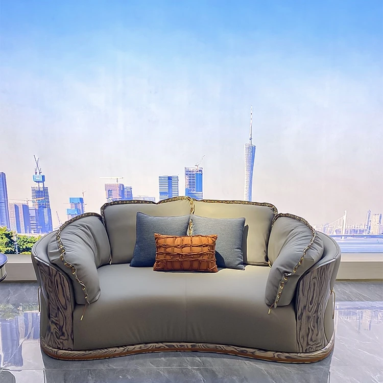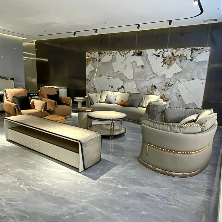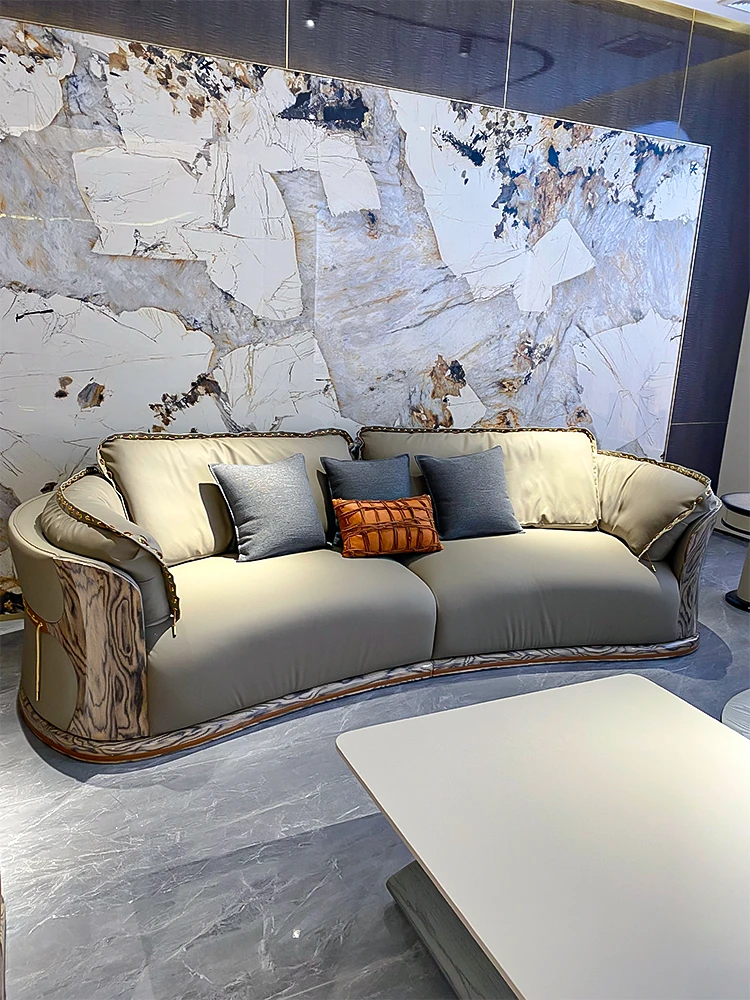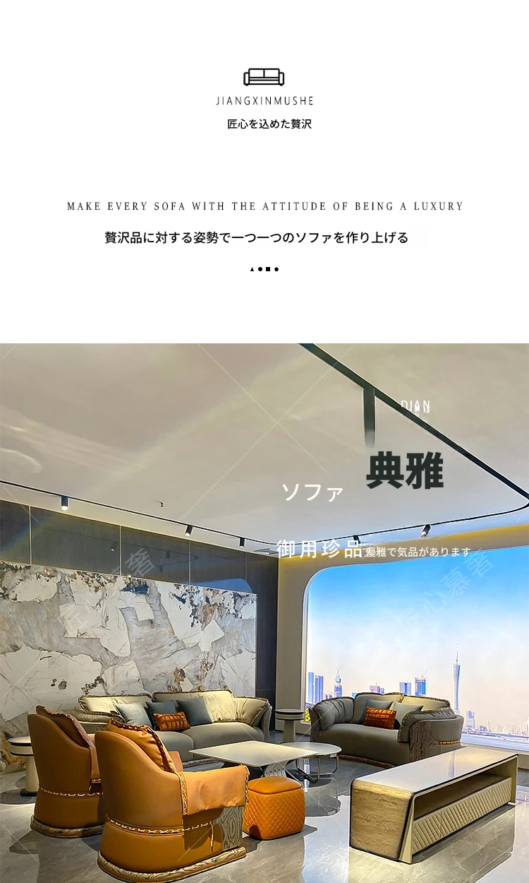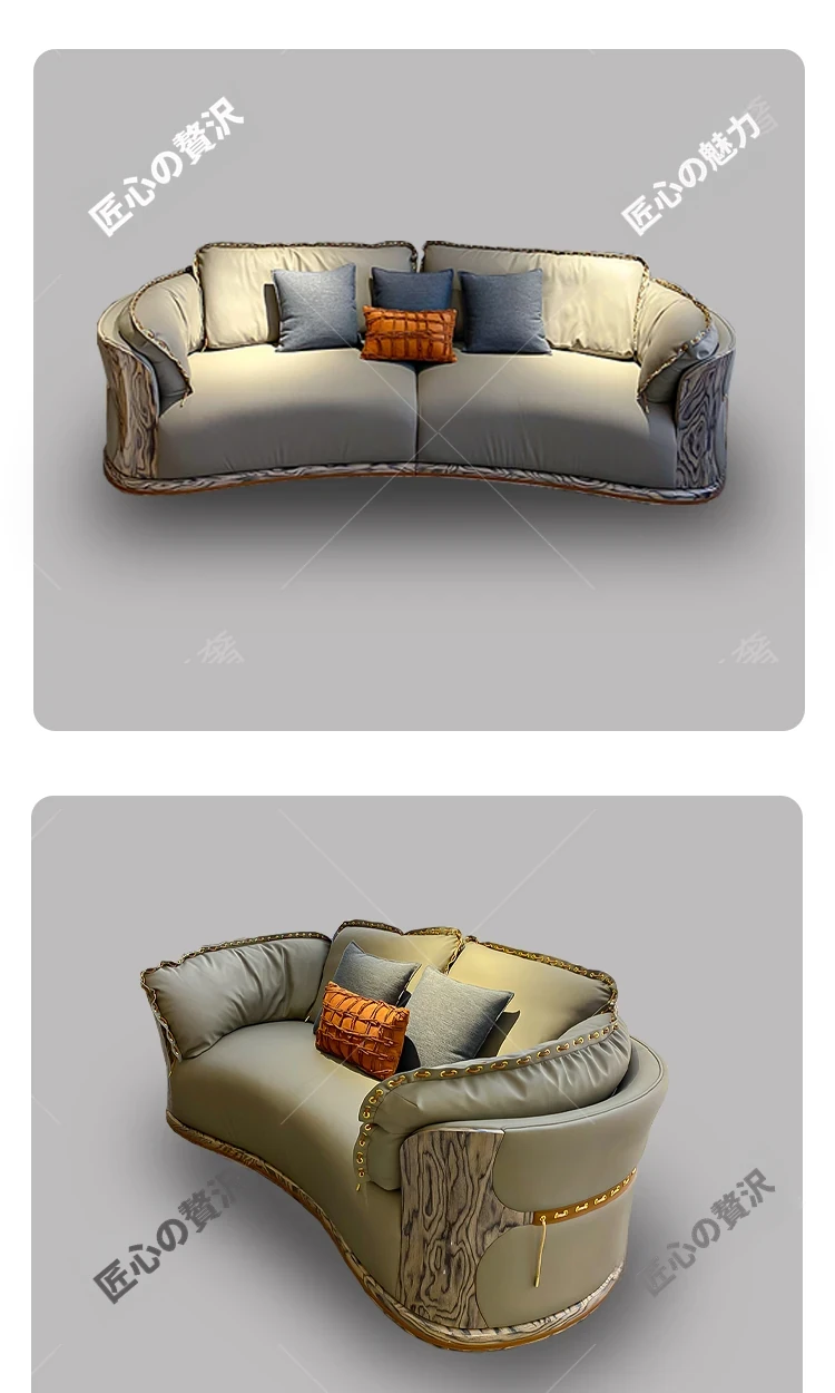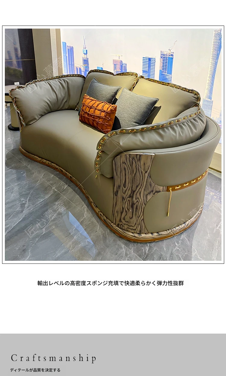 イタリアンラグジュアリー後現代レザーソファ - モダンミニマルデザイン、上質な本革使用。広々としたリビングに最適な高級大邸宅用ソファ。おしゃれな空間を演出し、心地よいひとときを提供します。