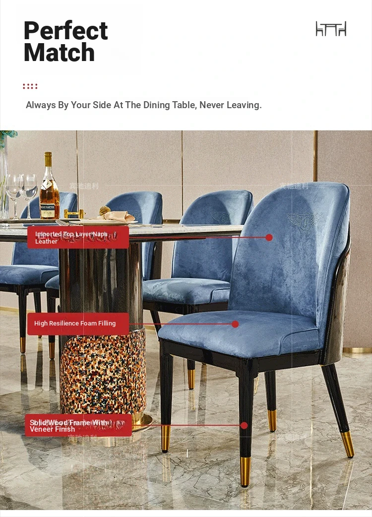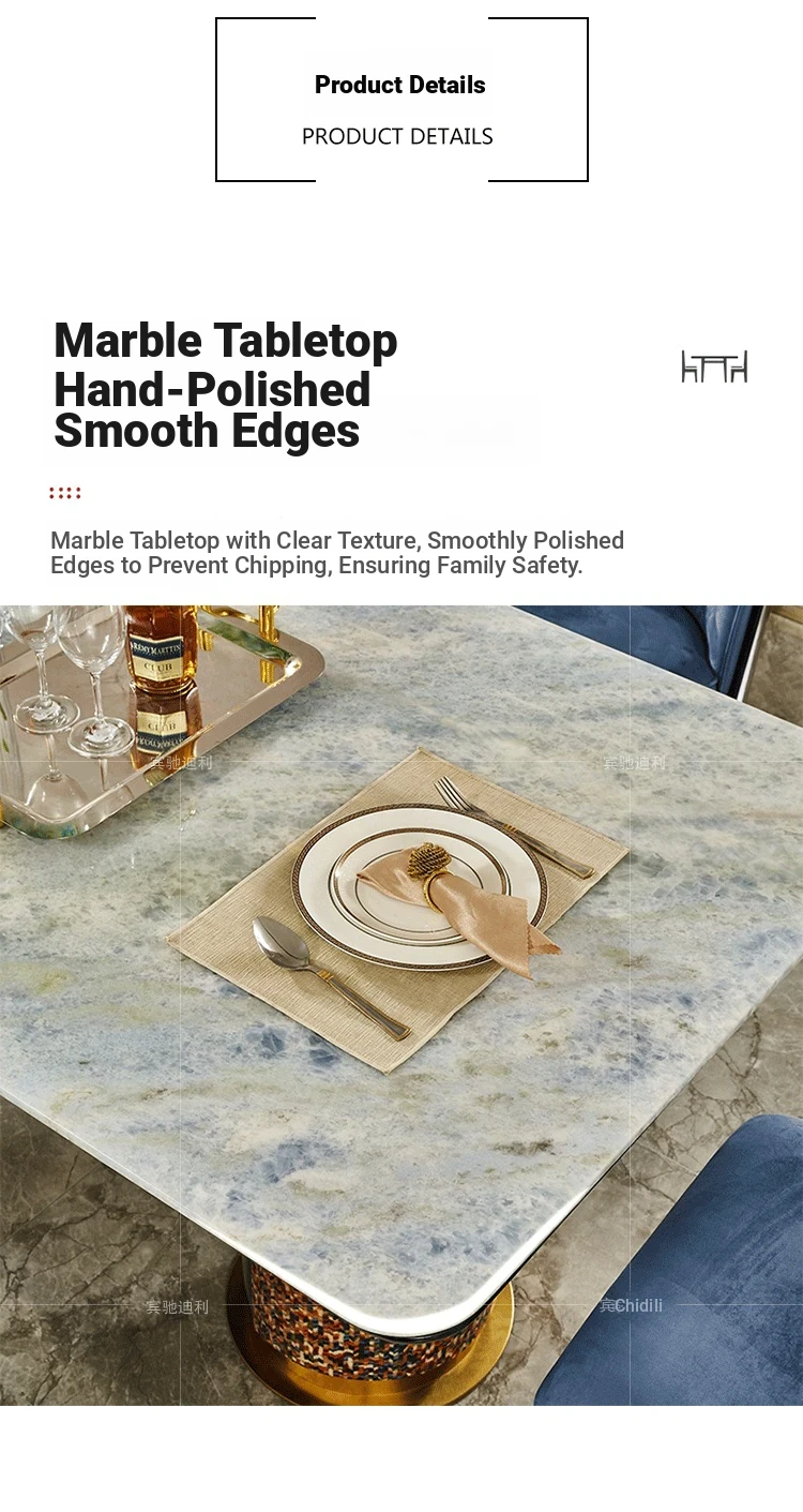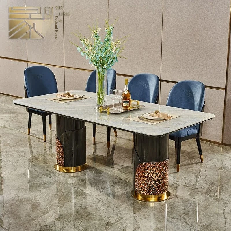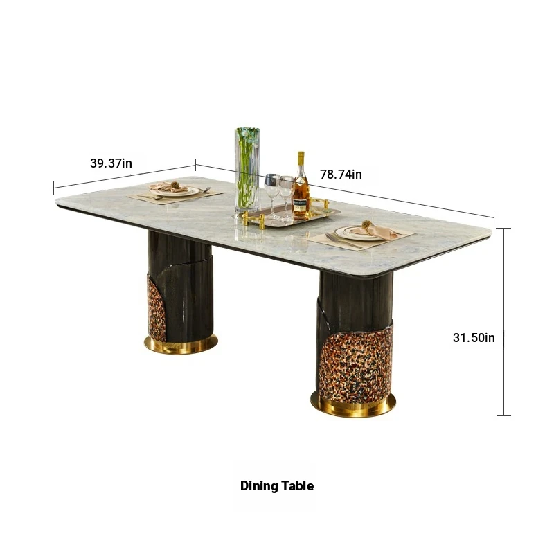 Italian Luxury Rectangular Marble Dining Table Set for 8 - Modern Villa Style, Elegant Home Décor with Chairs