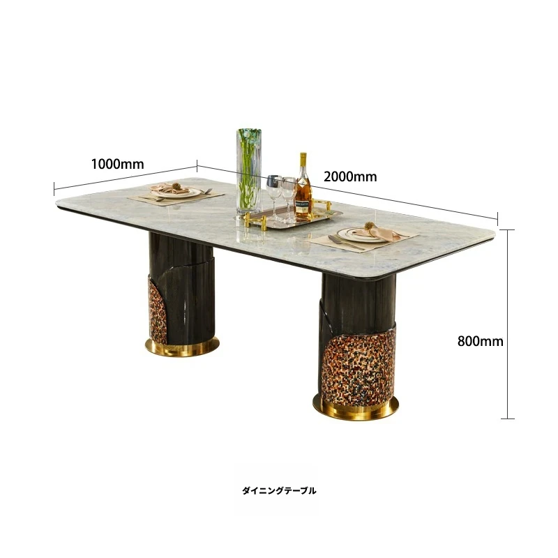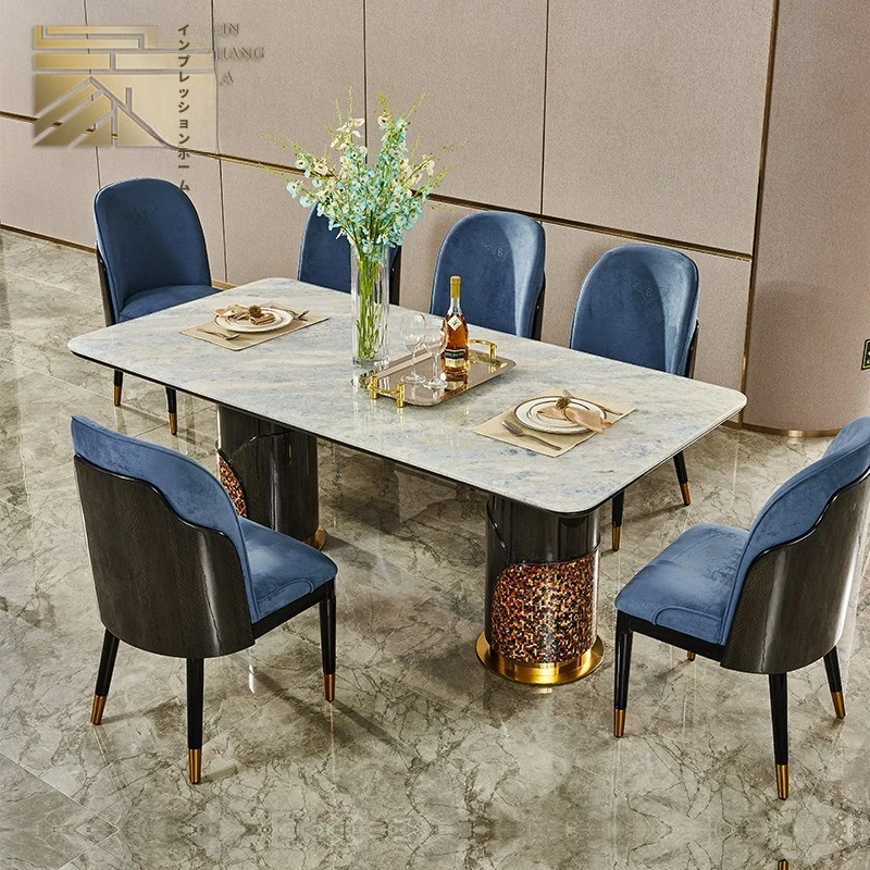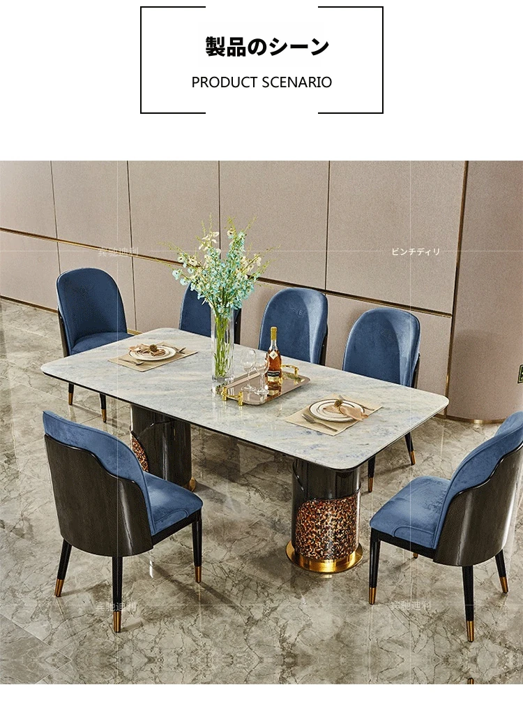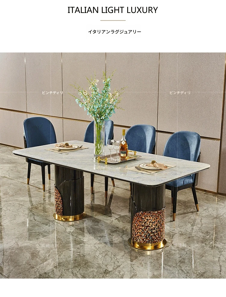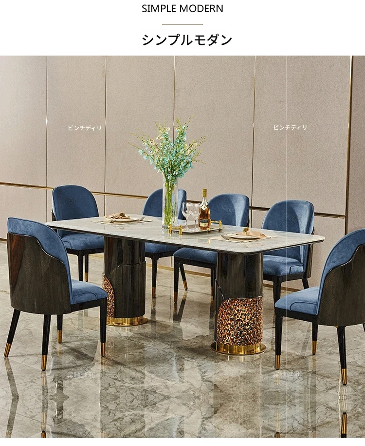 イタリアンラグジュアリー高級大理石長方形ダイニングテーブル8人用チェアセット|モダンな別荘スタイルで、上質な雰囲気を演出する家庭用家具。