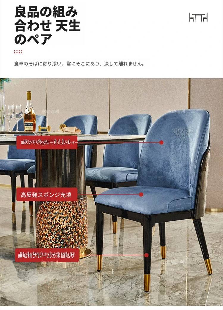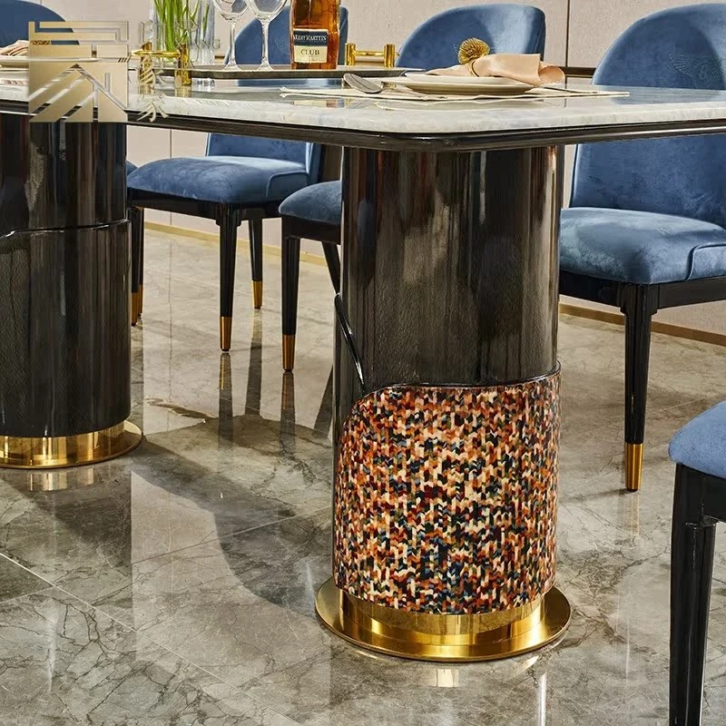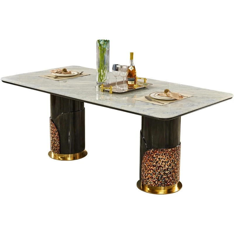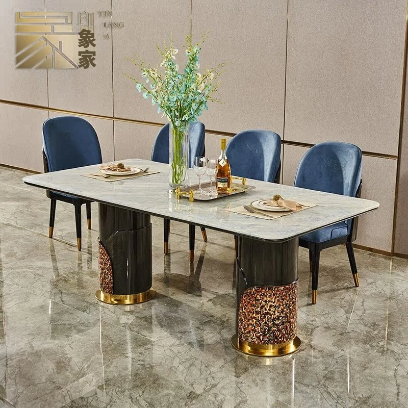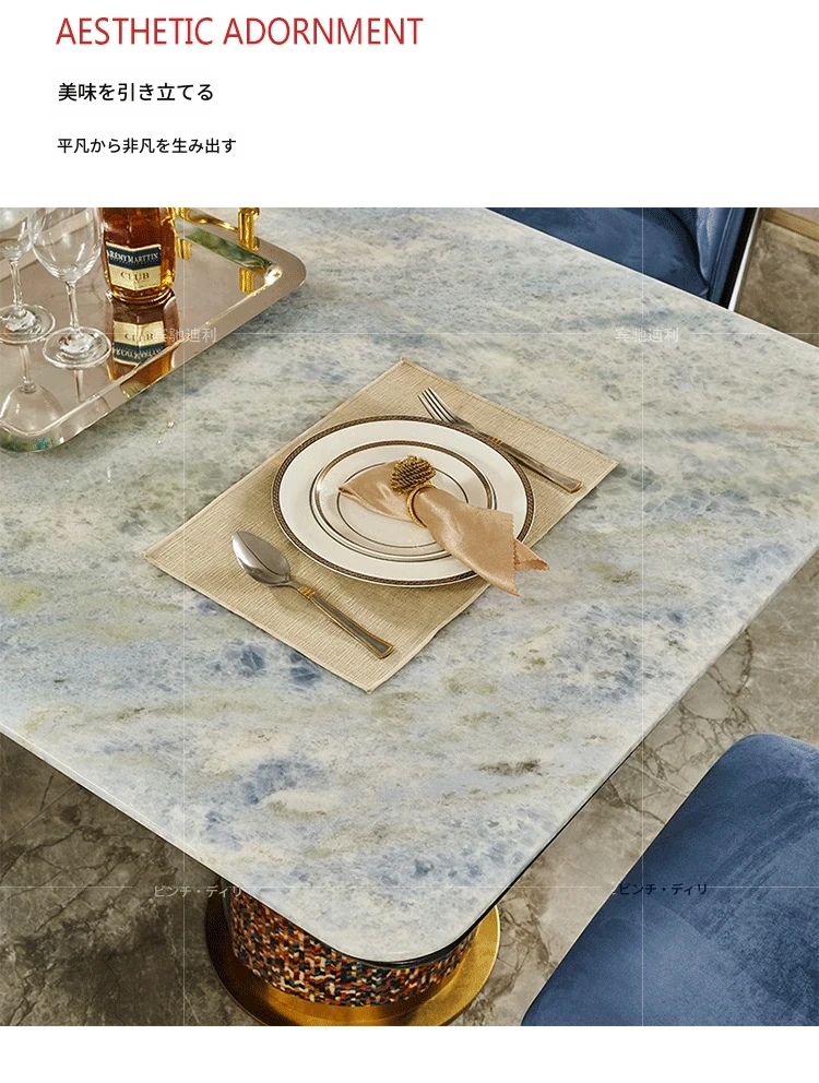 イタリアンラグジュアリー高級大理石長方形ダイニングテーブル8人用チェアセット|モダンな別荘スタイルで、上質な雰囲気を演出する家庭用家具。