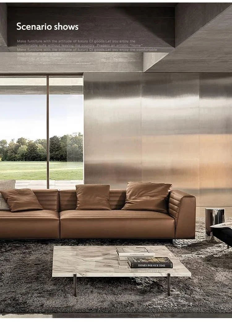 イタリアンミニマリズムの高級軽奢ソファ|本革使用|どんなサイズのリビングにもぴったり!ヴィラスタイルやモデルルームにも最適なデザイン|贅沢な布地ソファで、癒しの空間を演出します。