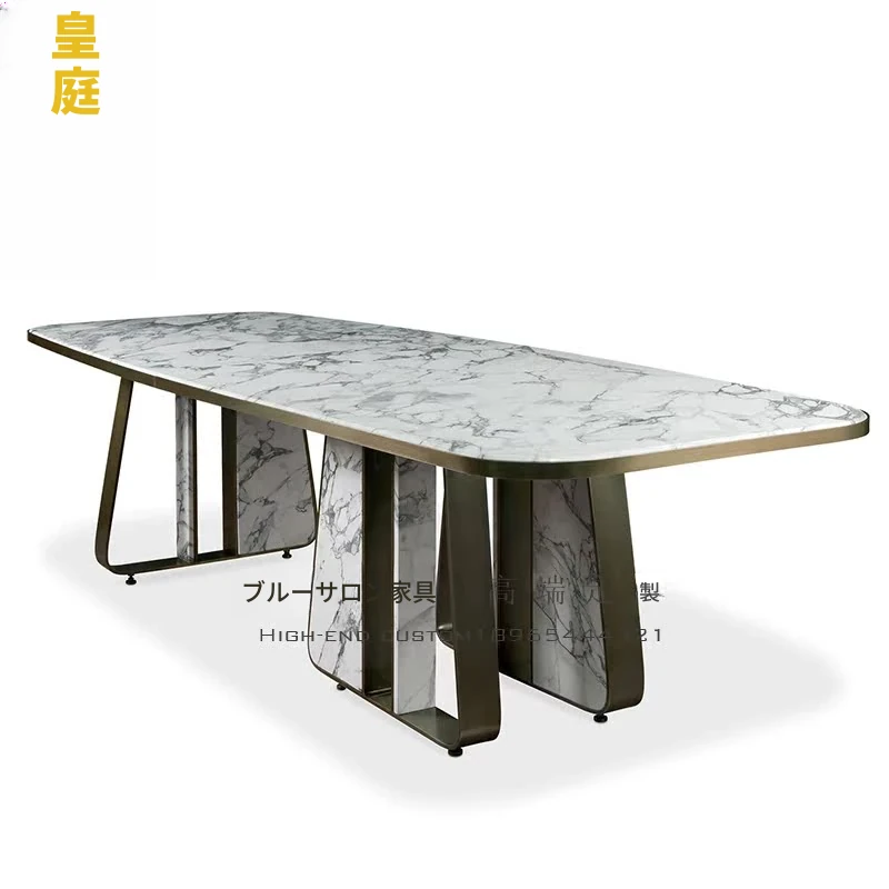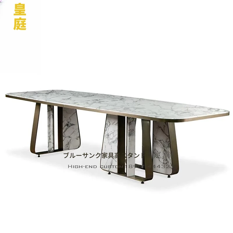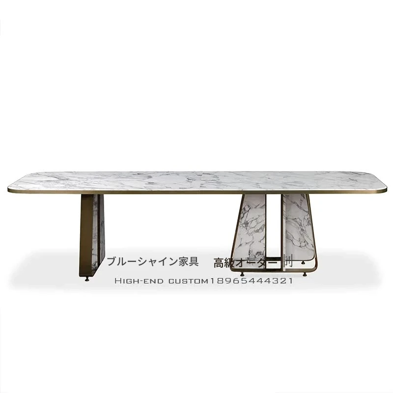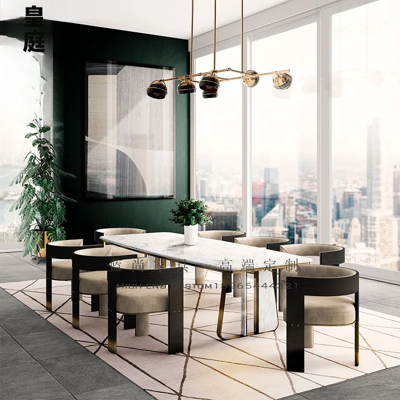 イタリアンミニマル高級天然大理石ダイニングテーブル - モダンでシンプルなデザイン、別荘のレストランにぴったりな高級感溢れるダイニングセット。洗練された空間を演出します!