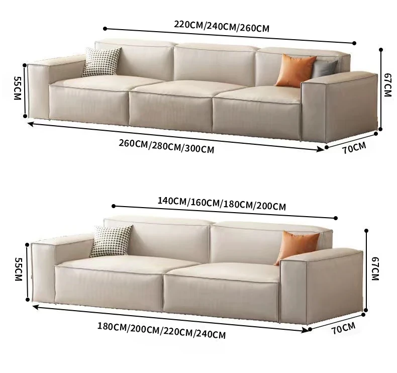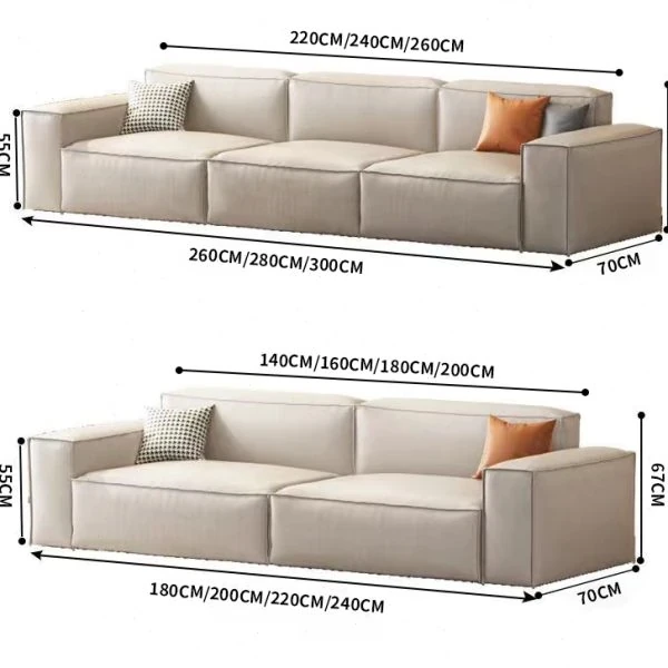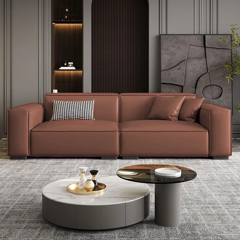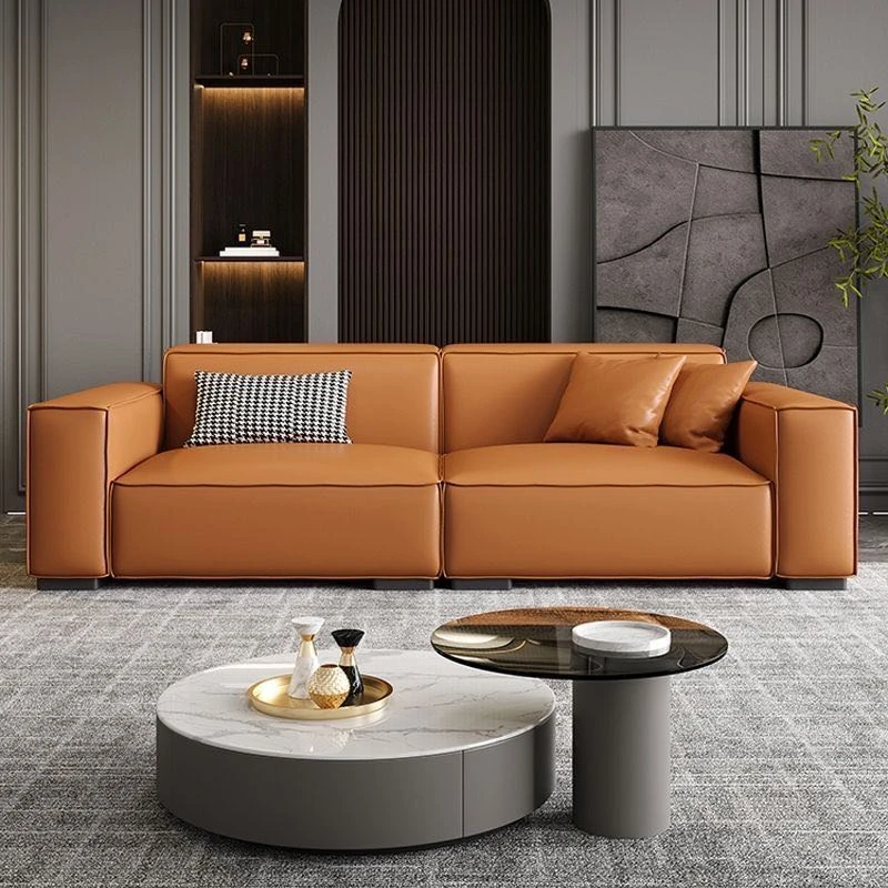 おしゃれなリビングにぴったり!イタリアンスタイルの軽やかな豪華感を持つアパート用ソファ。コンパクトなデザインで、モダンな空間にフィットする布製&レザーの豆腐ブロックソファ。