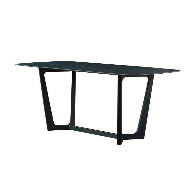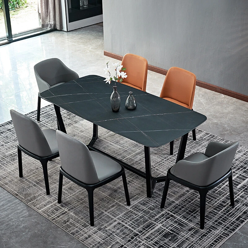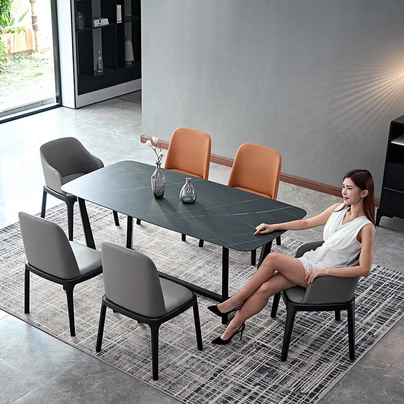 イタリアンミニマルデザインの長方形ダイニングテーブル&チェアセット|狭いお部屋にも最適!|高級レザー椅子で贅沢な食事体験をお楽しみください!