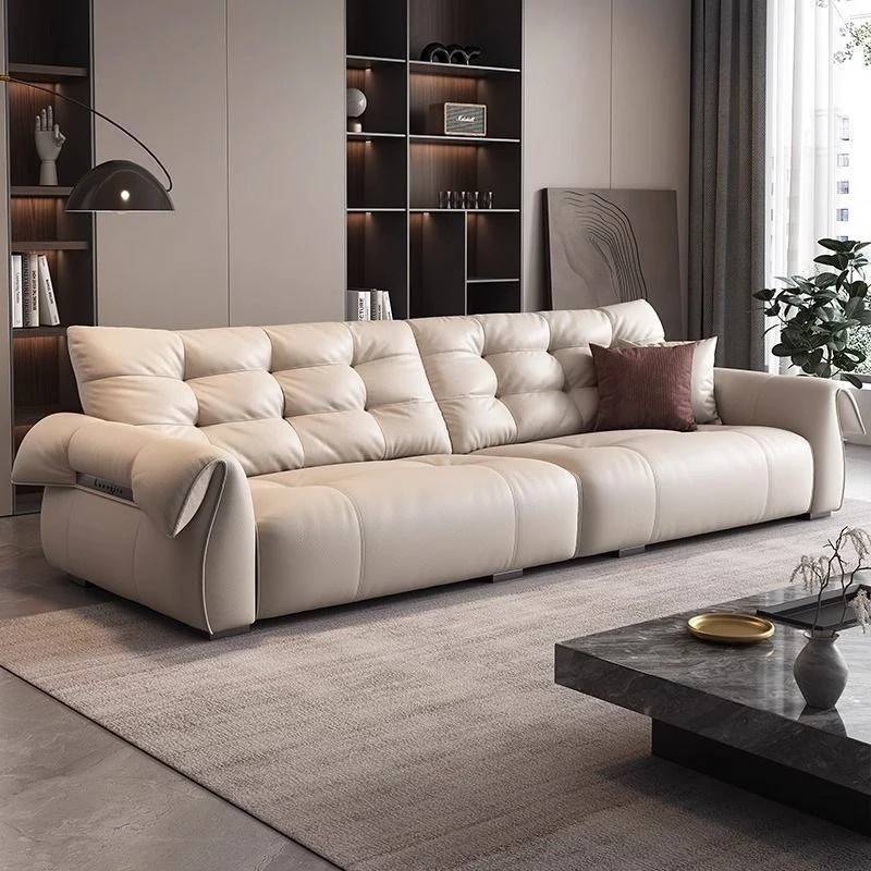 イタリアンミニマリストスワンソファー - シンプルでモダンなデザイン、小型住宅にも最適!高級感溢れる本革使用、快適な座り心地を実現。リビングに洗練されたスタイルをプラス!