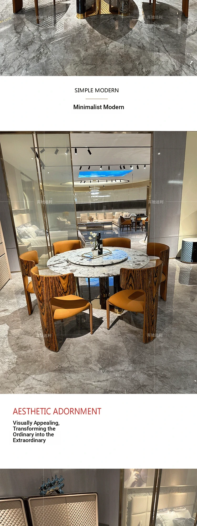 Italian Natural Marble Luxury Dining Table and Chair Set - Elegant Modern Round Table for High-End Villas, Perfect for Upscale Home Dining Experience