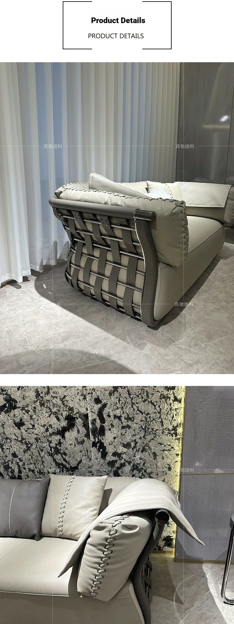 Italian Post-Modern Luxury Bashar Sofa Set for Villa Living Rooms - High-End Napa Leather 123 Combination, Perfect for Elegant Hong Kong Style Interiors