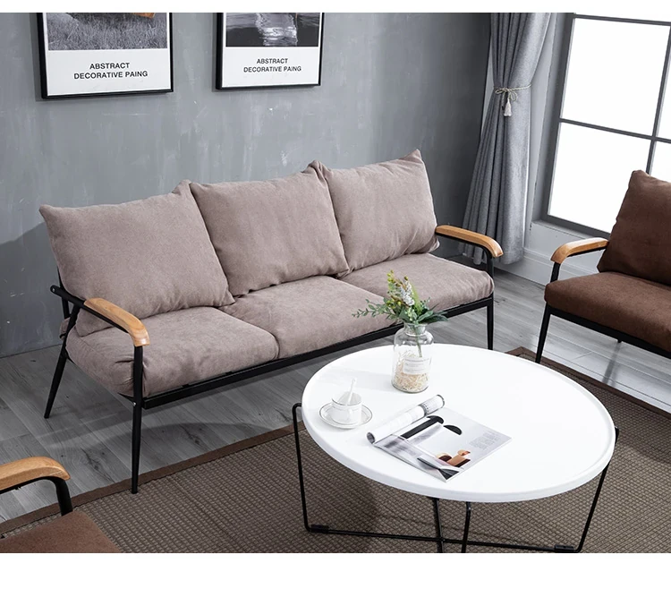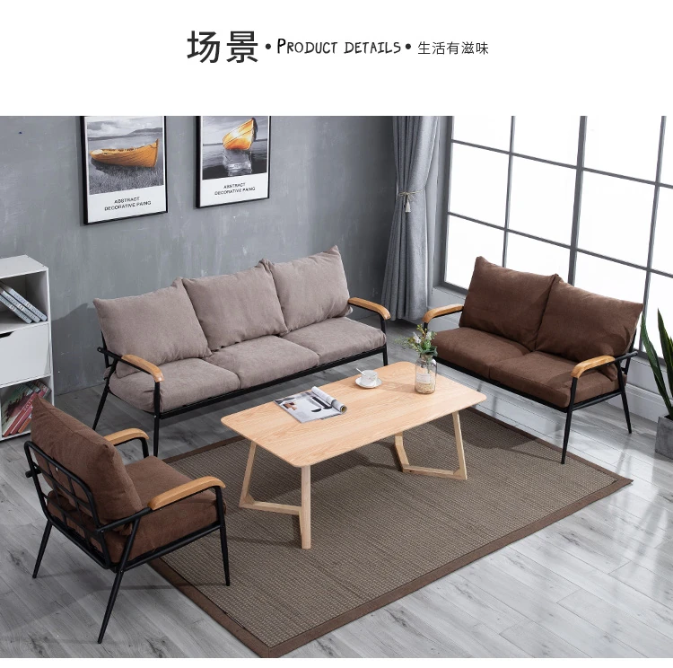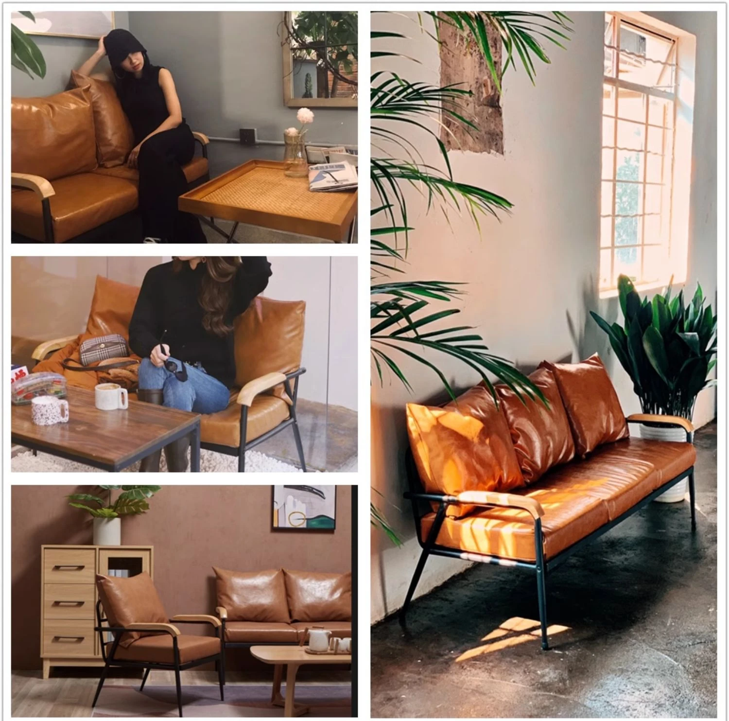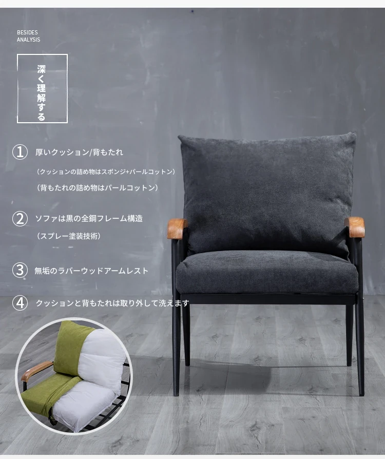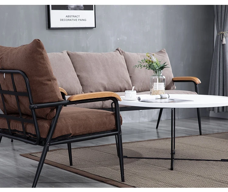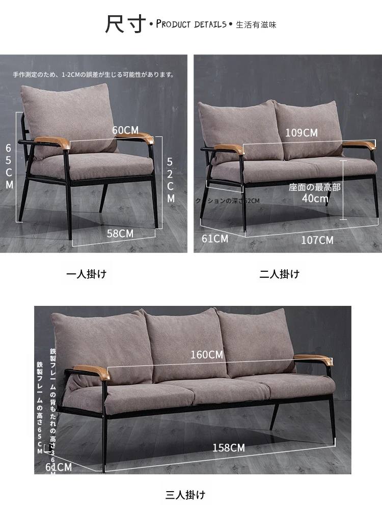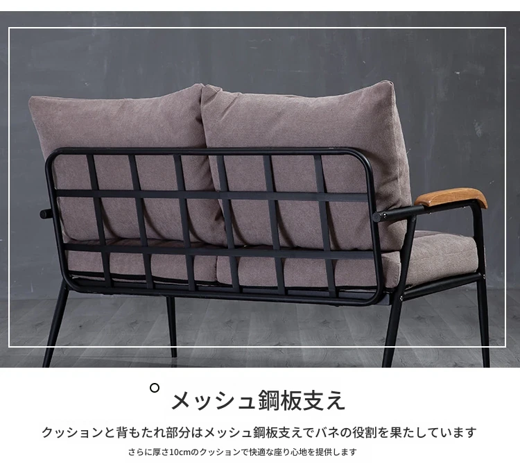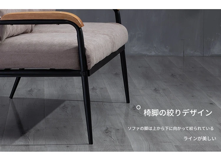 モダンな和風ファブリックソファ|小型リビングにぴったり!2人掛け・3人掛け対応|天然木&アイアンのシンプルデザインでおしゃれな空間を演出するコンビネーション家具!