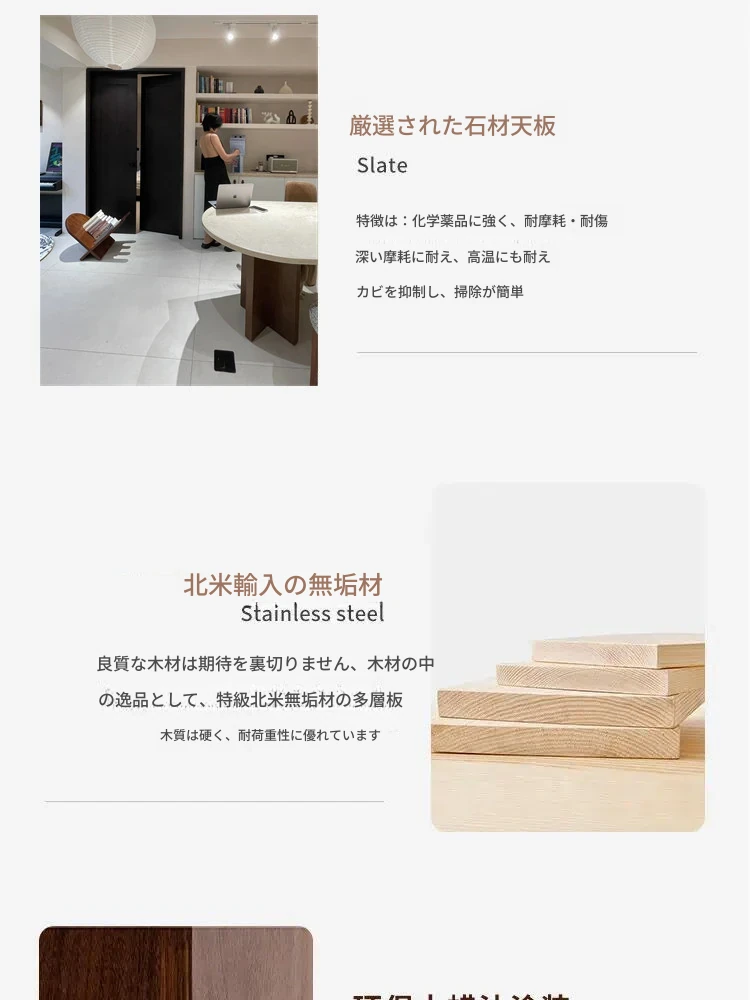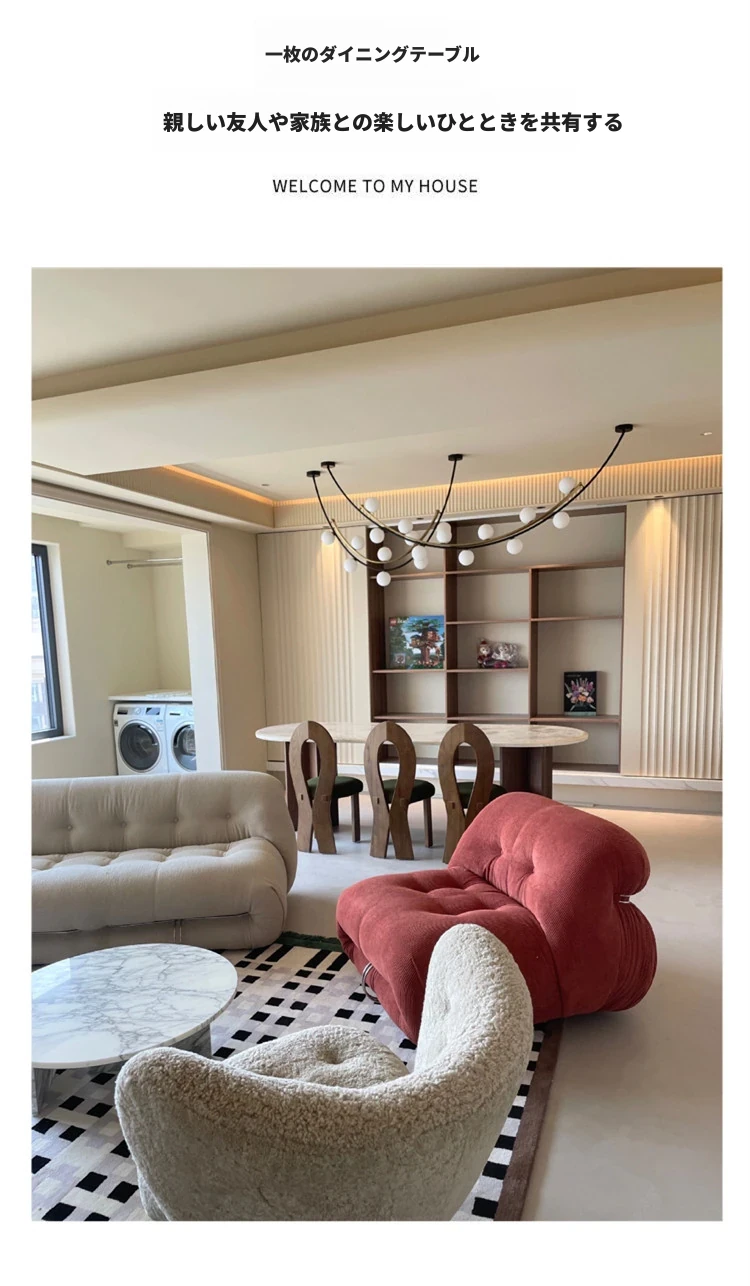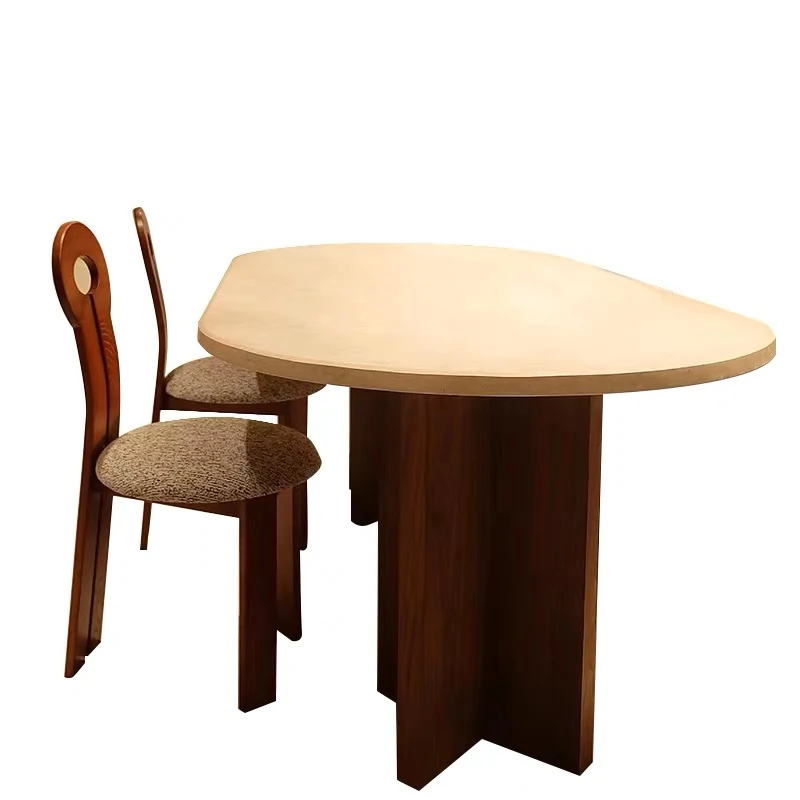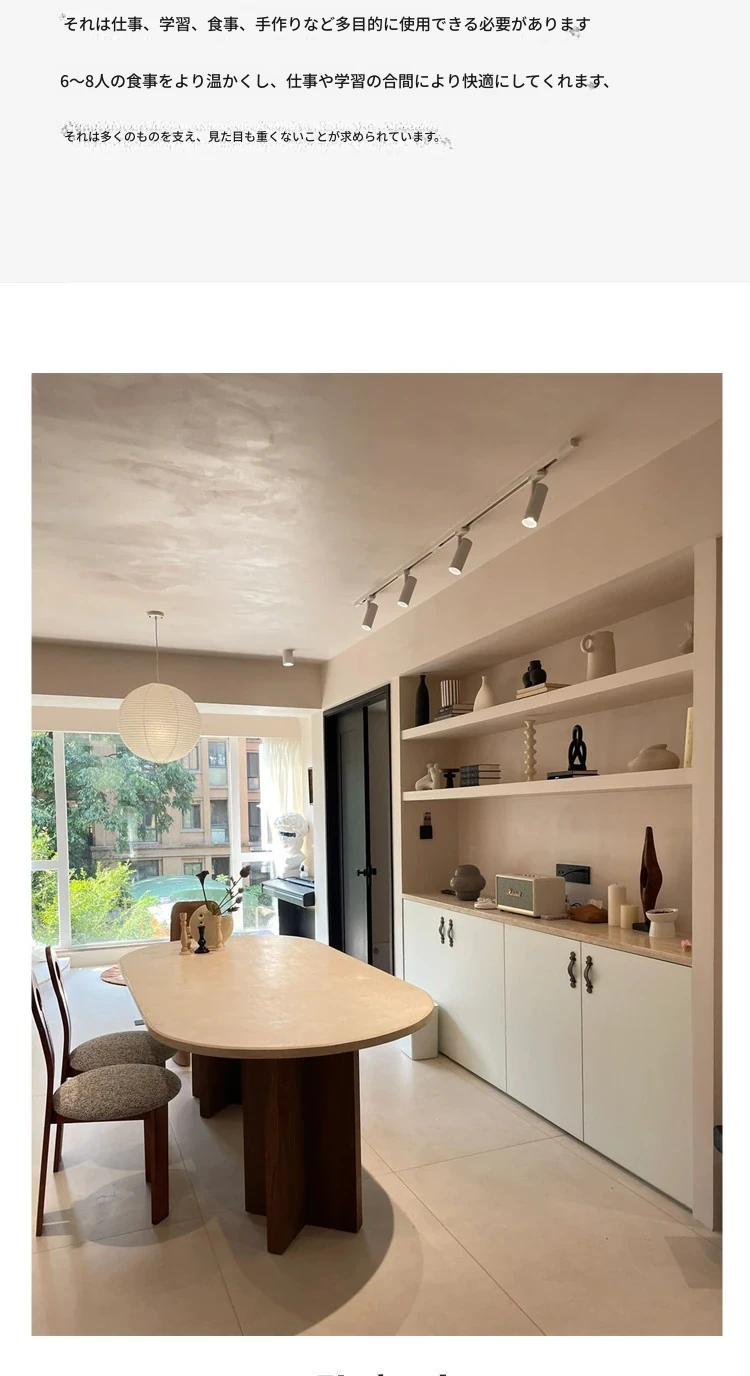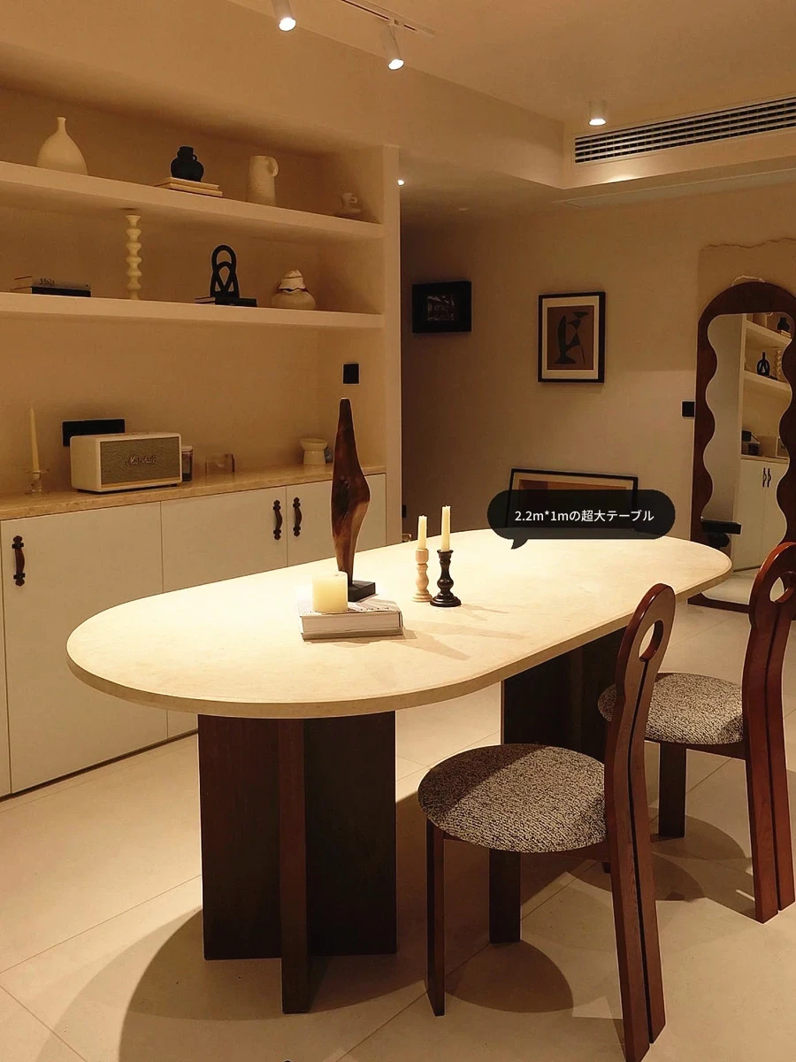 洞石大理石と本格的な木材を使用した日本式のダイニングテーブル。全てが無垢材で作られた、アンティークな侘寂スタイルとフレンチクリーム風のデザインが魅力。おしゃれで心地よい食卓を演出します!