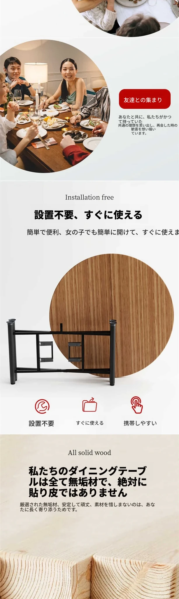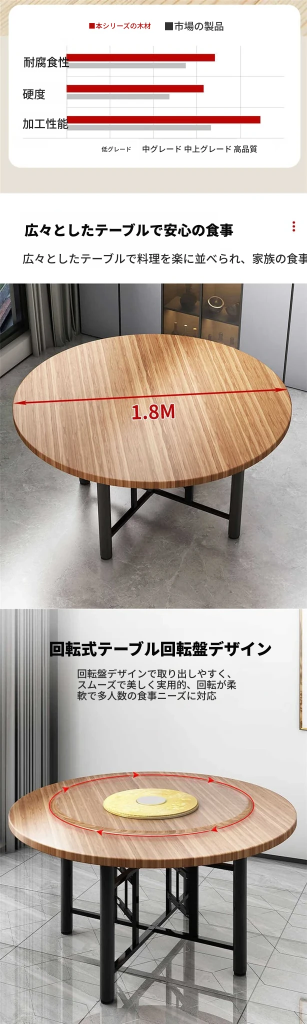 レティラン 厚手ラウンドテーブル 家庭用 小型スペースに最適な天然木製ダイニングテーブル レストラン・ホテル向け 大きな円形テーブル 食事を楽しむための理想的な選択!