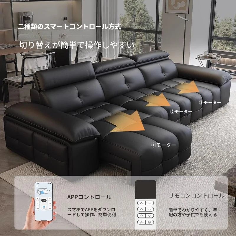 ローレンス ブラック イタリアンレザー ソファベッド ピアノキー 新作 リビングルーム 軽やかで贅沢な現代的シンプルデザイン 小型住宅に最適