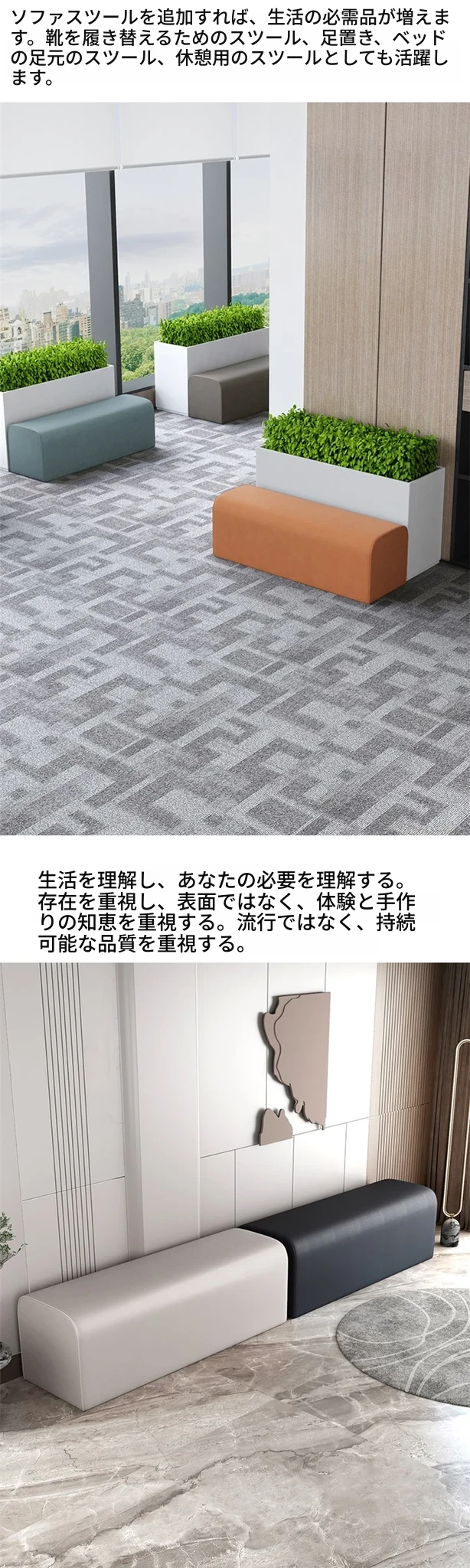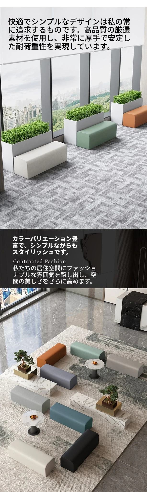 ダンススタジオ用ロングベンチ|休憩エリアに最適なソファ|企業のロビーや受付にぴったりなカウンターベンチ|ファッションストアにもおすすめ!快適な座り心地で、お客様をお迎えします。