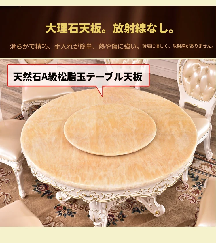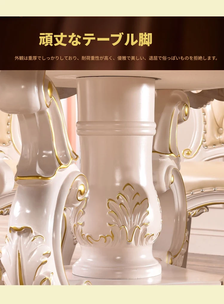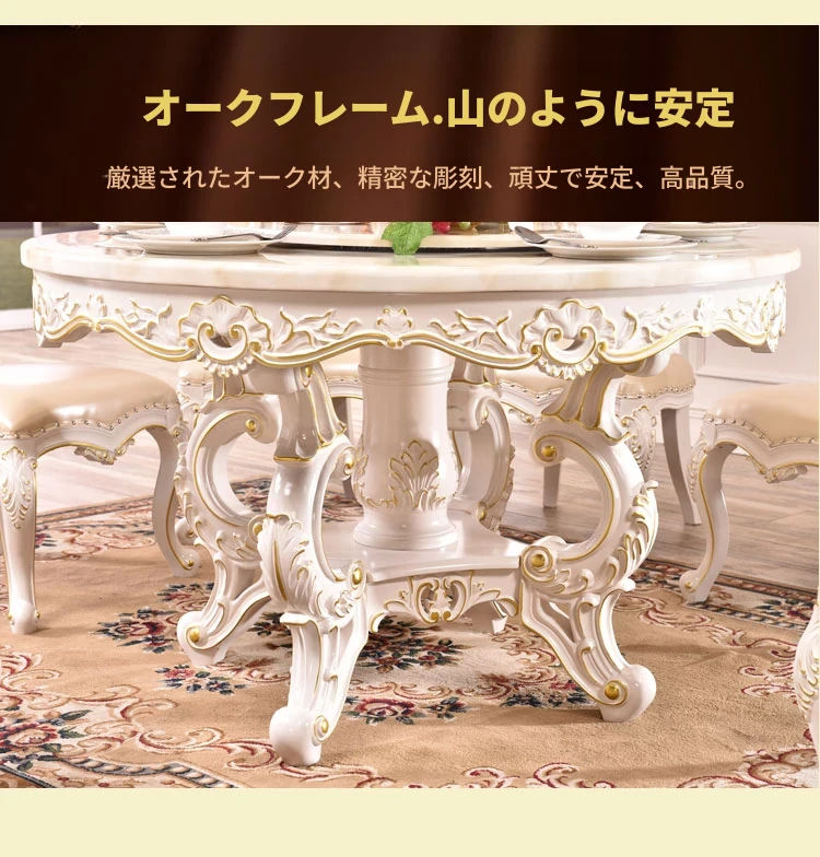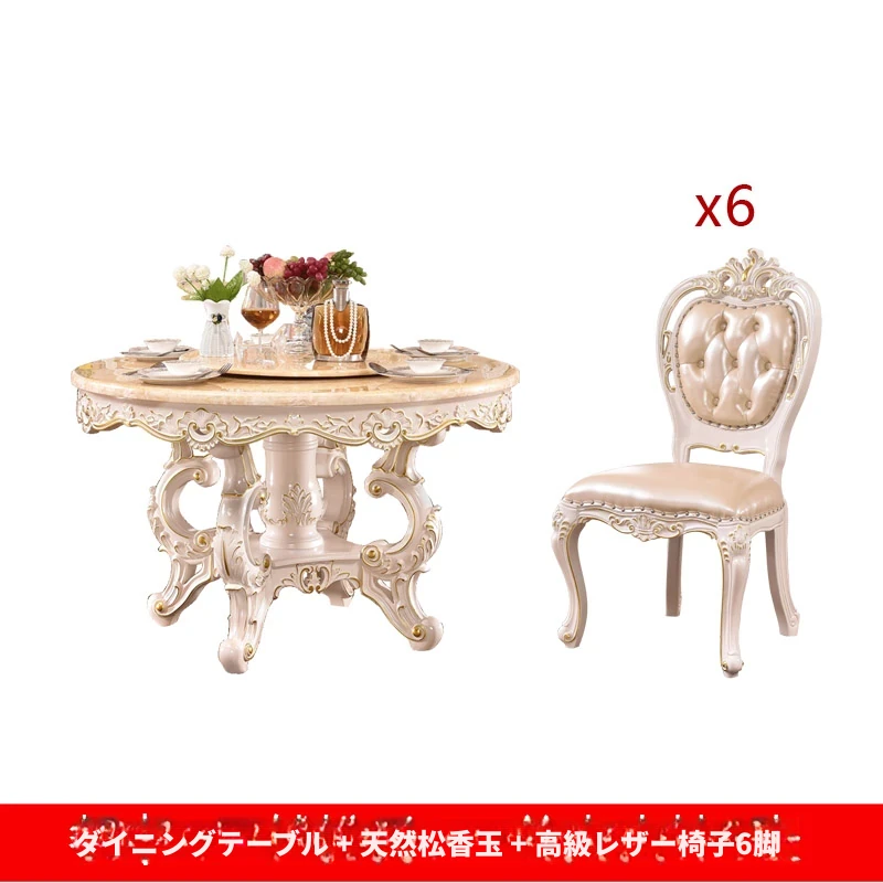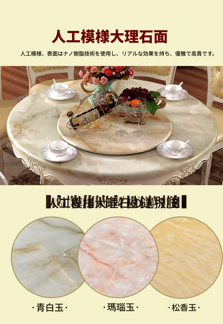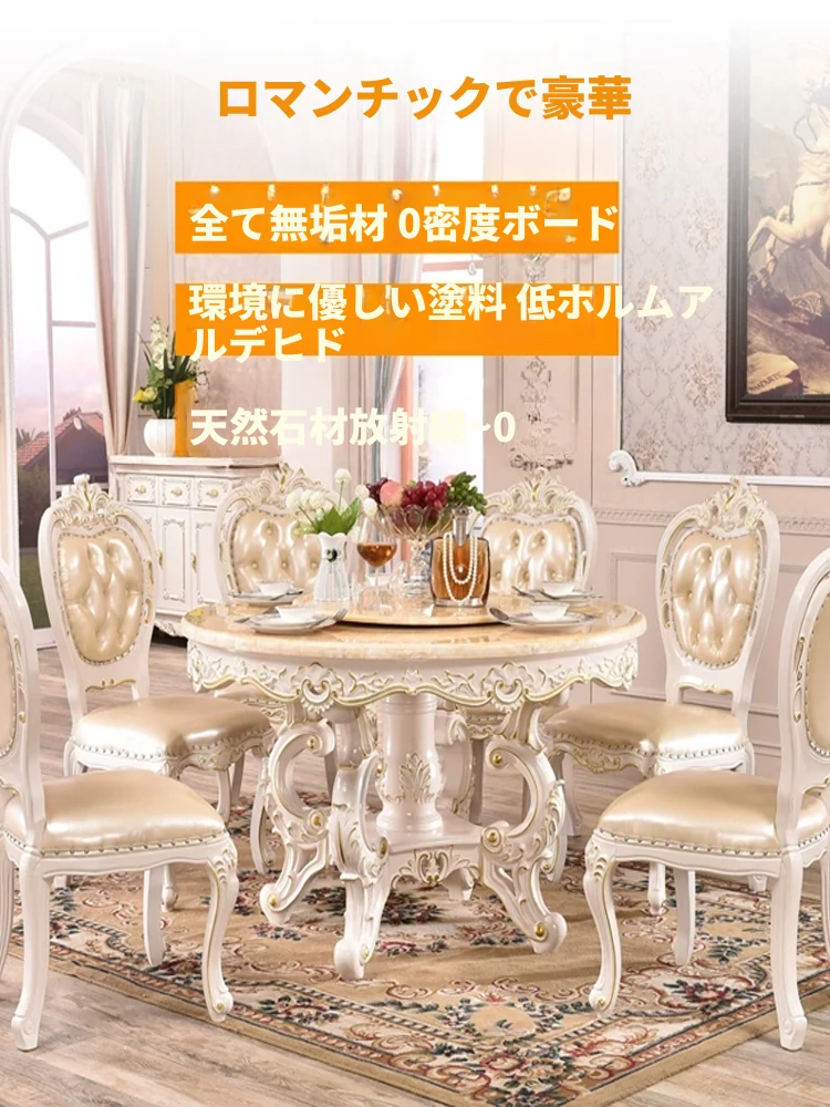豪華な欧風大理石円形ダイニングテーブルセット!全実木製で耐久性抜群、回転式の便利さも魅力。最大6人対応で、家族や友人との特別な食事にぴったり。おしゃれな空間を演出し、毎日の食卓を華やかに!