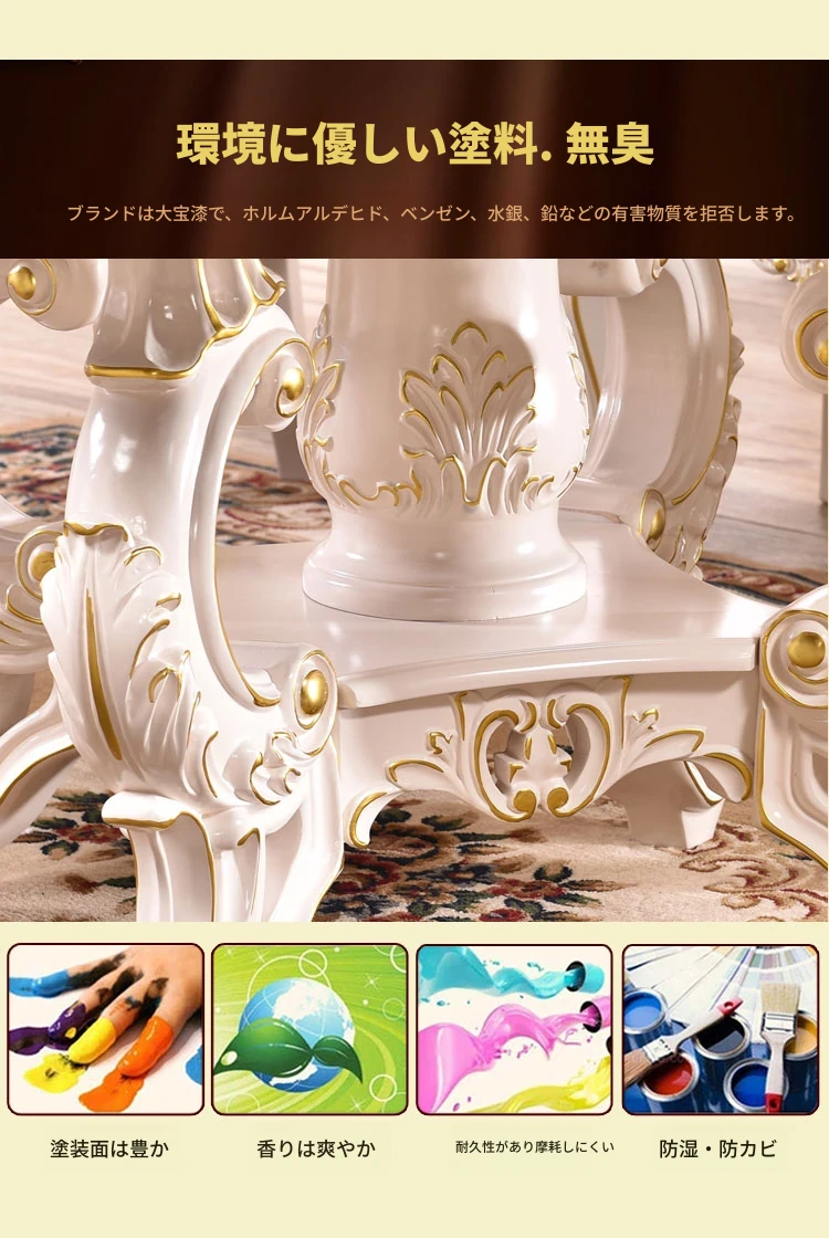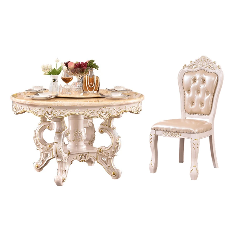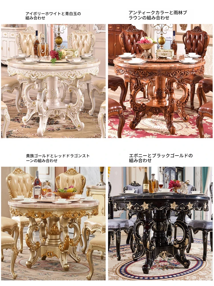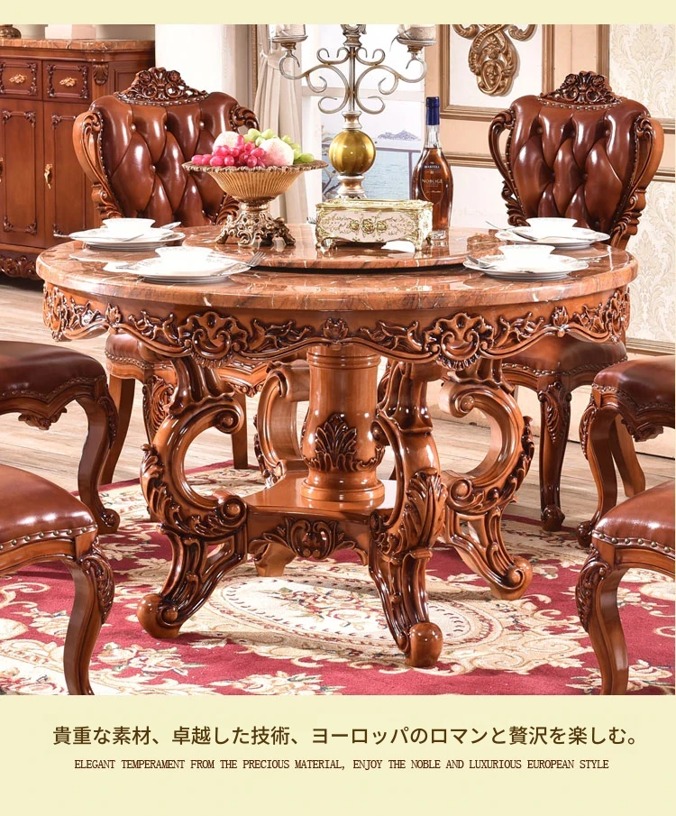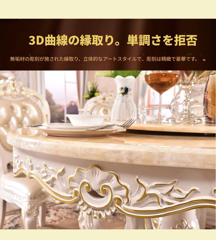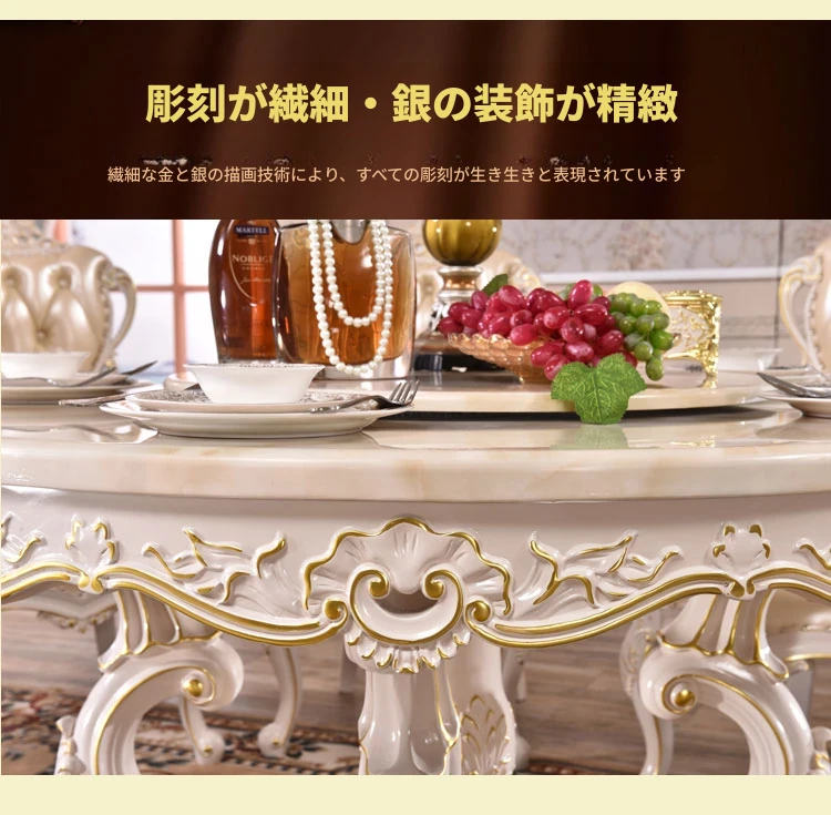 豪華な欧風大理石円形ダイニングテーブルセット!全実木製で耐久性抜群、回転式の便利さも魅力。最大6人対応で、家族や友人との特別な食事にぴったり。おしゃれな空間を演出し、毎日の食卓を華やかに!