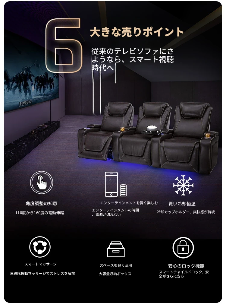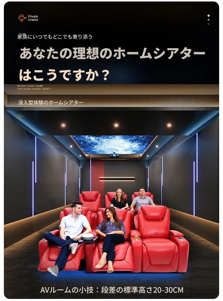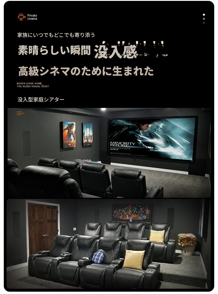 高級デザインのホームシアターソファー - 宇宙機能付きプライベートヴィラ用AVルームに最適なスマート電動シアター椅子!贅沢な空間で映画体験を最大限に楽しむ!