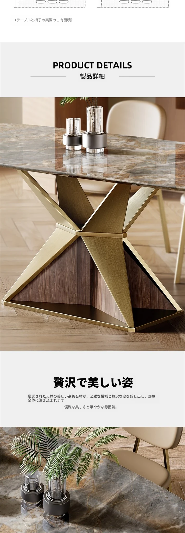 天然大理石のモダンシンプルな高級感あふれる長方形ダイニングテーブル - ヴィラにぴったりのラグジュアリーな食卓で、特別なひとときを演出します。