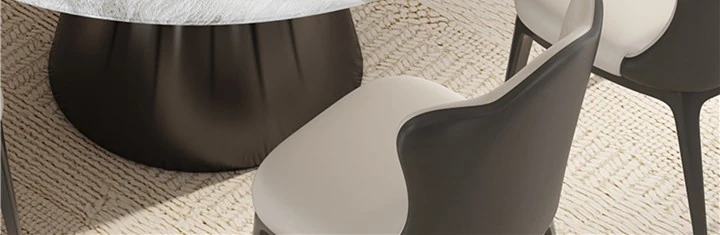 【ガンメタルグレーのステンレス】天然微結晶石のダイニングテーブル+猫の爪を引っかける皮製ダイニングチェア*6