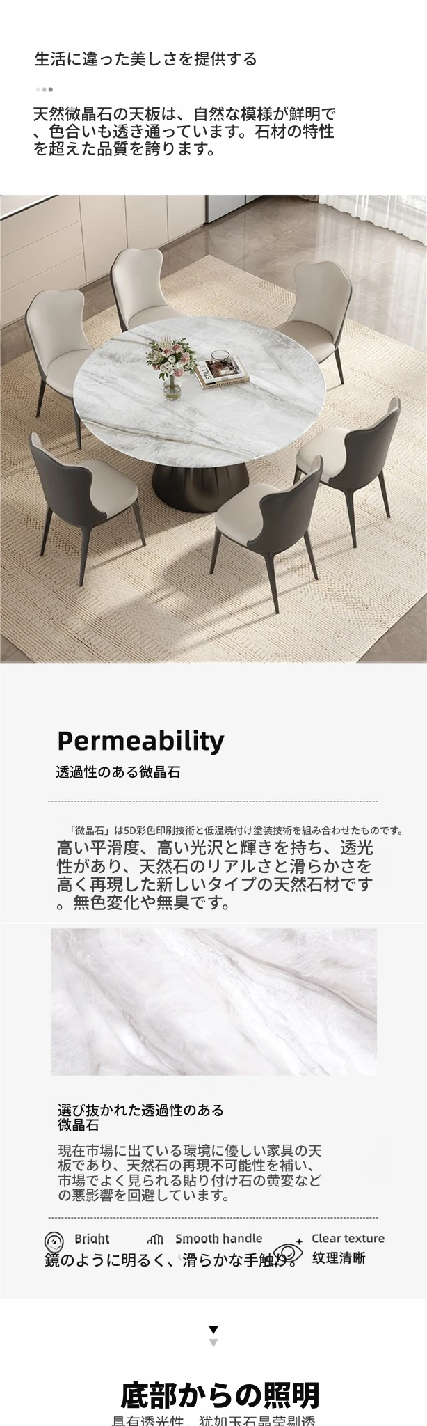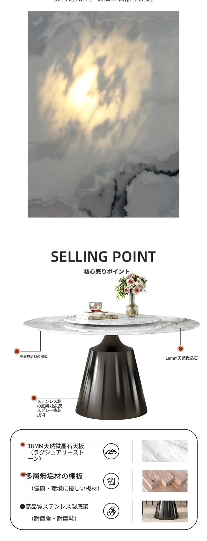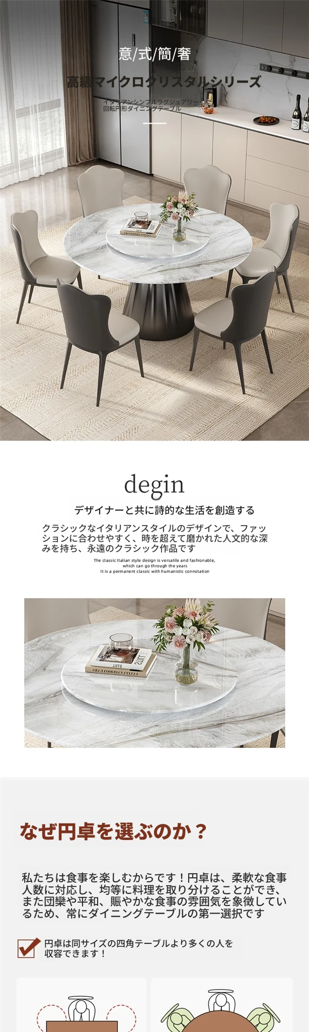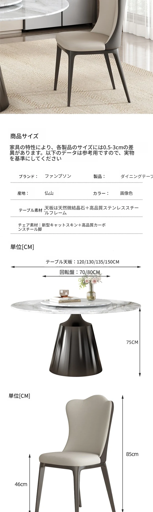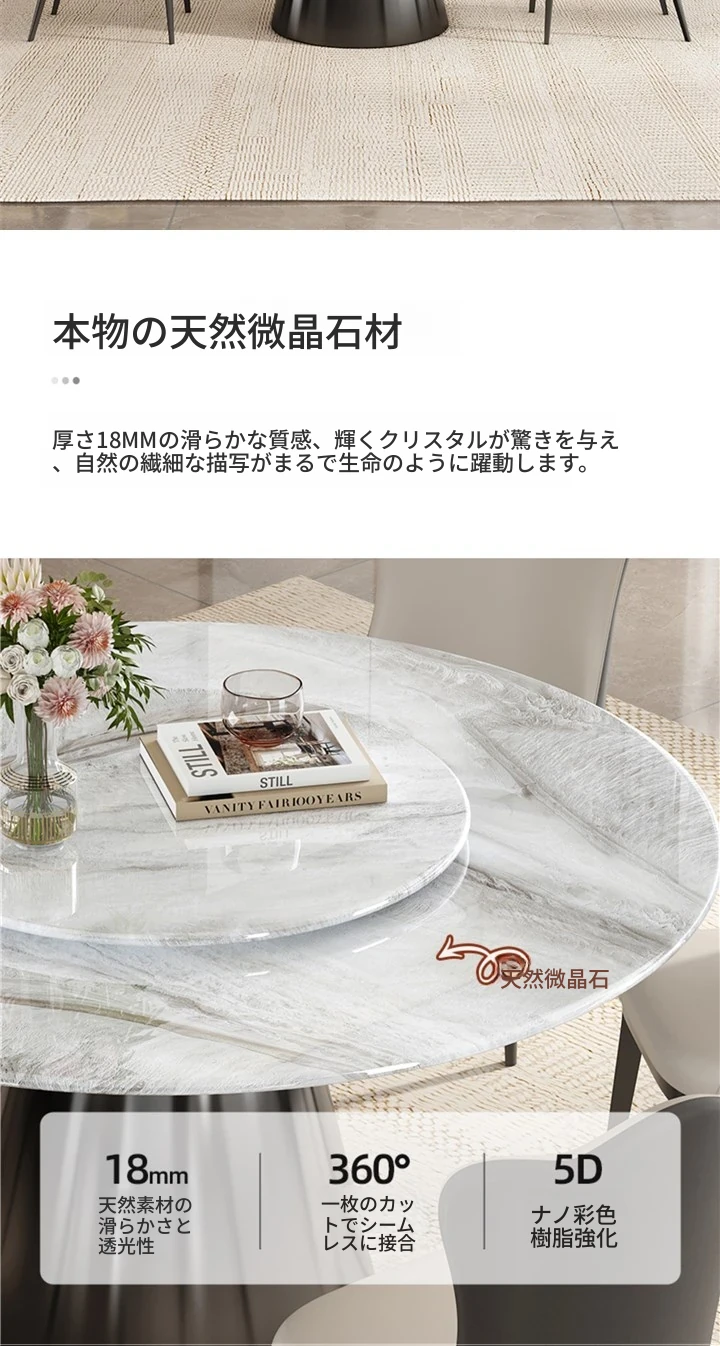 高級感あふれる天然微晶石製のラウンドダイニングテーブルセット - 優雅なイタリアンデザイン、洗練された大理石仕上げで、家族や友人との特別な時間を演出します。