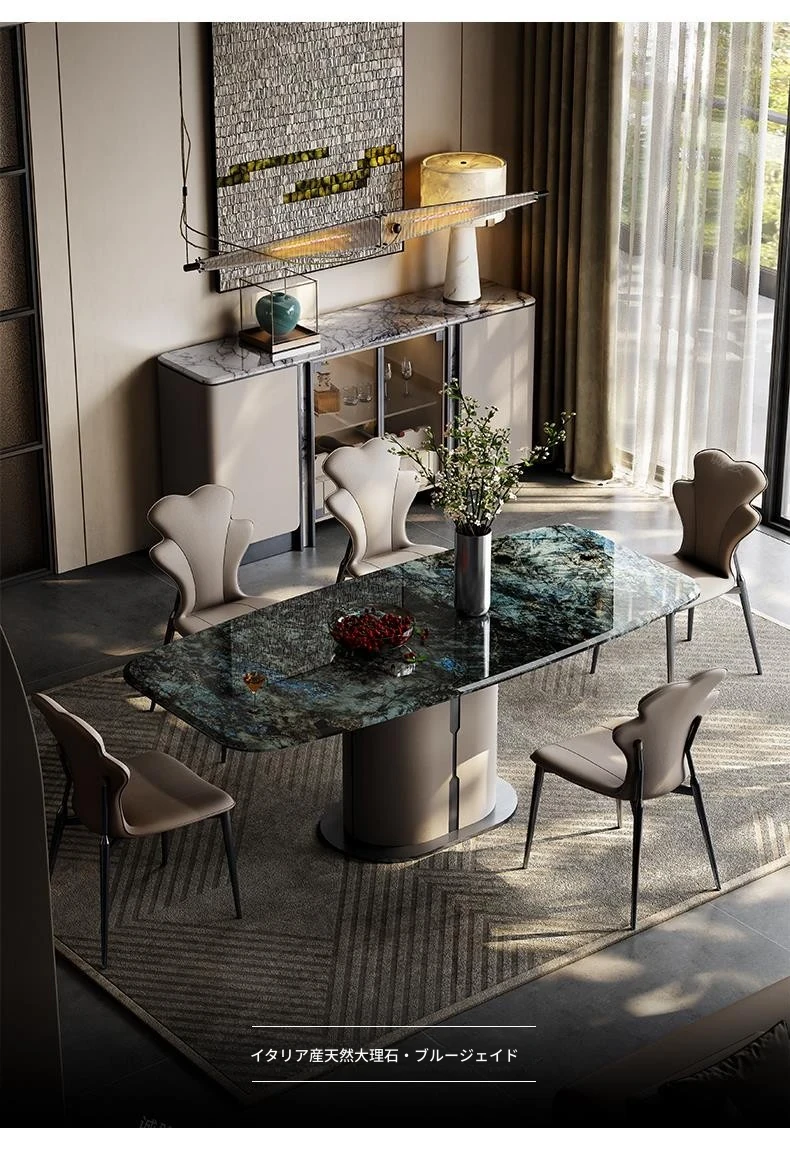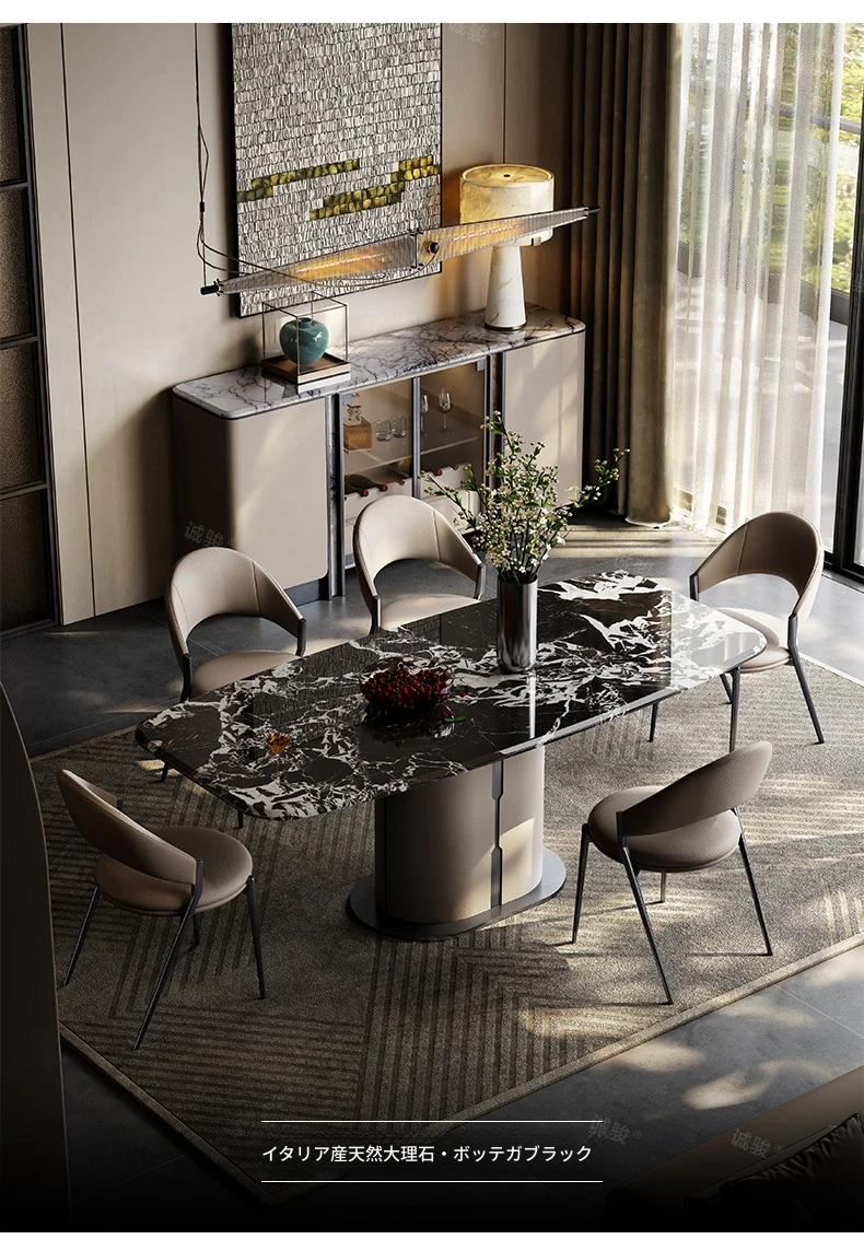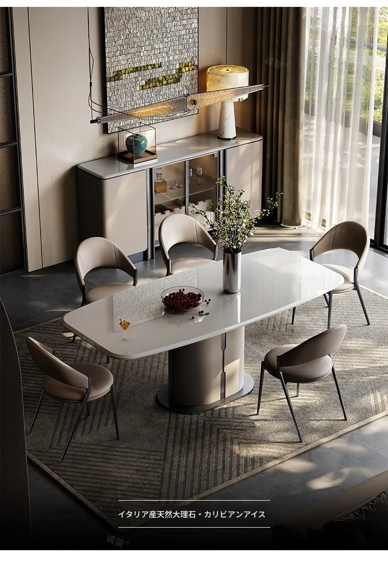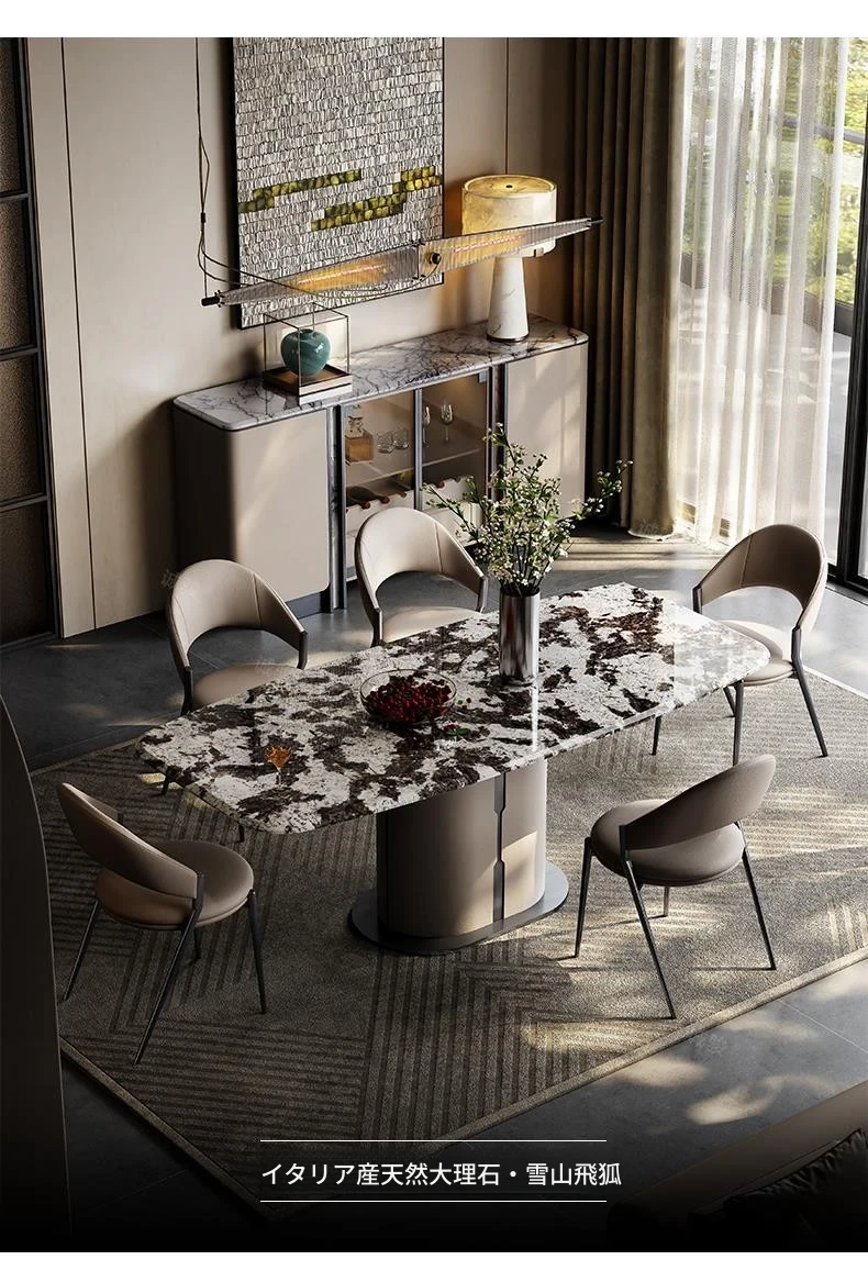 雪山飛狐 ラグジュアリー大理石ダイニングテーブルセット - 高級別荘向け、シンプルでエレガントなデザイン、快適な食事空間を演出。