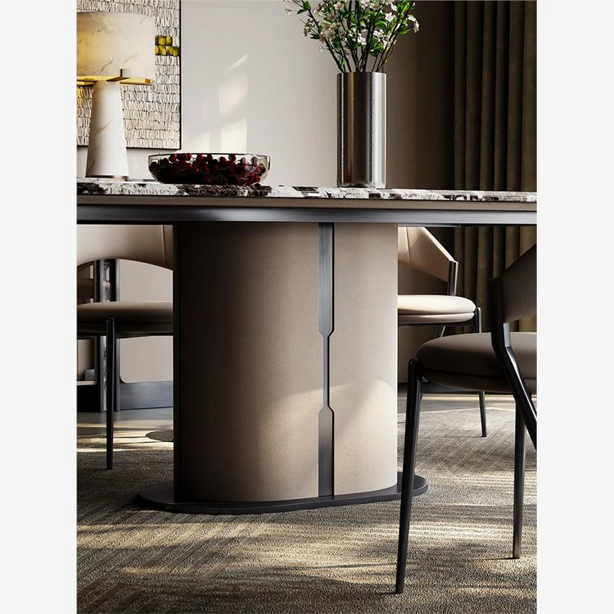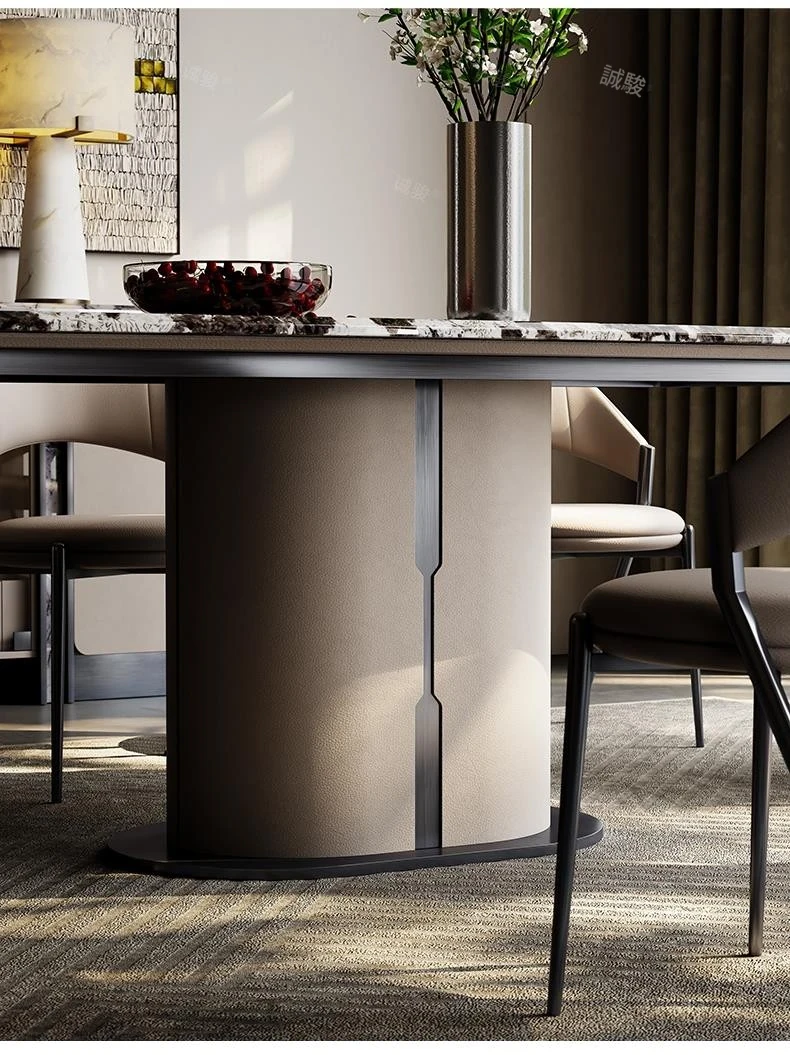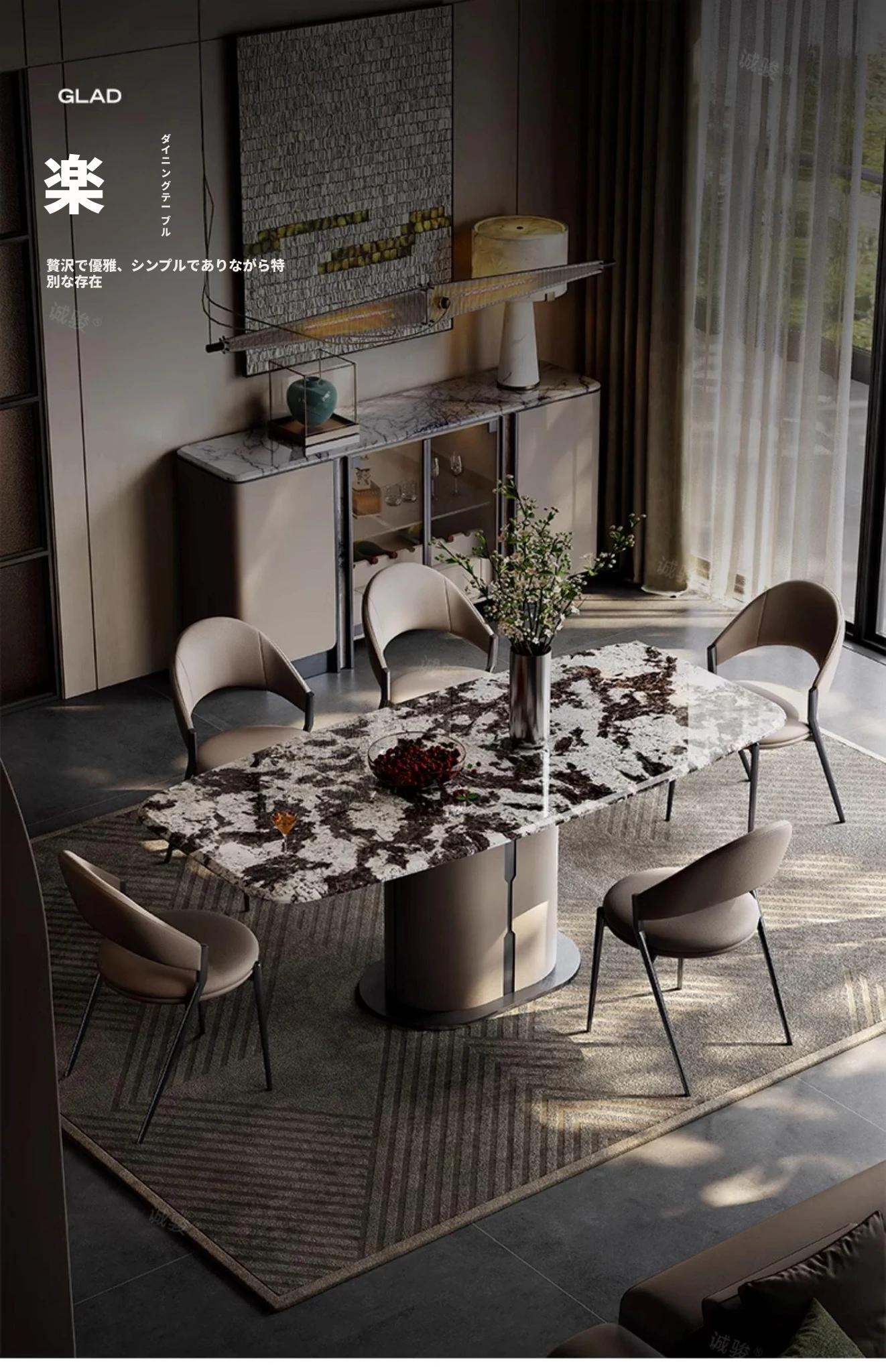 雪山飛狐 ラグジュアリー大理石ダイニングテーブルセット - 高級別荘向け、シンプルでエレガントなデザイン、快適な食事空間を演出。