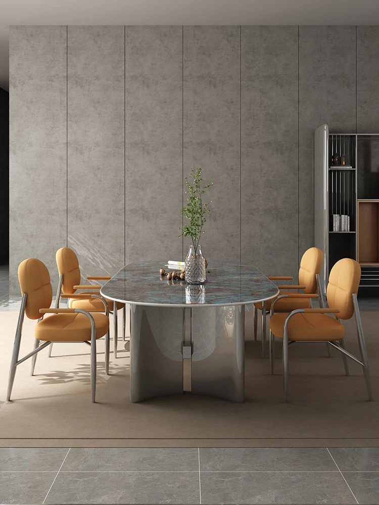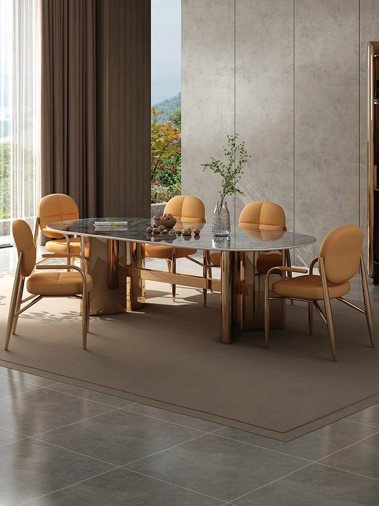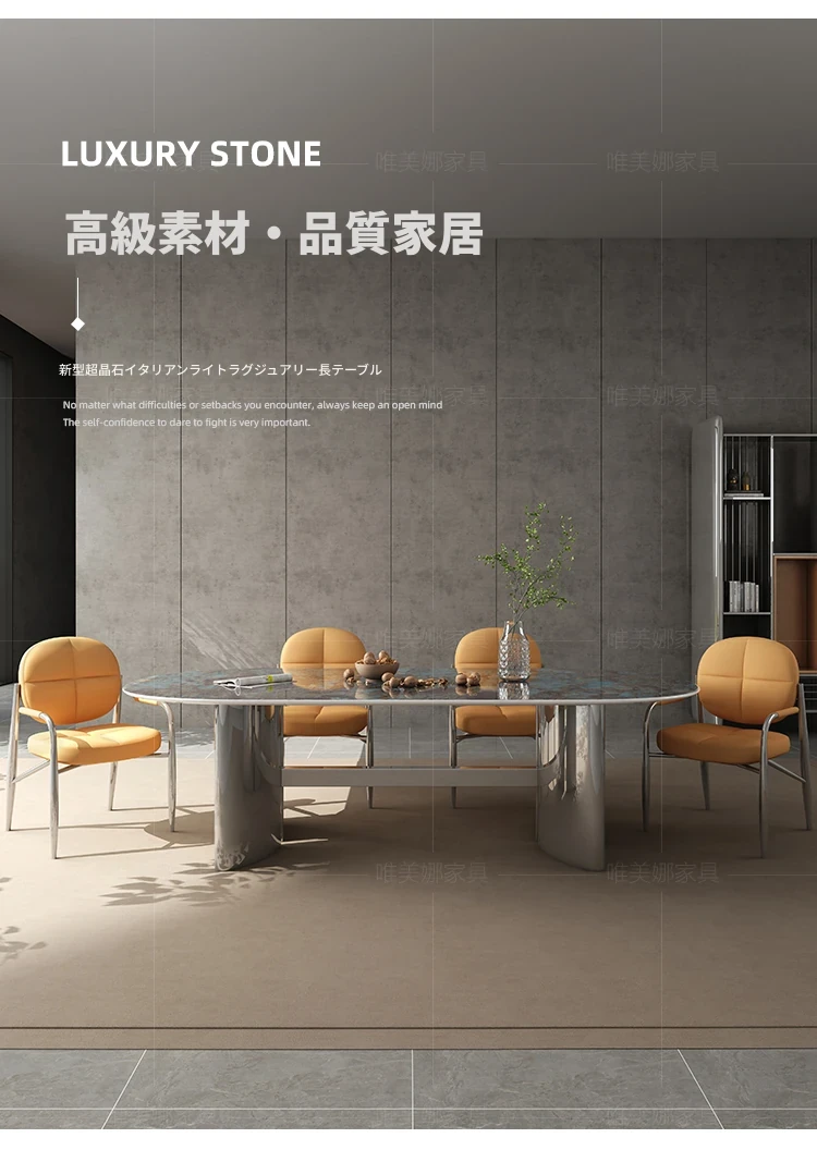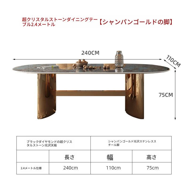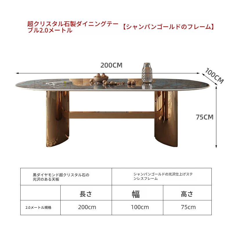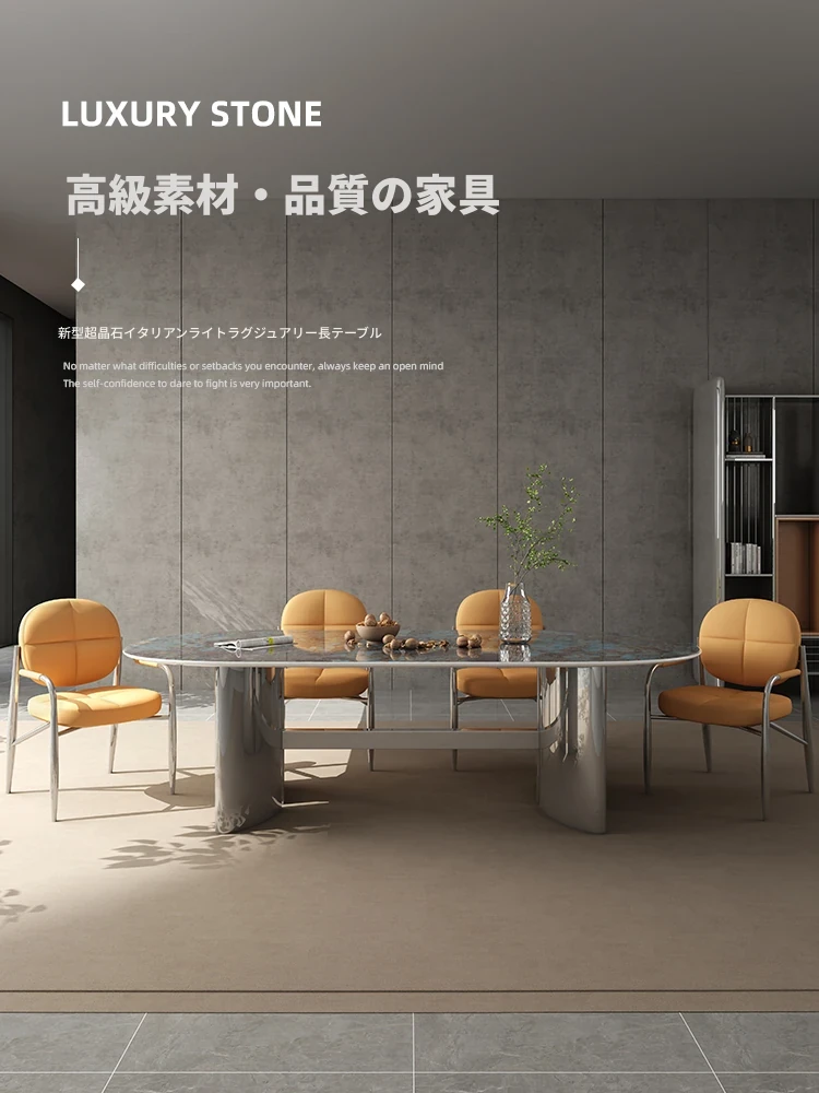 高級ヴィラ向け透光天然スーパークォーツ長テーブル - 小さなスペースにもぴったりなラグジュアリーでモダンなミニマリストデザインのダイニングテーブルとチェアセット!