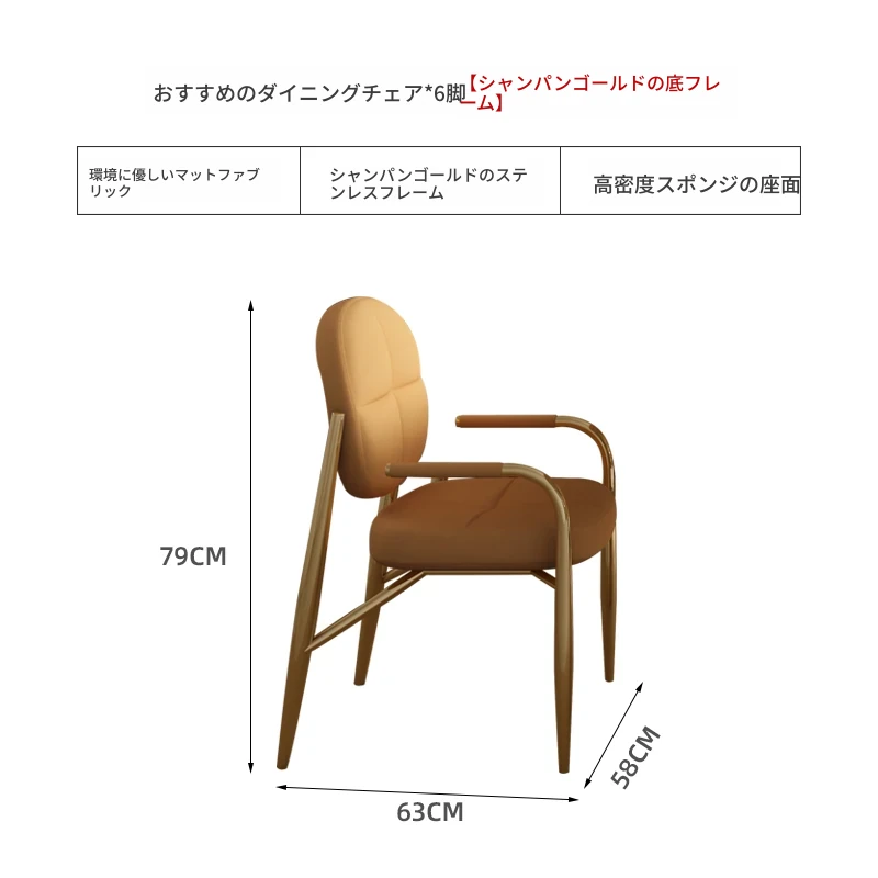 シャンパンゴールドのダイニングチェア【6脚】