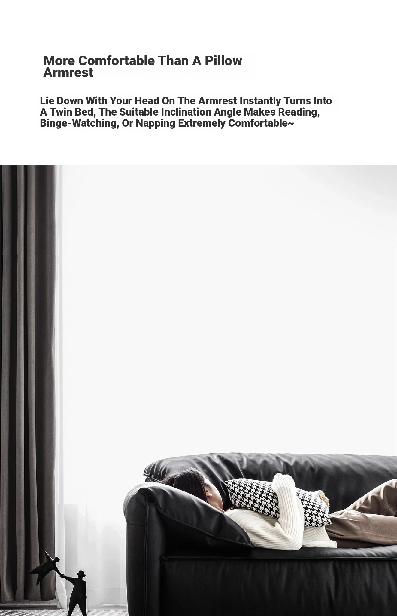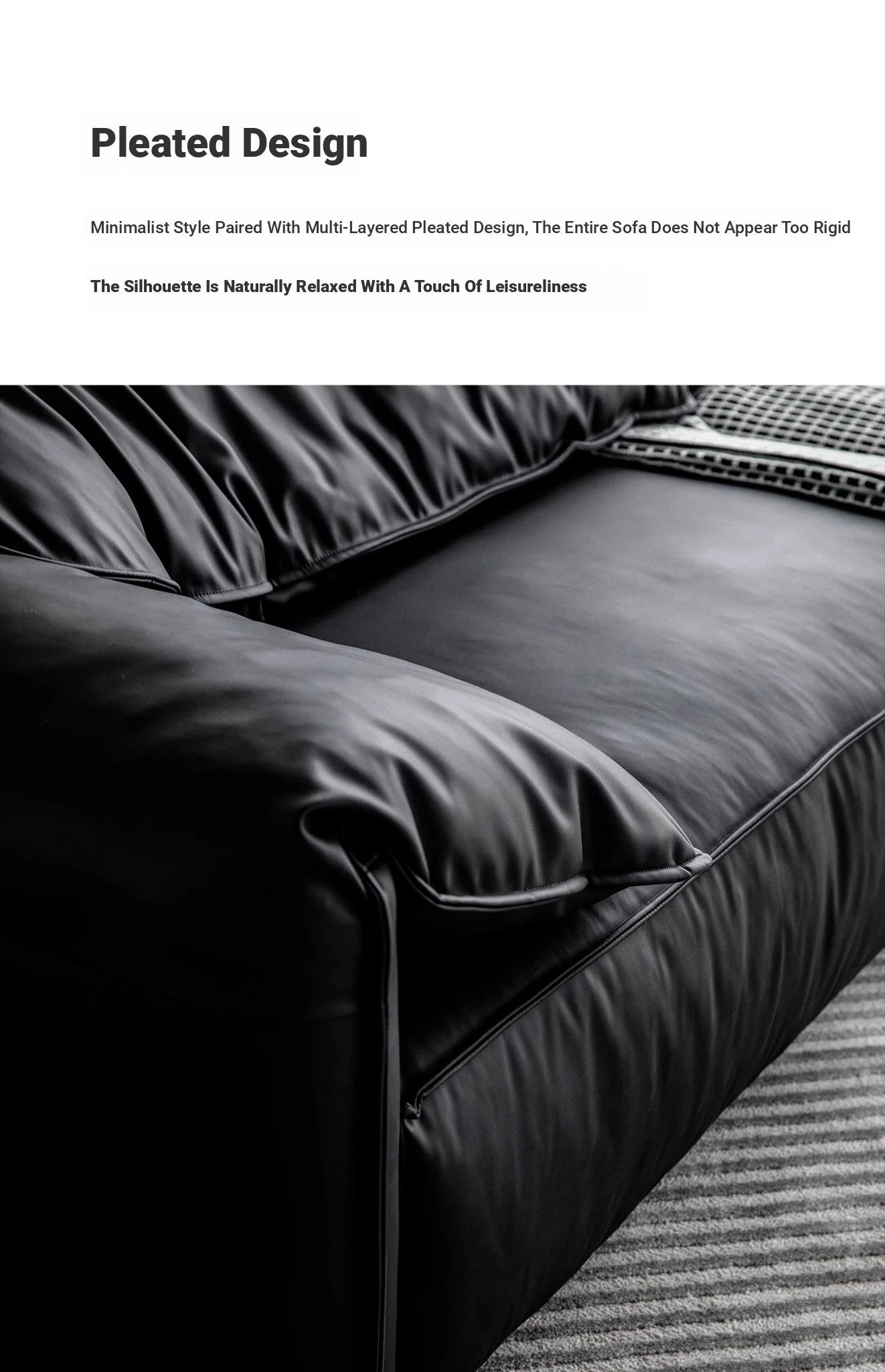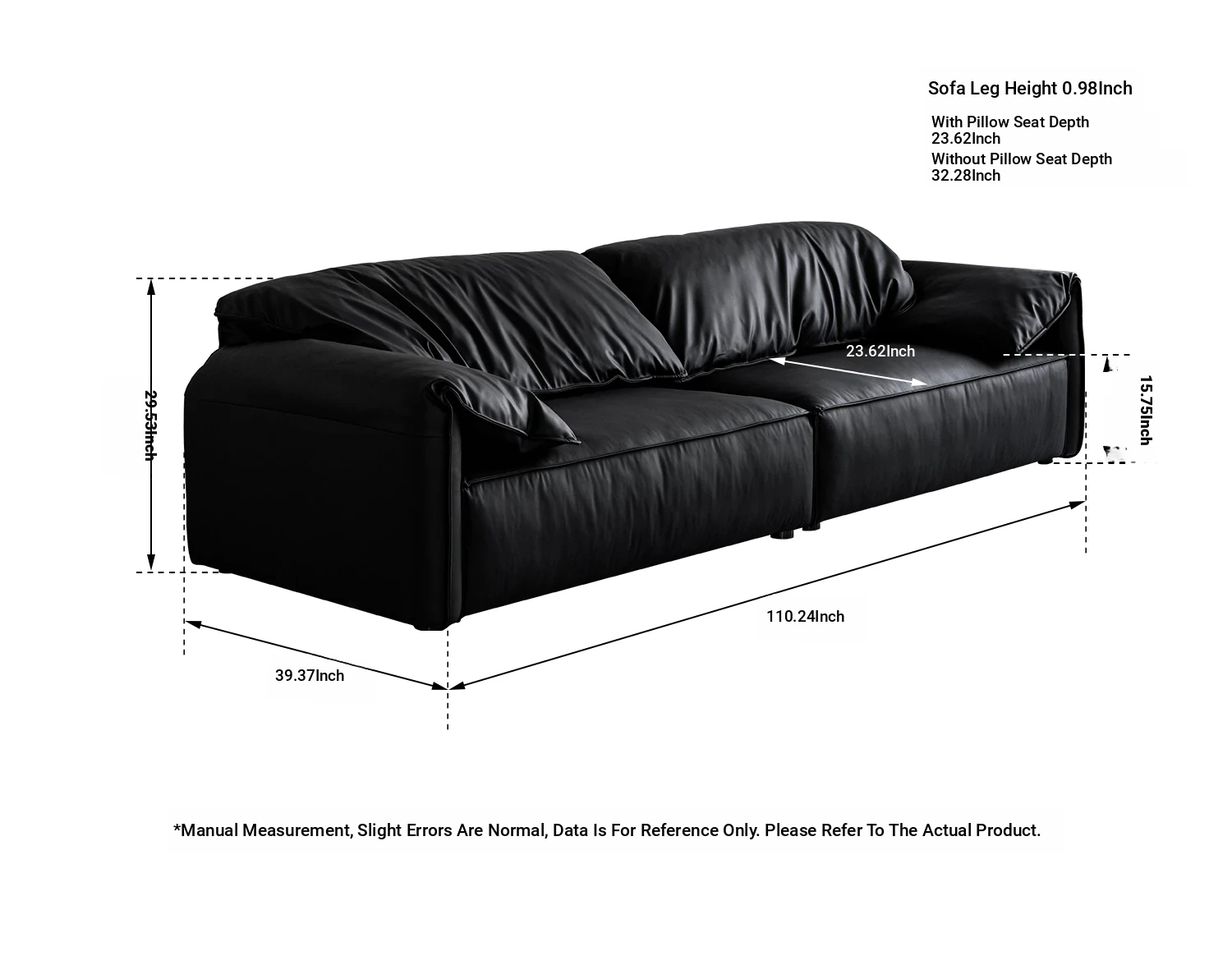 Meishe Vintage Baxter Elephant Ear Sofa - Foldable Armrest with Soft Backrest, Black Leather, Seats 3-4 People - Perfect Blend of Comfort and Style for Your Living Room