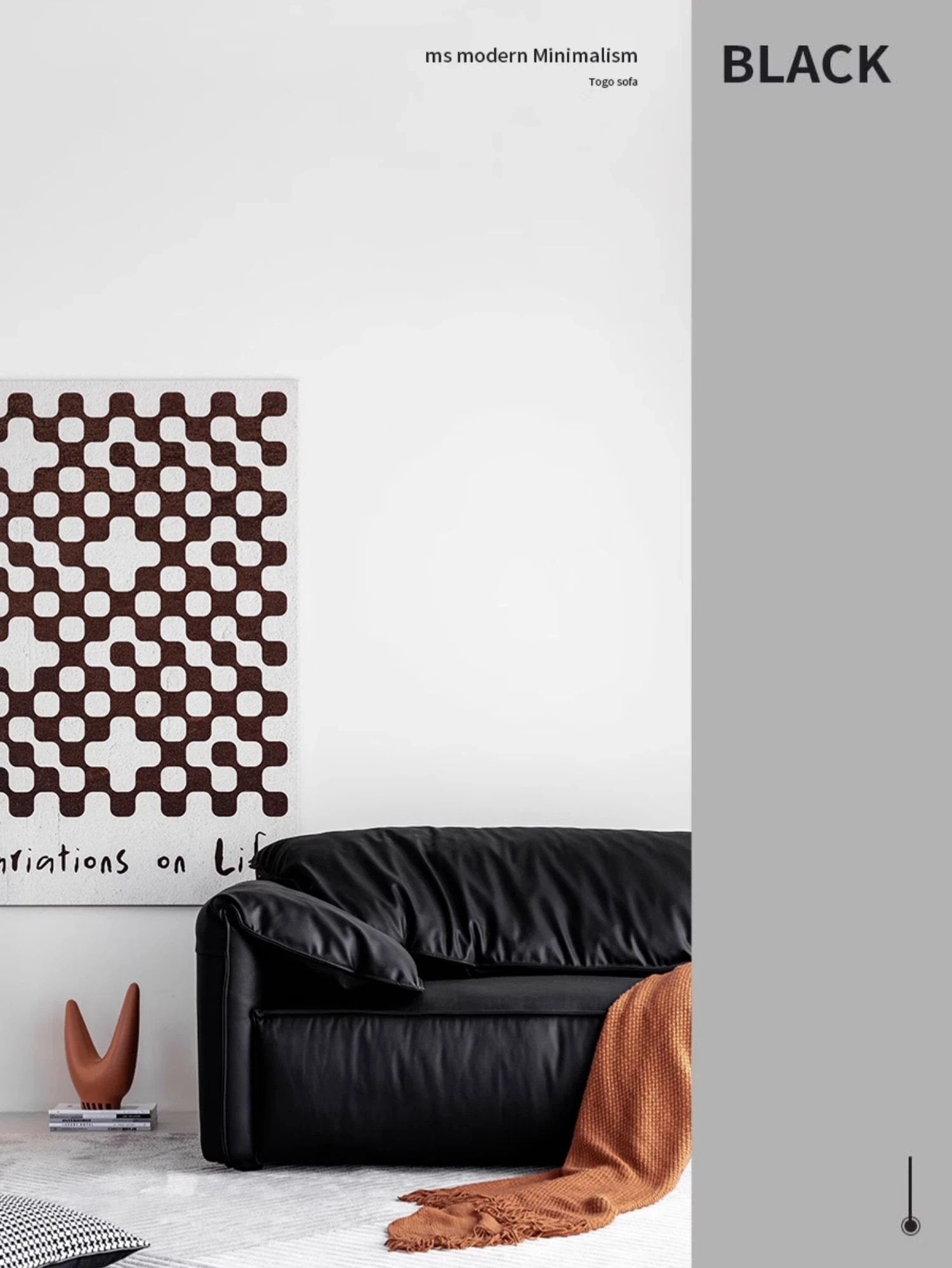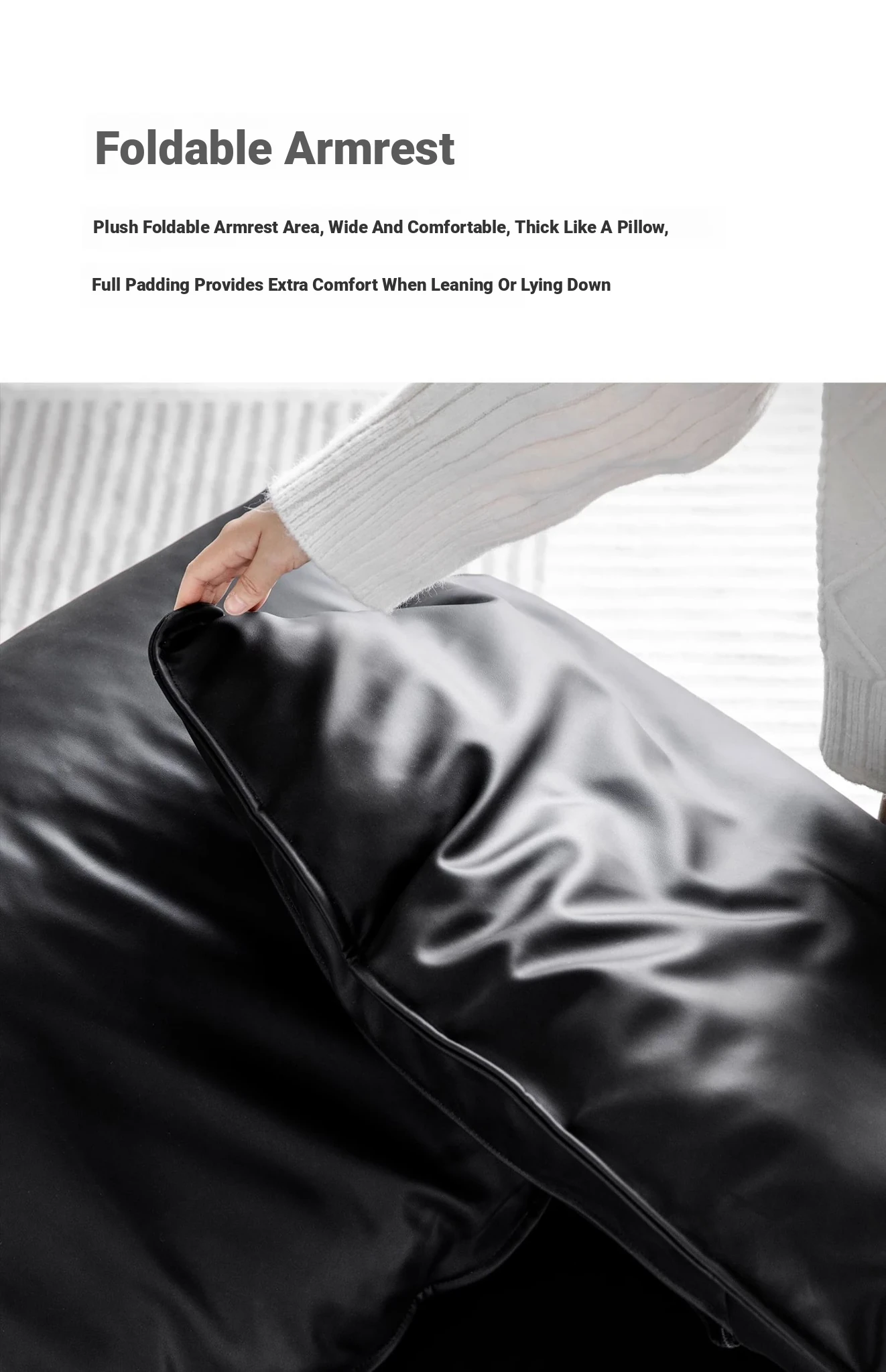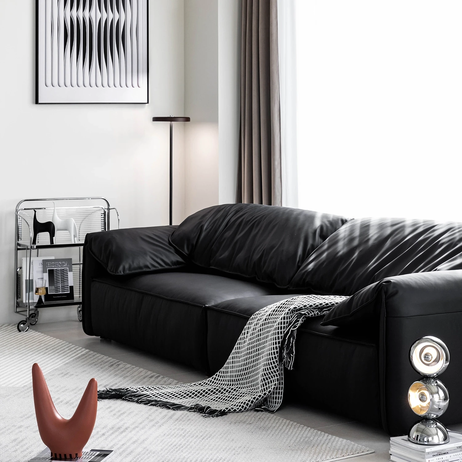 Meishe Vintage Baxter Elephant Ear Sofa - Foldable Armrest with Soft Backrest, Black Leather, Seats 3-4 People - Perfect Blend of Comfort and Style for Your Living Room