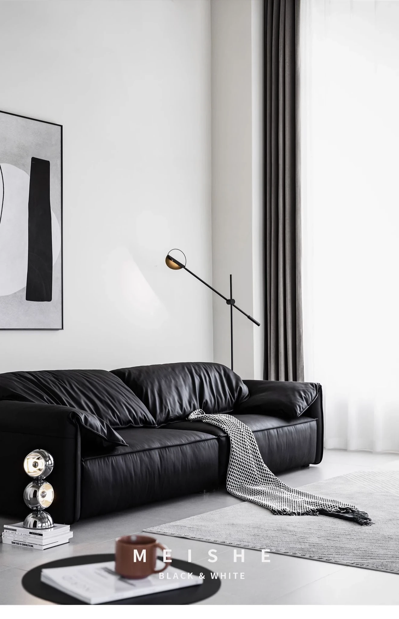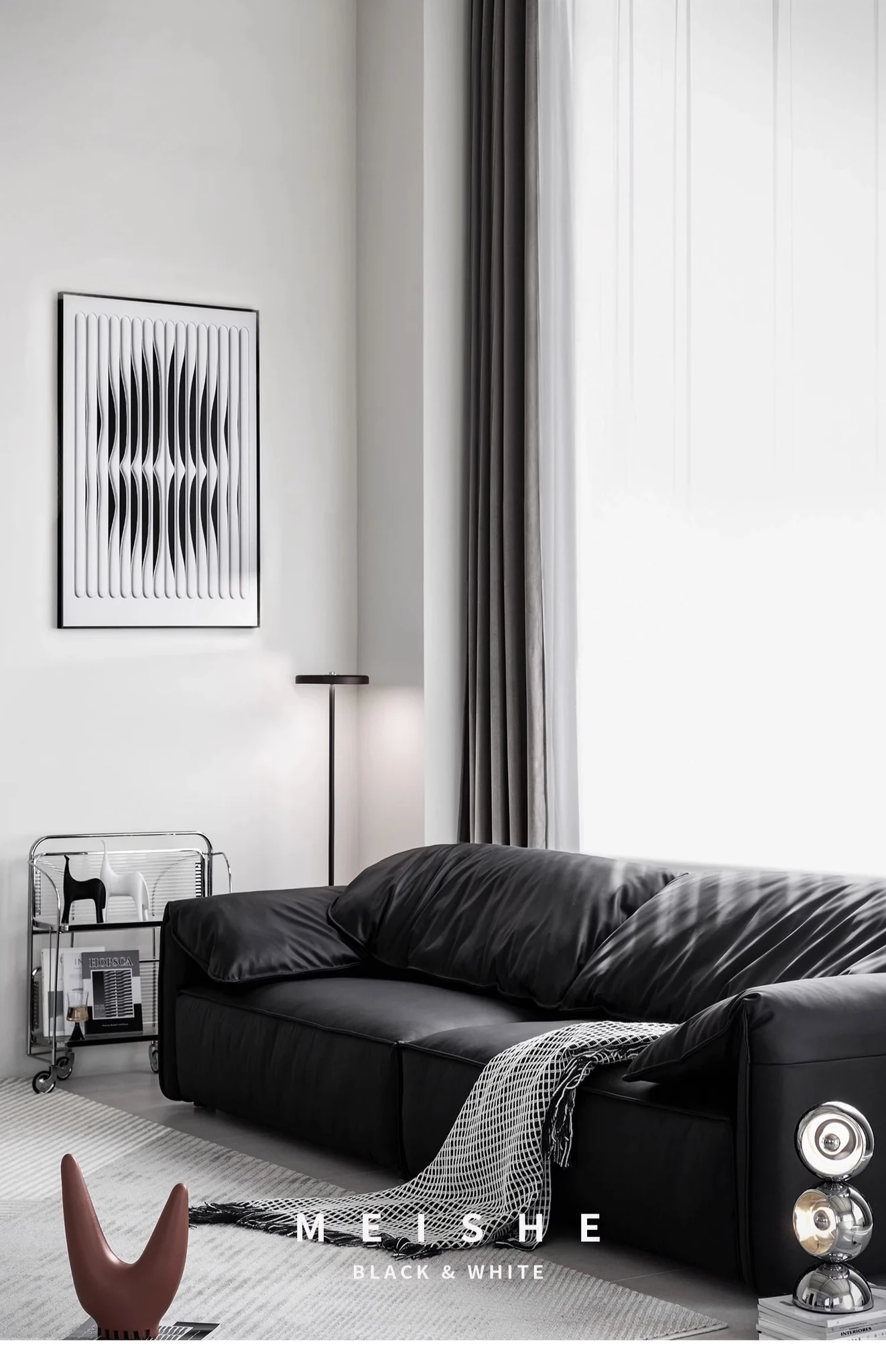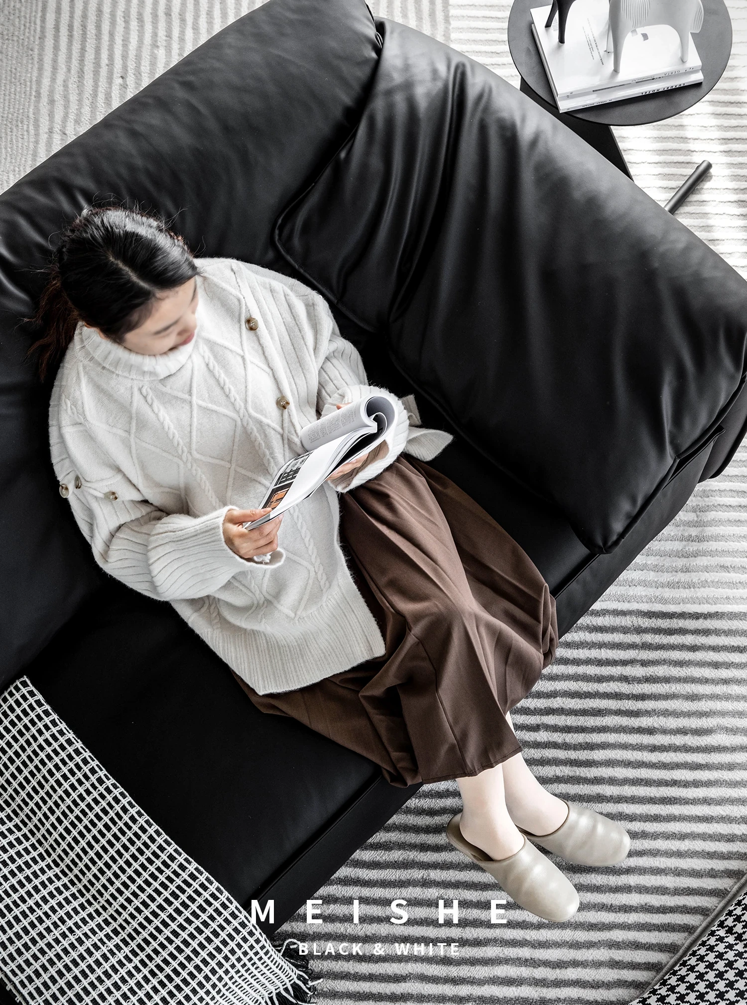 柔らかい提花アルパカファー-煙墨ブラック