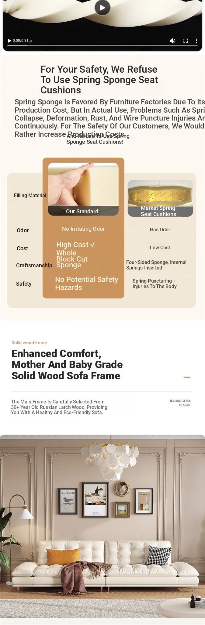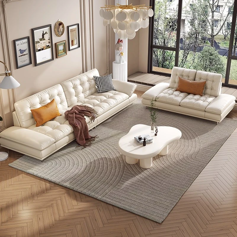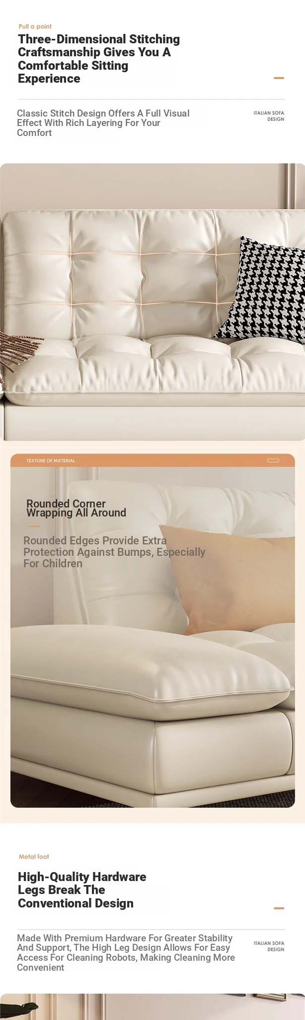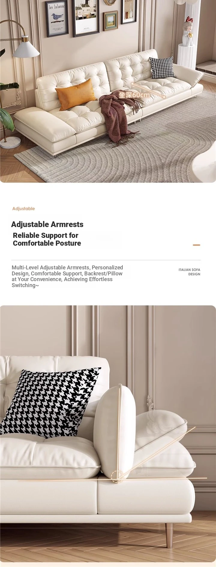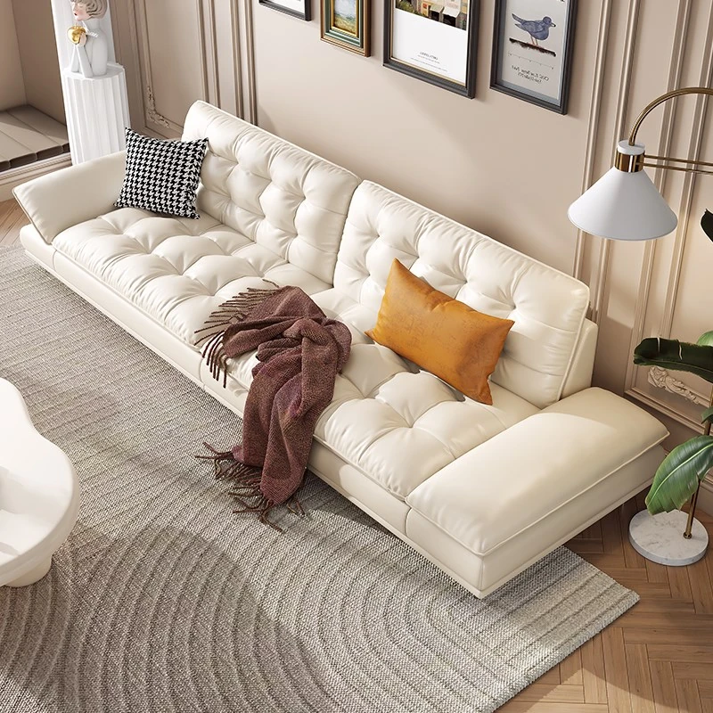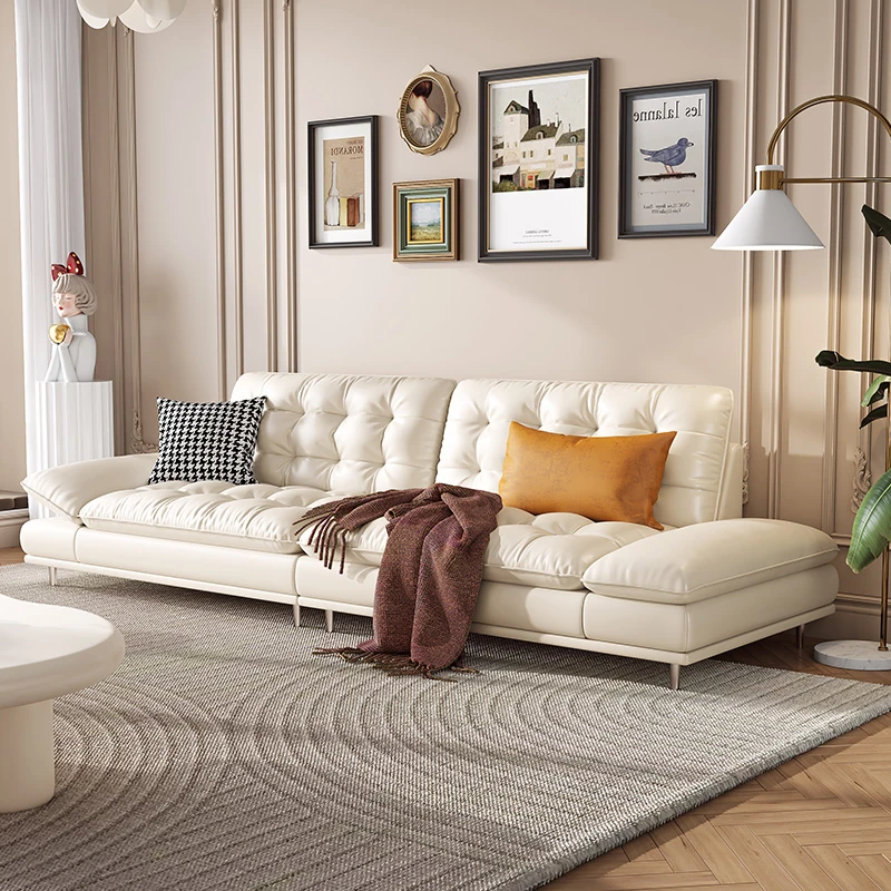 Minimalist Genuine Leather Cloud Sofa - Italian Style 3-Seat Modern Sofa for Small Spaces, Perfect for Living Room Décor